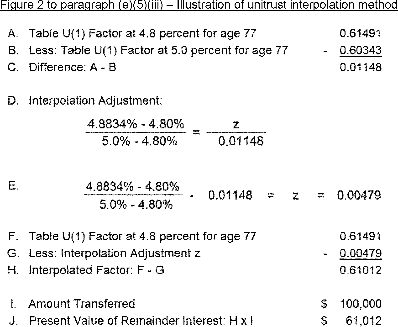 For certain cases, this part and IRS publications provide approximation methods (for example, interpolation) for obtaining factors when the required valuation rate falls between two listed rates (such as in the case of a pooled income fund's rate of return or a unitrust's adjusted payout rate). In general, exact methods of obtaining the applicable factors are allowed, such as through software using the actual rate of return and the proper actuarial formula, provided such direct methods are applied consistently. The actuarial formula in § 20.2031-7(d)(2)(ii)(B) of this chapter is used to determine the remainder factor for pooled income funds and the actuarial formula in § 1.664-4(e)(5)(i) of this chapter is used to determine the remainder factor for unitrusts. The approximation method provided in this part must be used if more exact methods are not available.