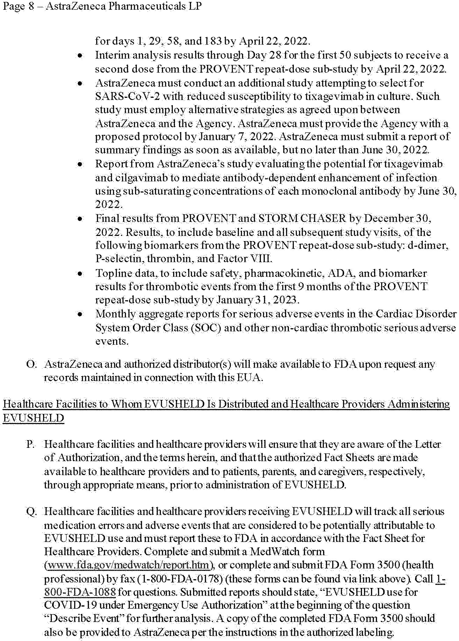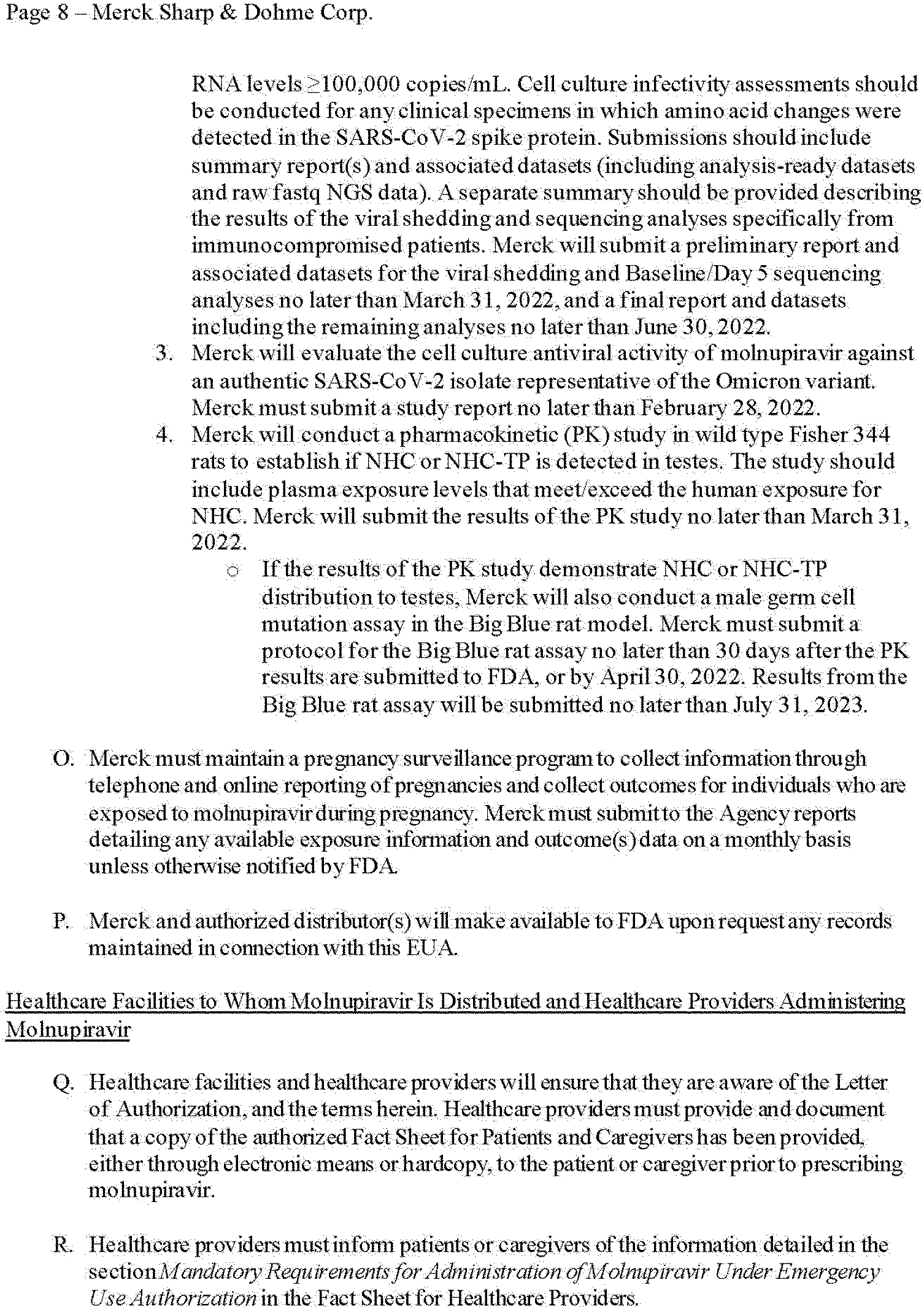 The Authorization for AZ is effective as of December 8, 2021, the Authorization for Pfizer is effective as of December 22, 2021, and the Authorization for Merck is effective as of December 23, 2021.