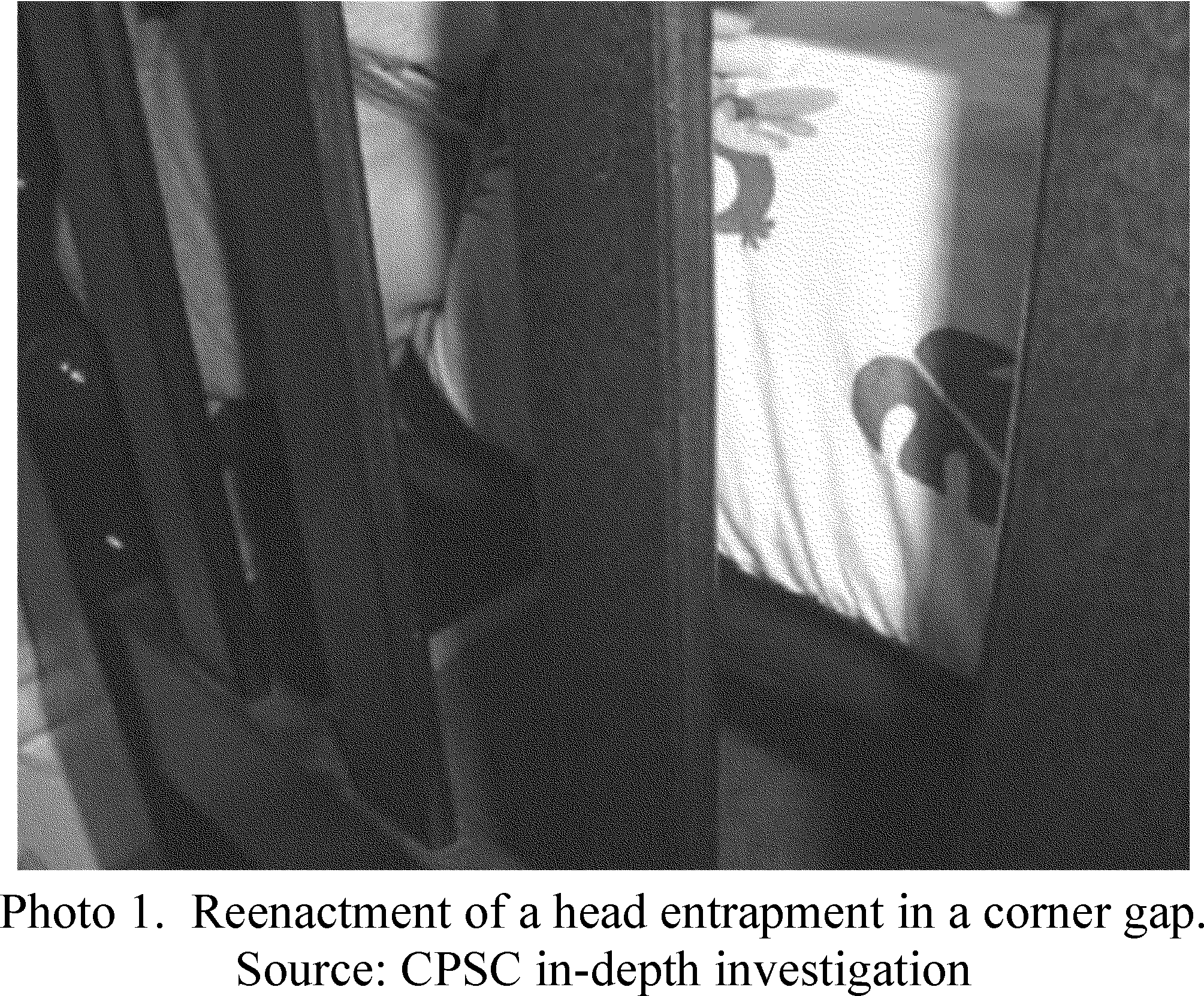 inches, which is more than twice as wide as the maximum allowable side gap between full-size cribs and full-size crib mattresses. ESHF staff selected head “breadth,” as opposed to length or height, to err on the side of caution, as head breadth is the smallest of these three head dimensions that could cause a fatal entrapment. Similarly, staff selected the 5th percentile measurement for 0-to-3-month-old infants to reduce the likelihood of death or serious injury to those most vulnerable to the identified hazards.