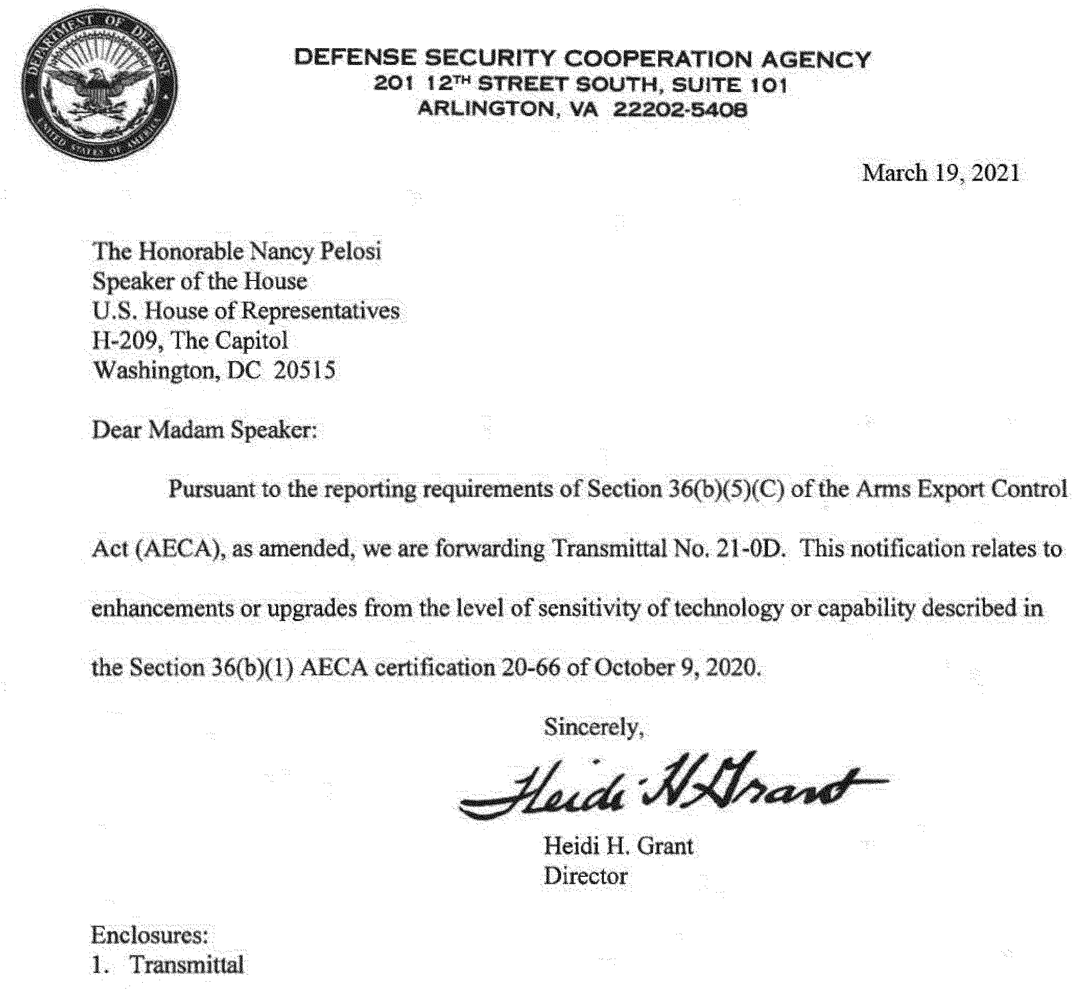 Transmittal No. 21-0D