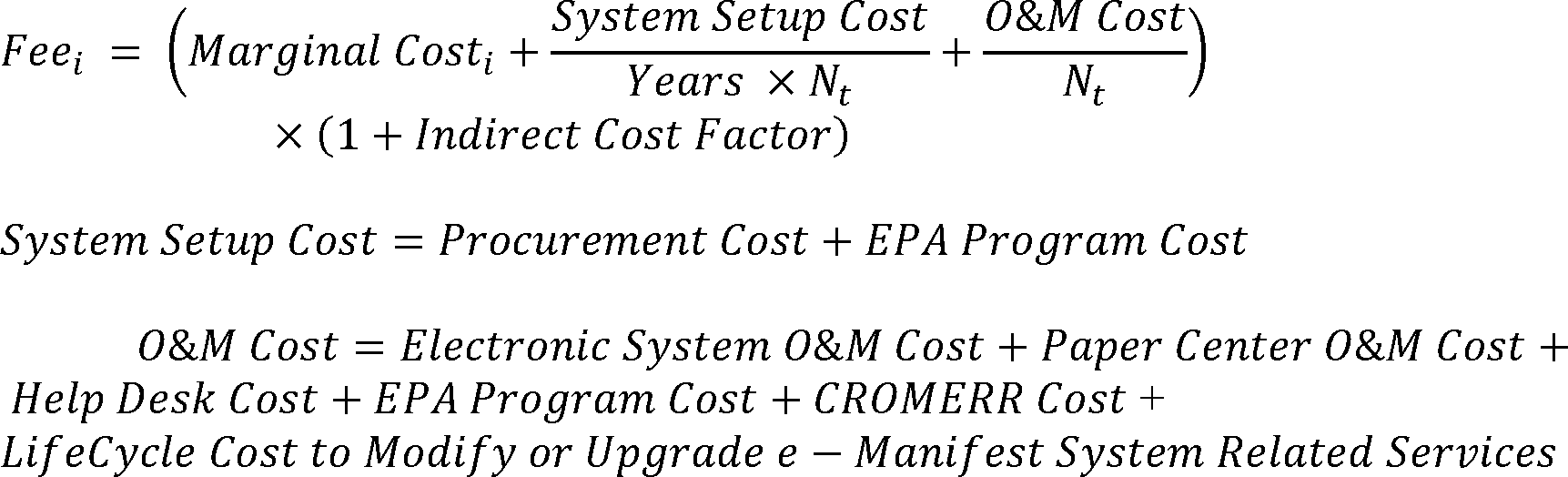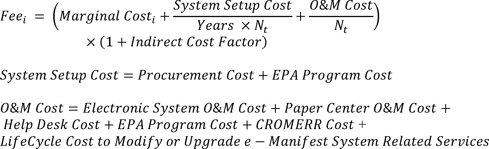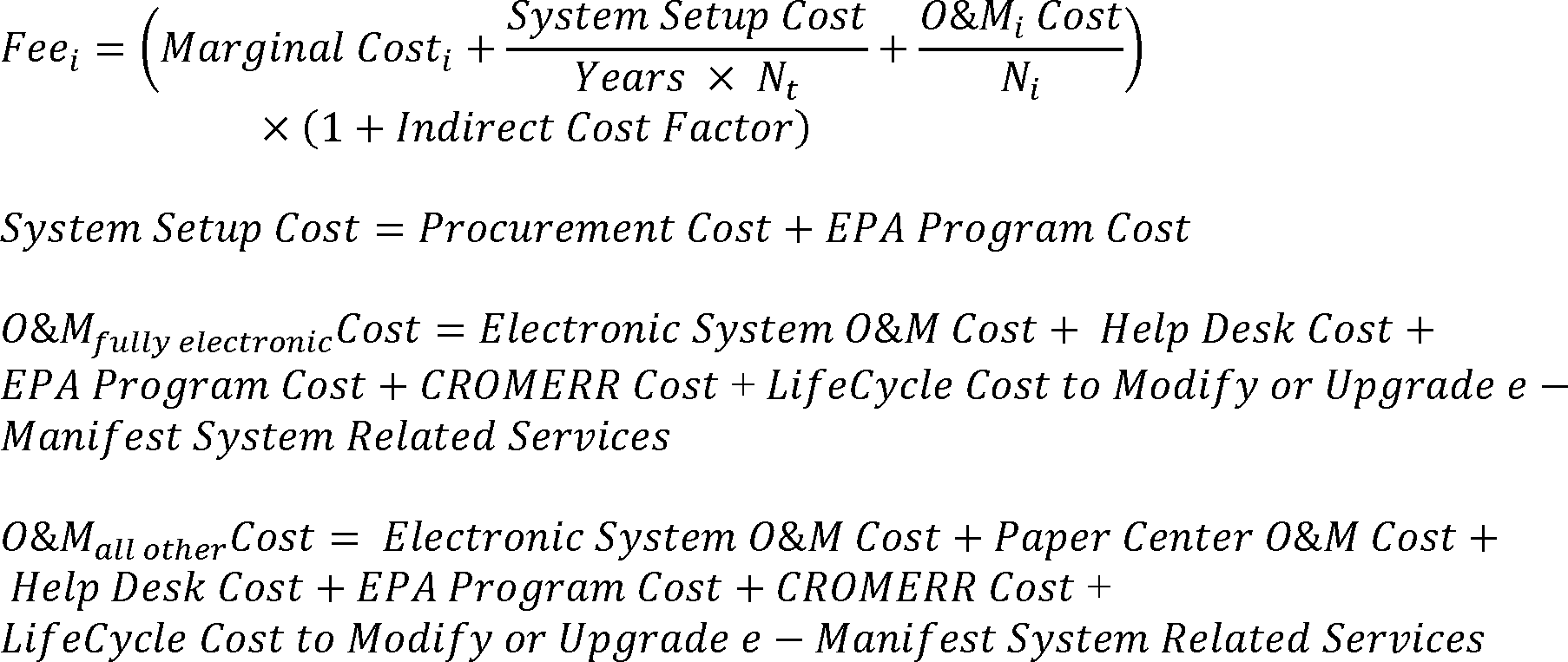 (e) Imposition of user fee for manifest submissions. (1) As prescribed in § 265.1311, and determined in § 265.1312, a commercial storage or disposal facility who is a user of the electronic manifest system shall be assessed a user fee by EPA for the submission and processing of each electronic and paper manifest. EPA shall update the schedule of user fees and publish them to the user community, as provided in § 265.1313.