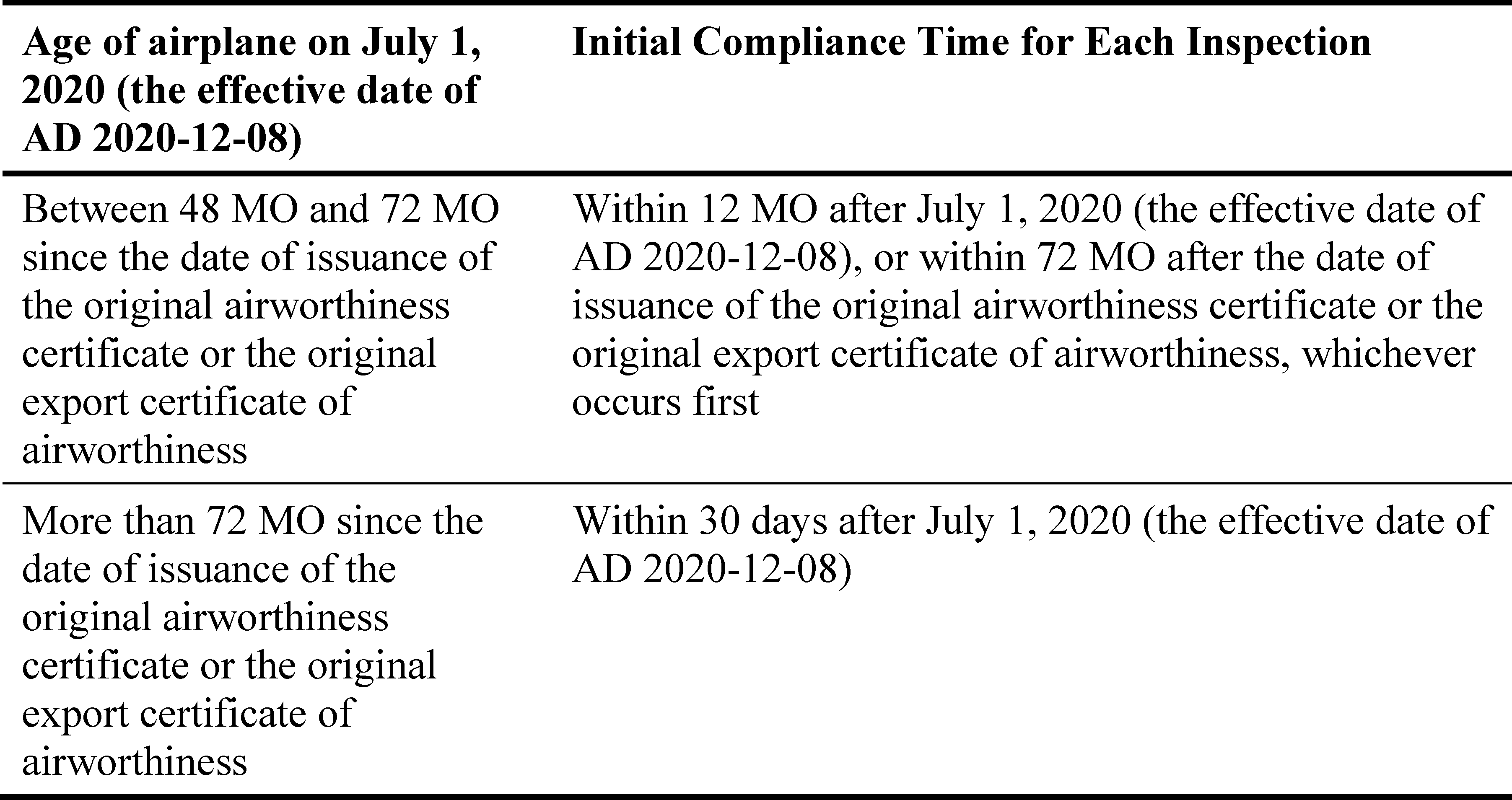 (3) This paragraph provides credit for the initial inspections required by table 2 to paragraph (i) of this AD, if you performed those actions before July 1, 2020 (the effective date of AD 2020-12-08) using the service information specified in paragraphs (o)(3)(i), (ii), or (iii) of this AD.