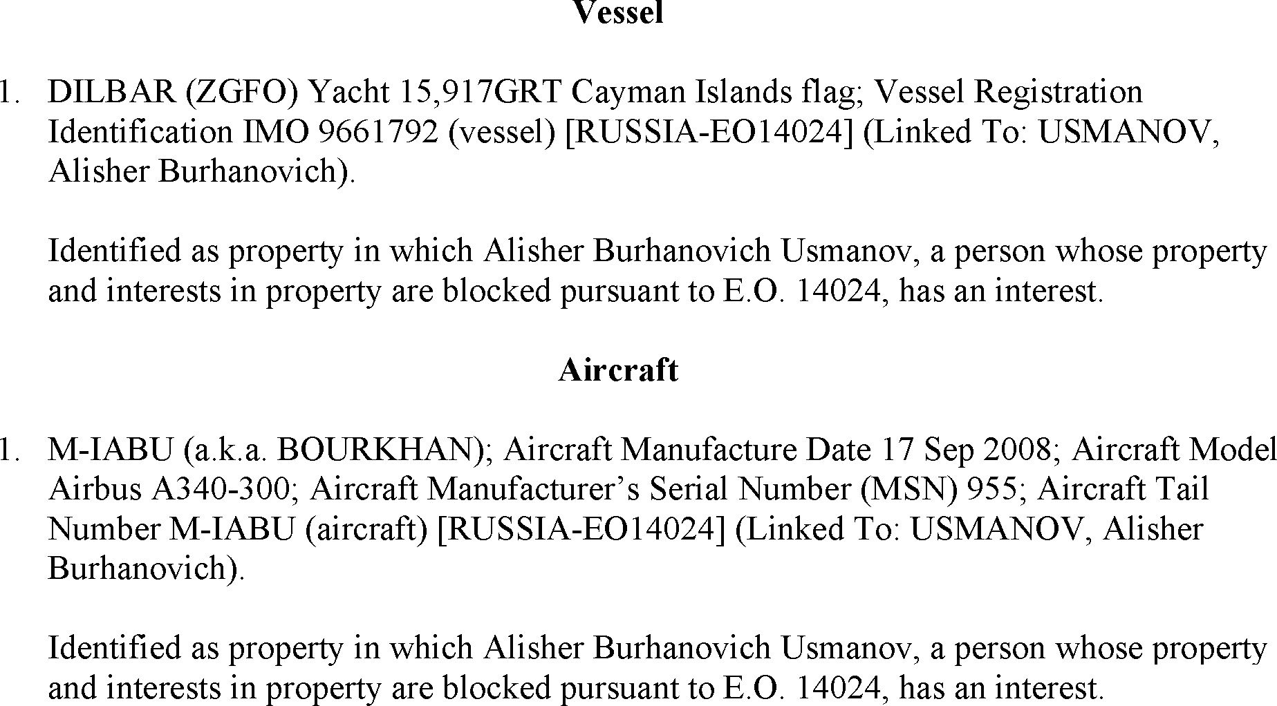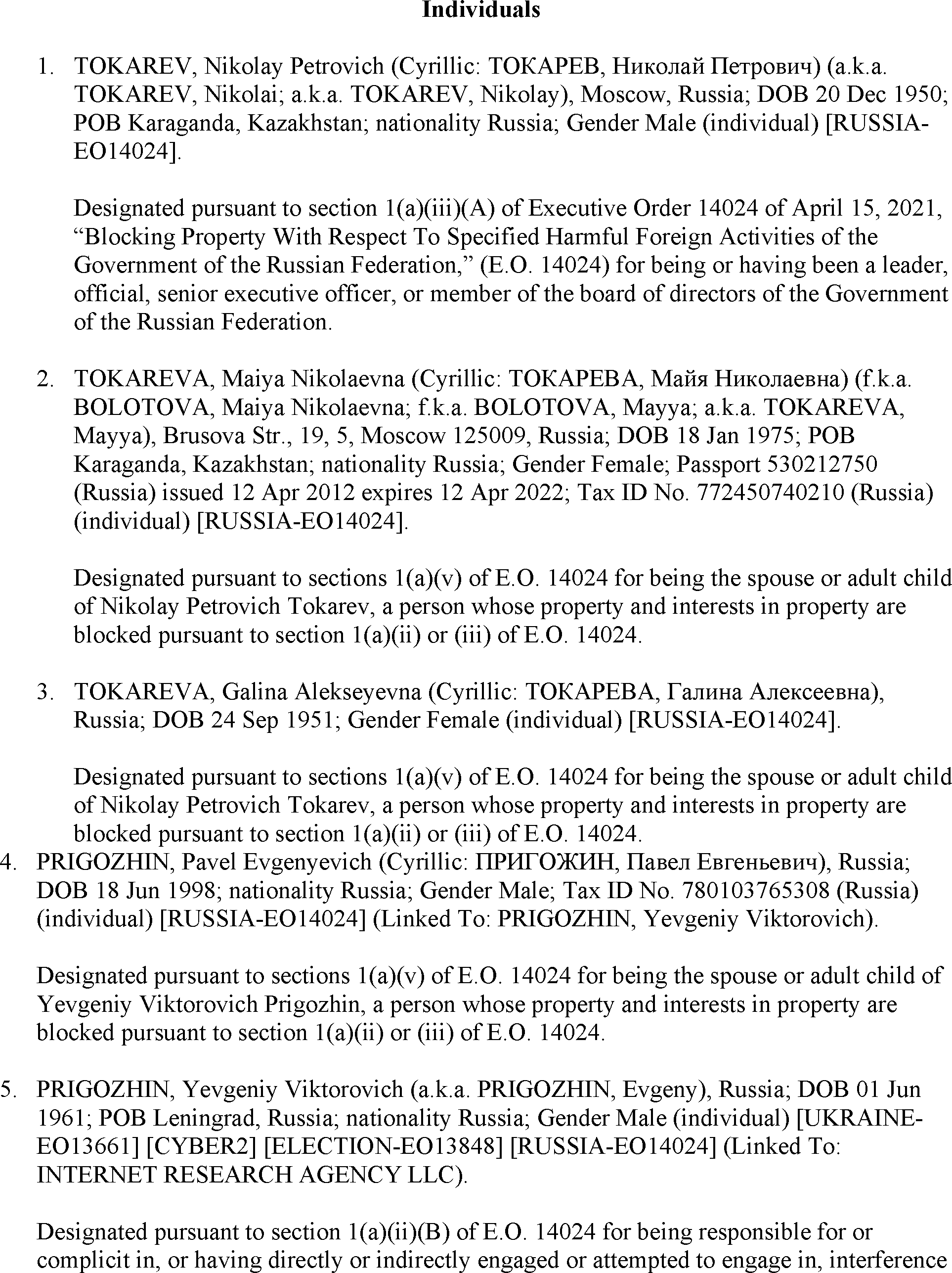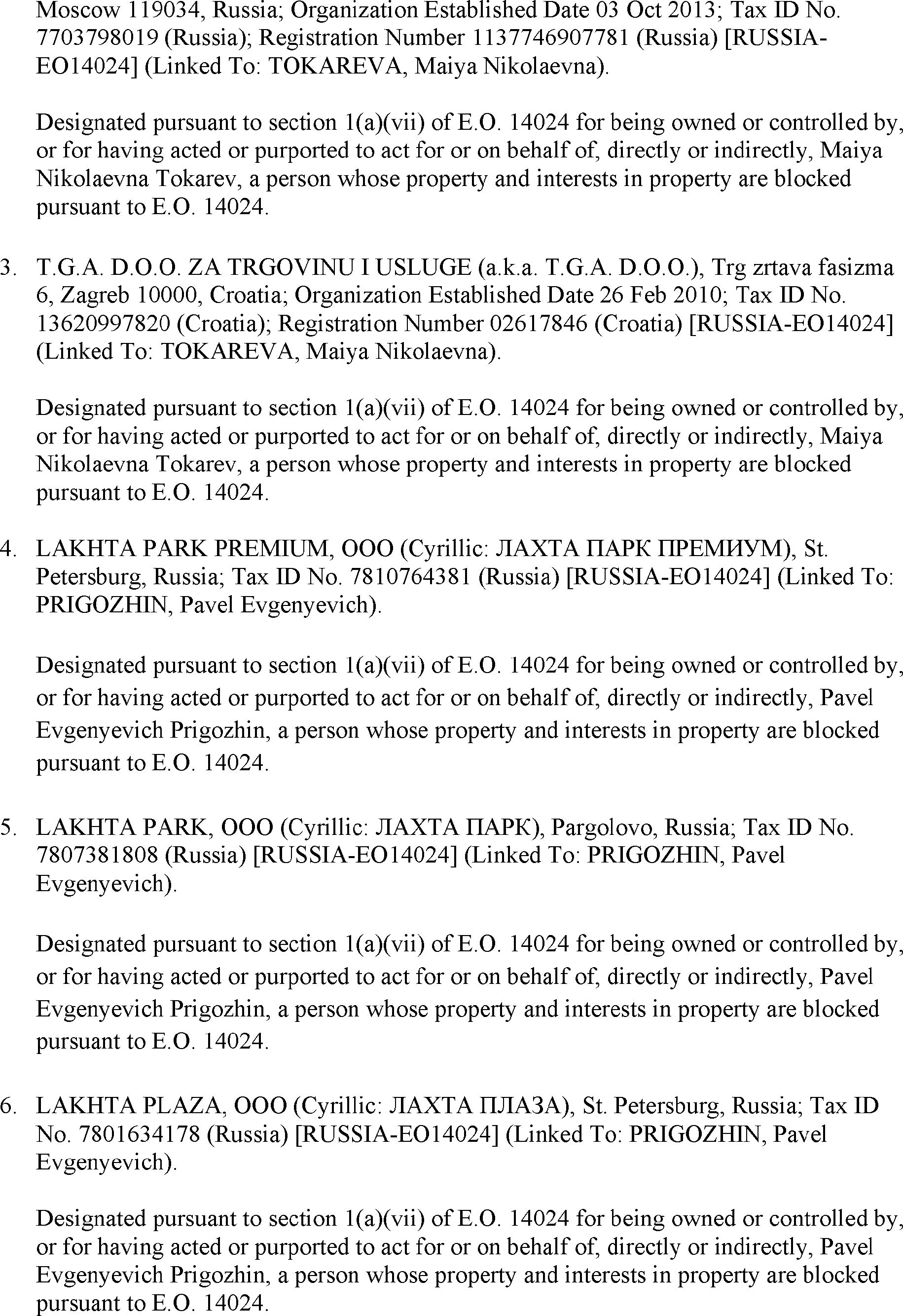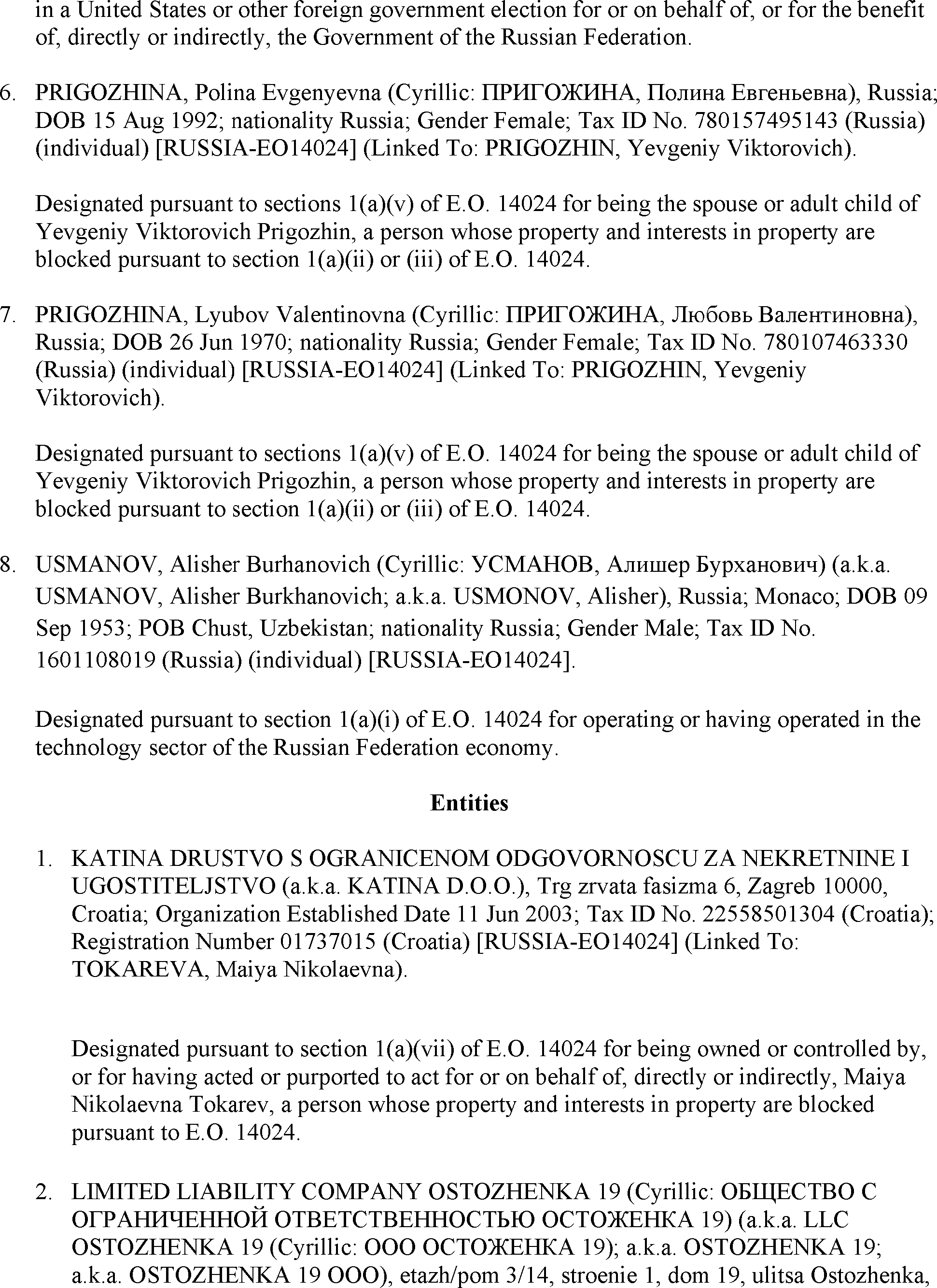 The U.S. Department of the Treasury's Office of Foreign Assets Control (OFAC) is publishing the names of one or more persons or property that have been placed on OFAC's Specially Designated Nationals and Blocked Persons List based on OFAC's determination that one or more applicable legal criteria were satisfied. All property and interests in property subject to U.S. jurisdiction of these persons are blocked, and U.S. persons are generally prohibited from engaging in transactions with them.