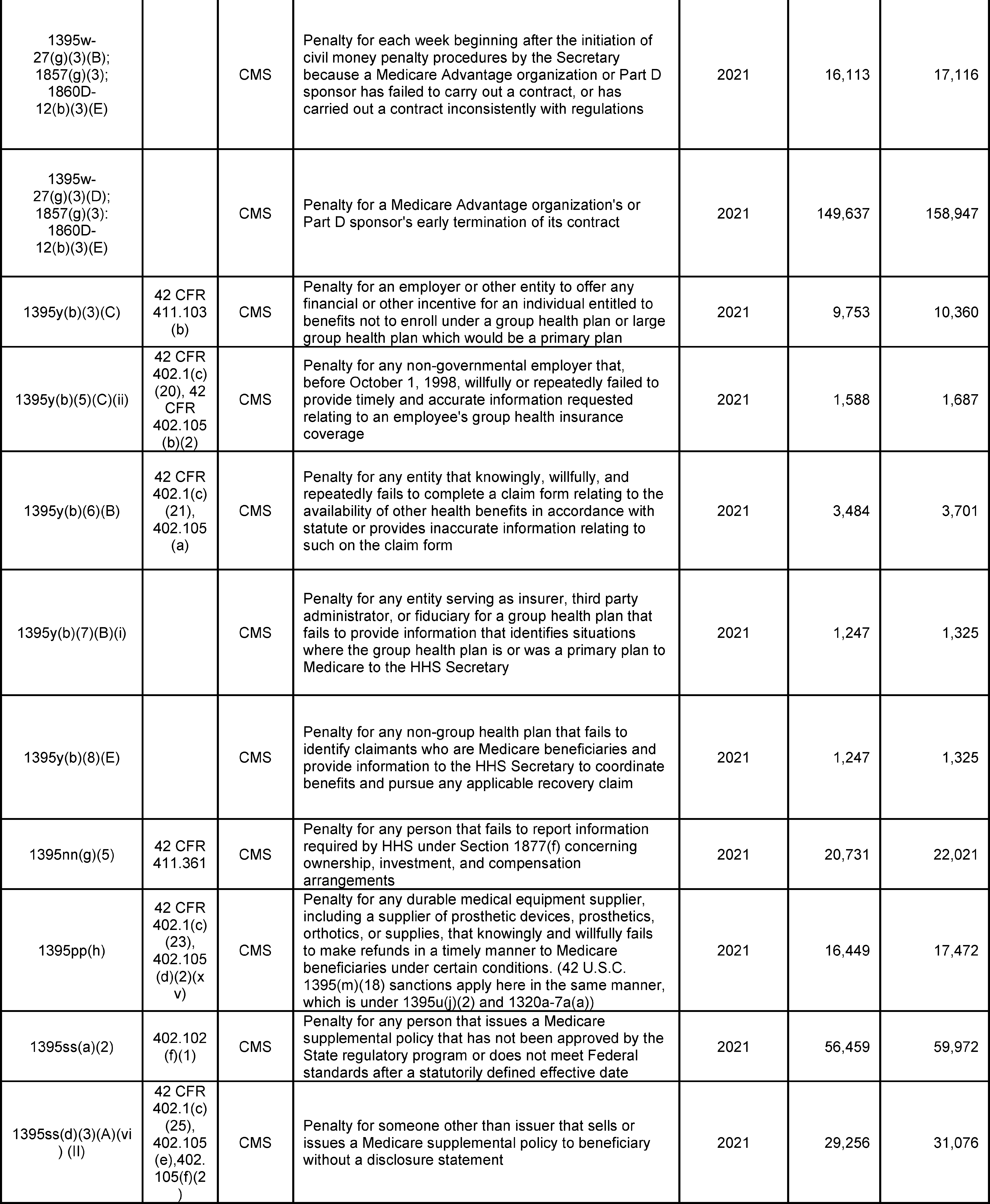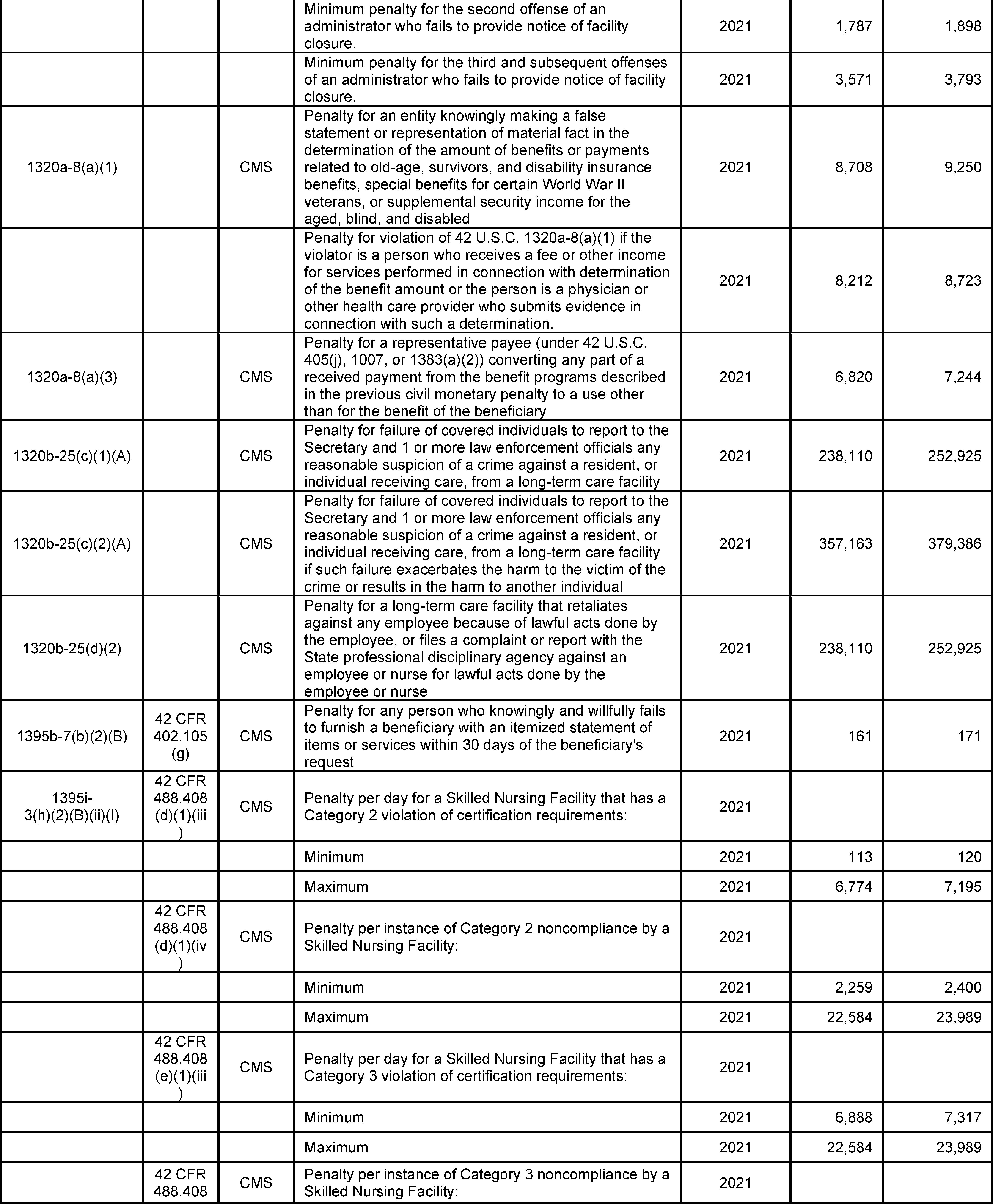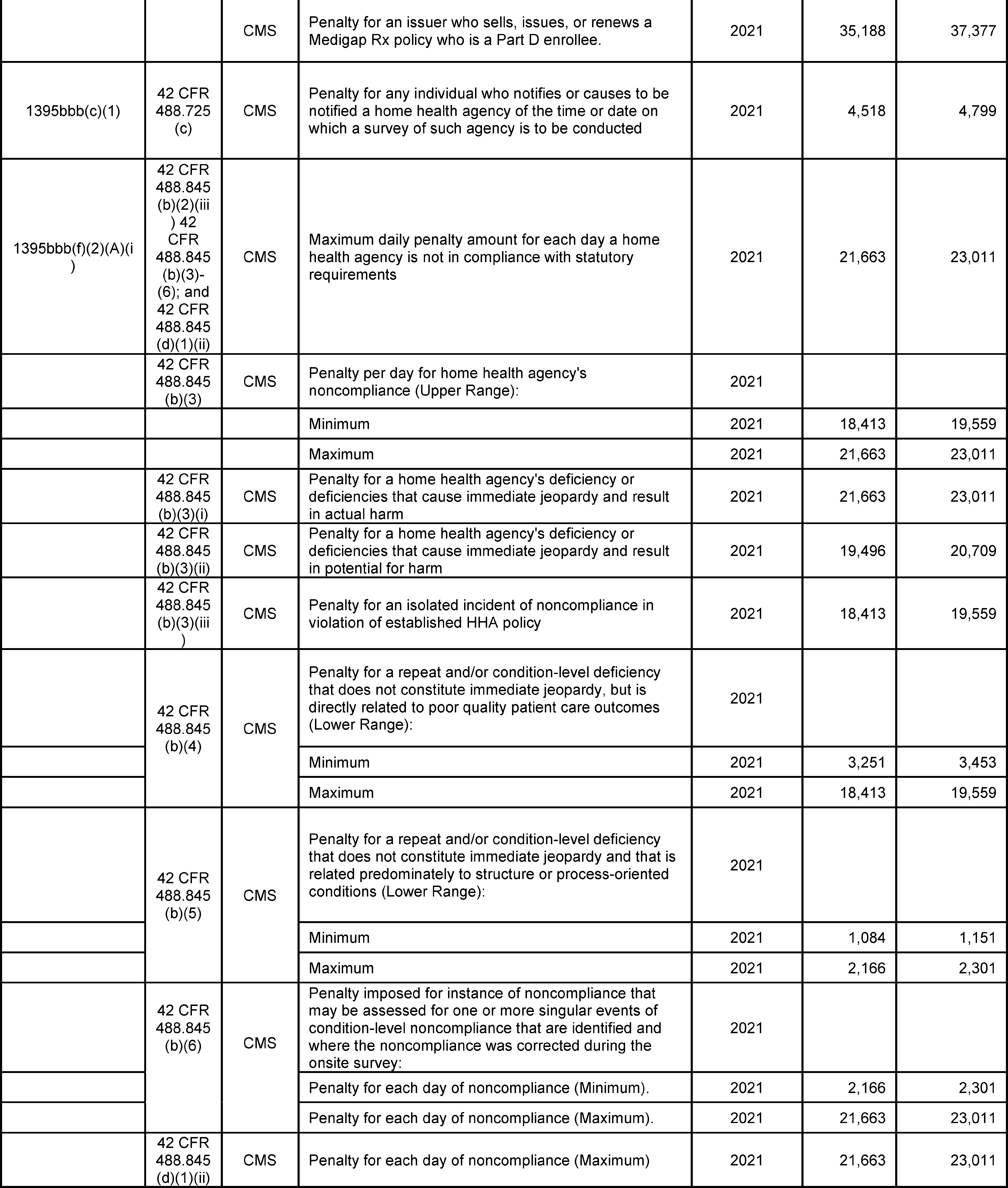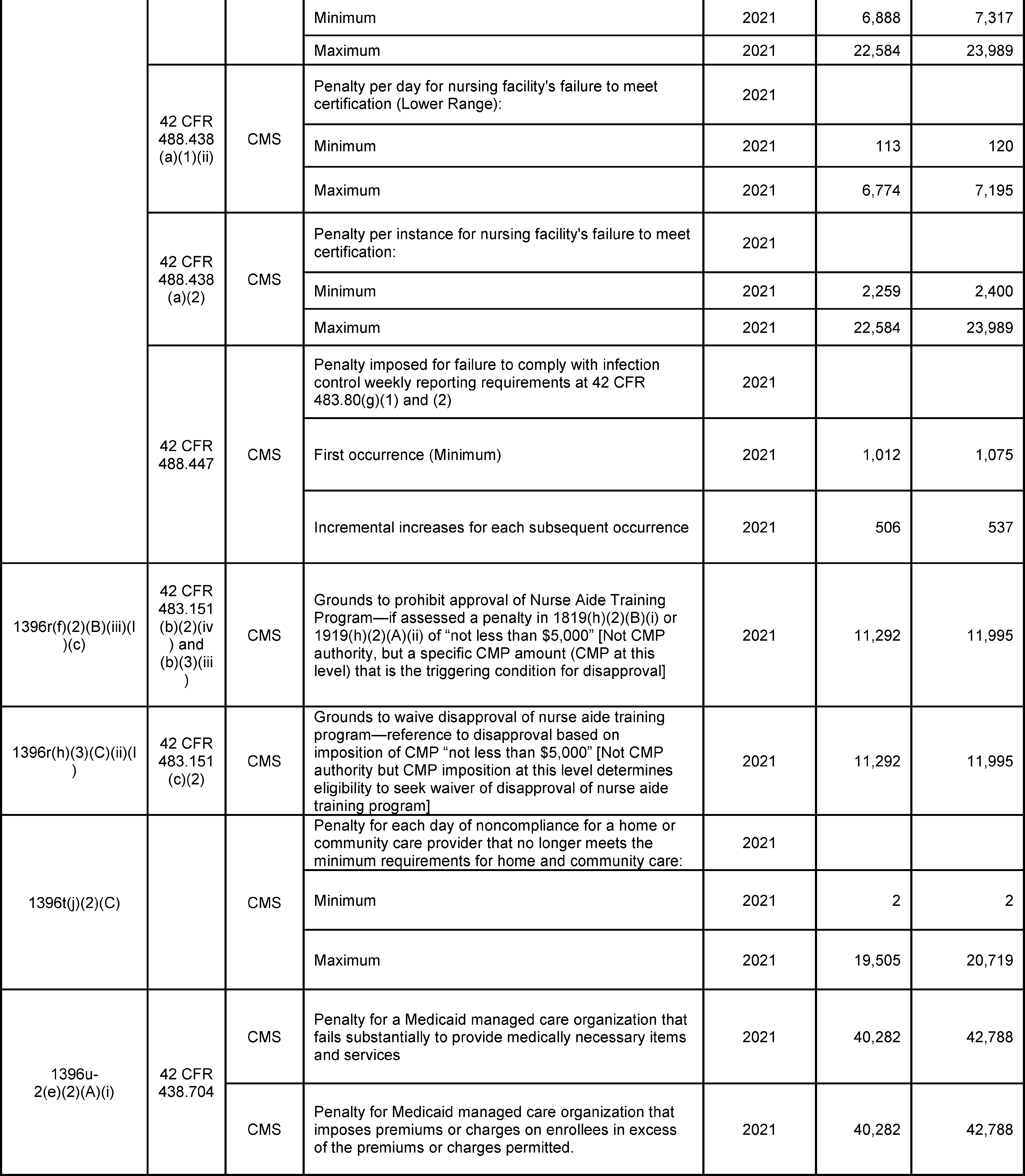 which was inadvertently omitted from the regulation is added. Additionally, the amount for this CMP was not included in the 2021 inflation adjustment rule. 86 FR 62928, 62943 (Nov. 15, 2021). Thus, we are updating the inflation amount at this time.