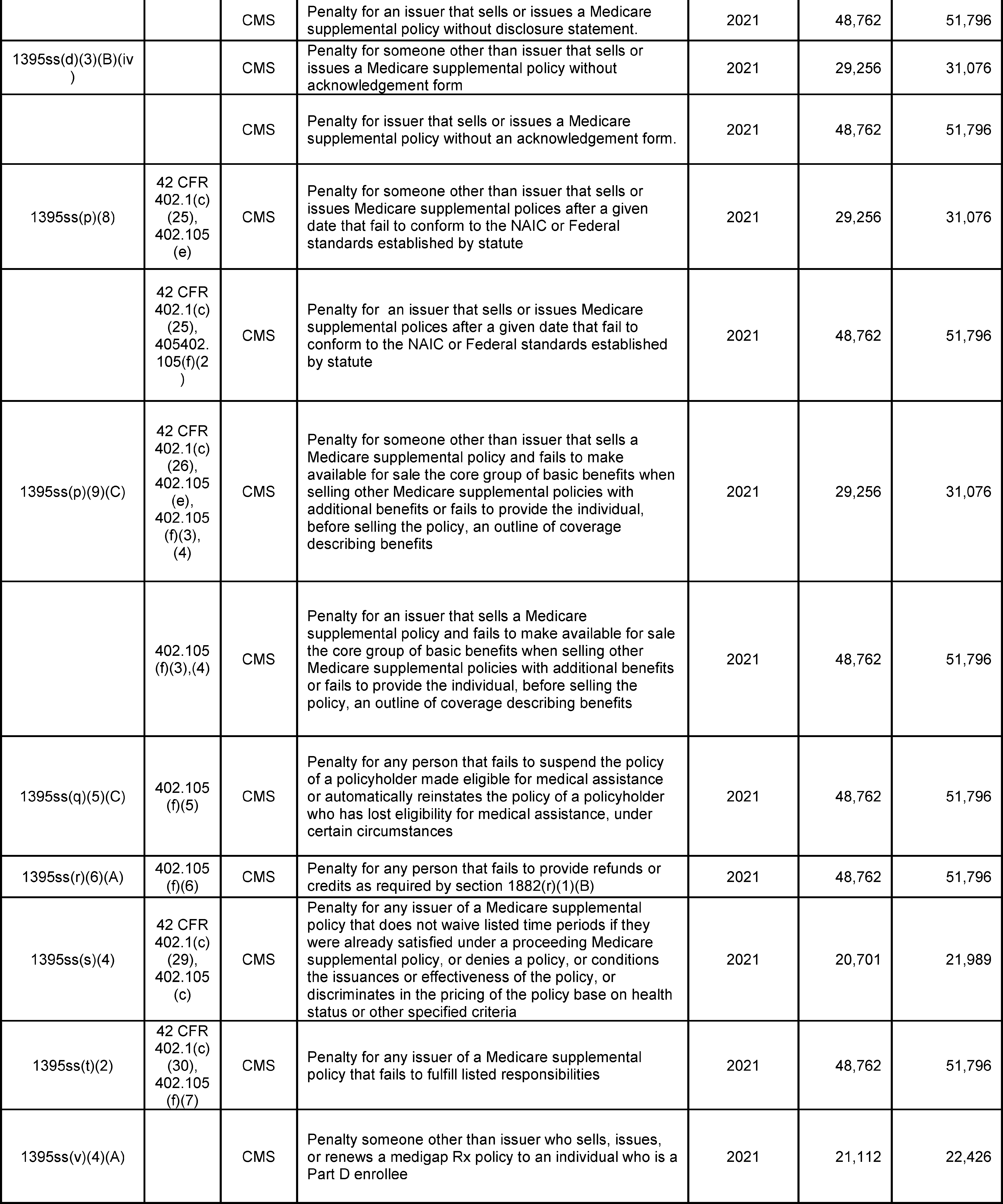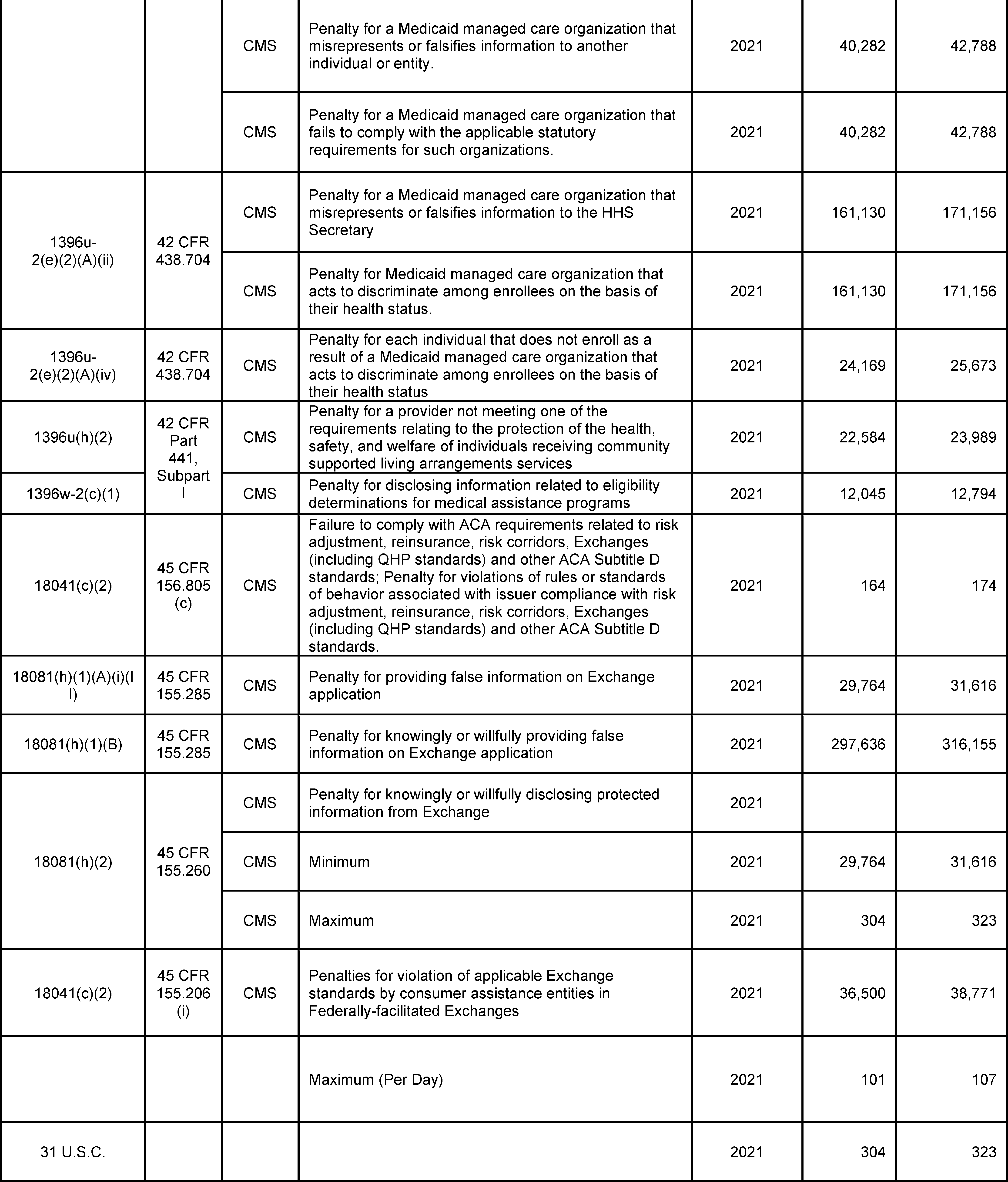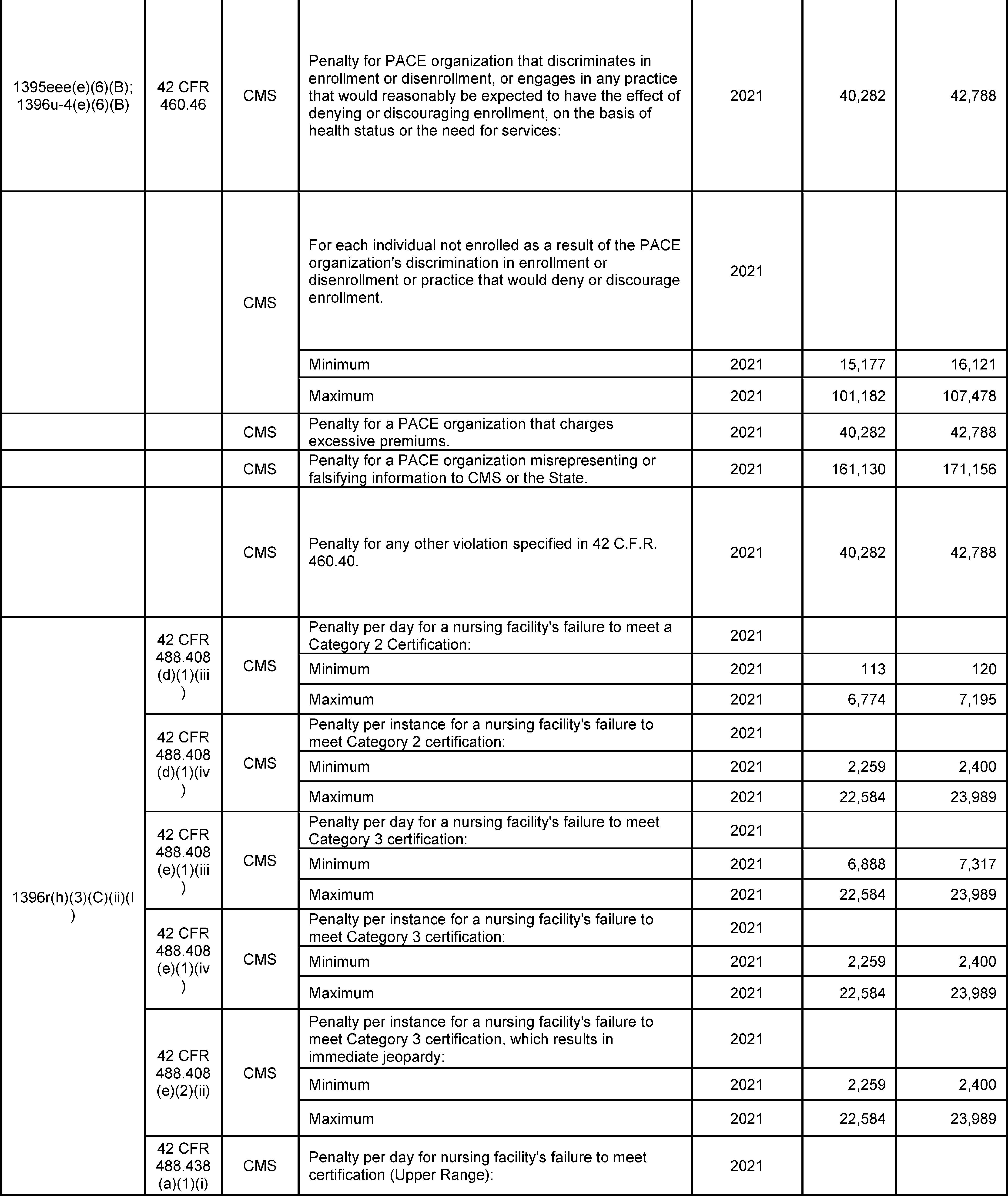 which was inadvertently omitted from the regulation is added. Additionally, the amount for this CMP was not included in the 2021 inflation adjustment rule. 86 FR 62928, 62943 (Nov. 15, 2021). Thus, we are updating the inflation amount at this time.