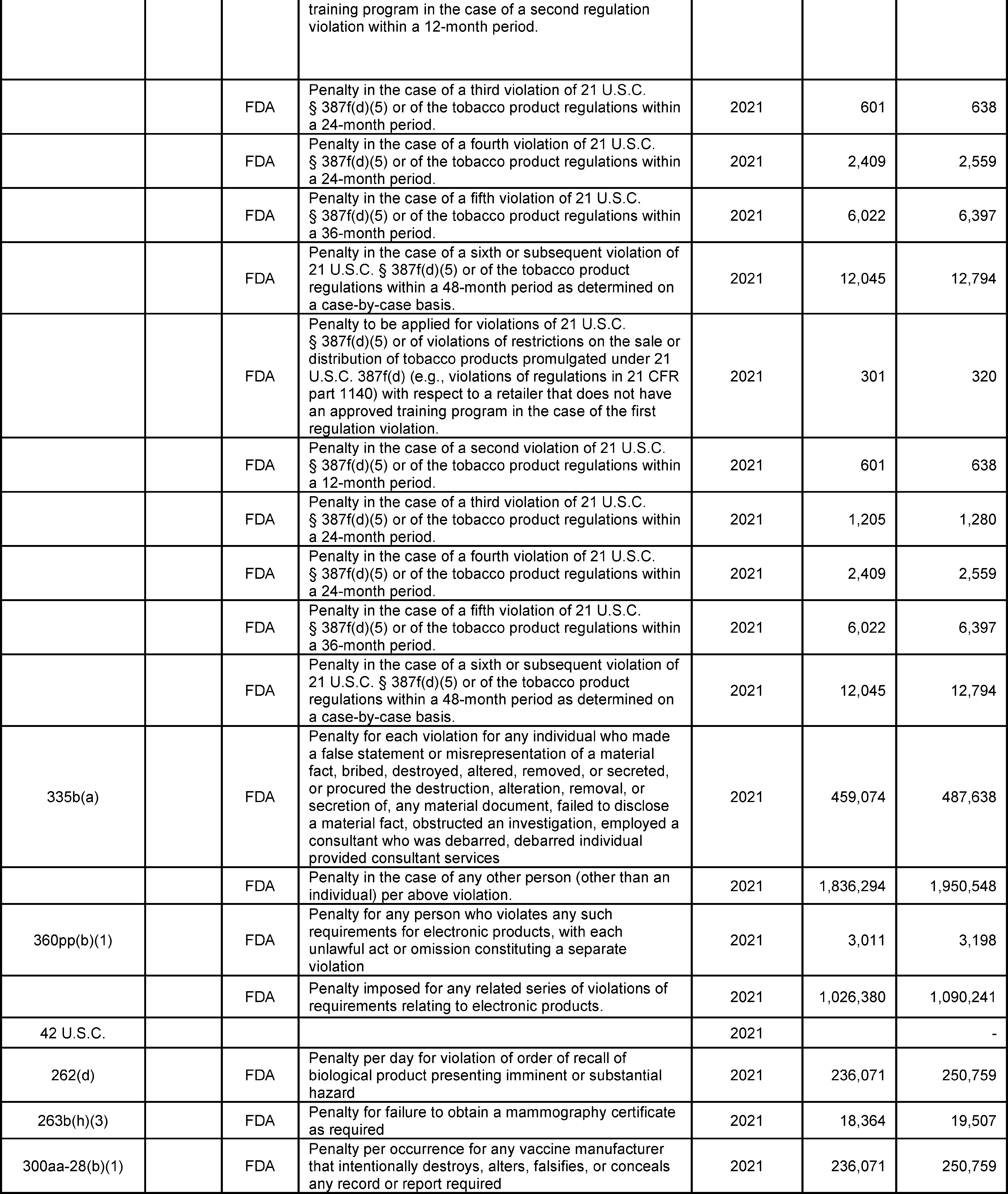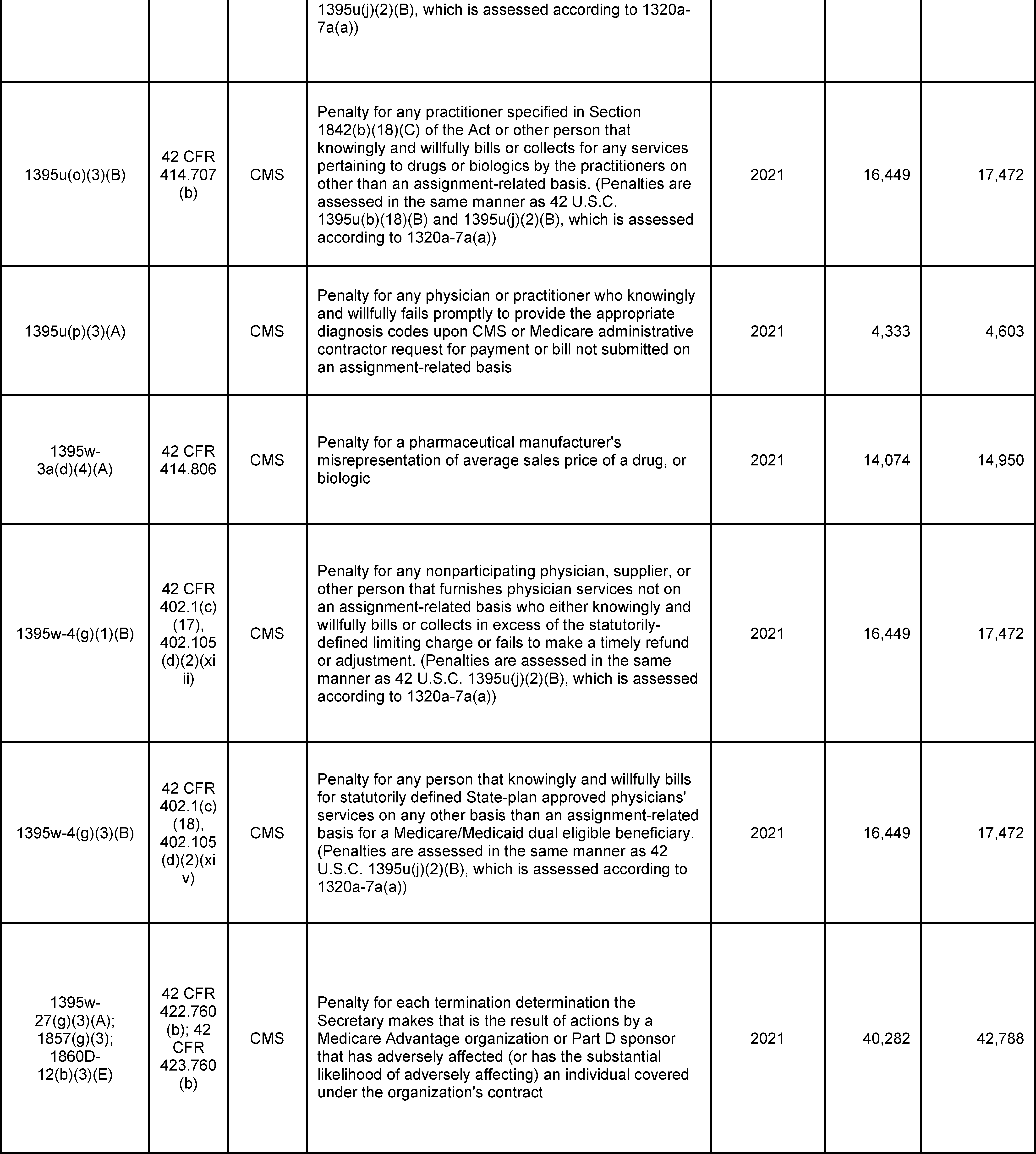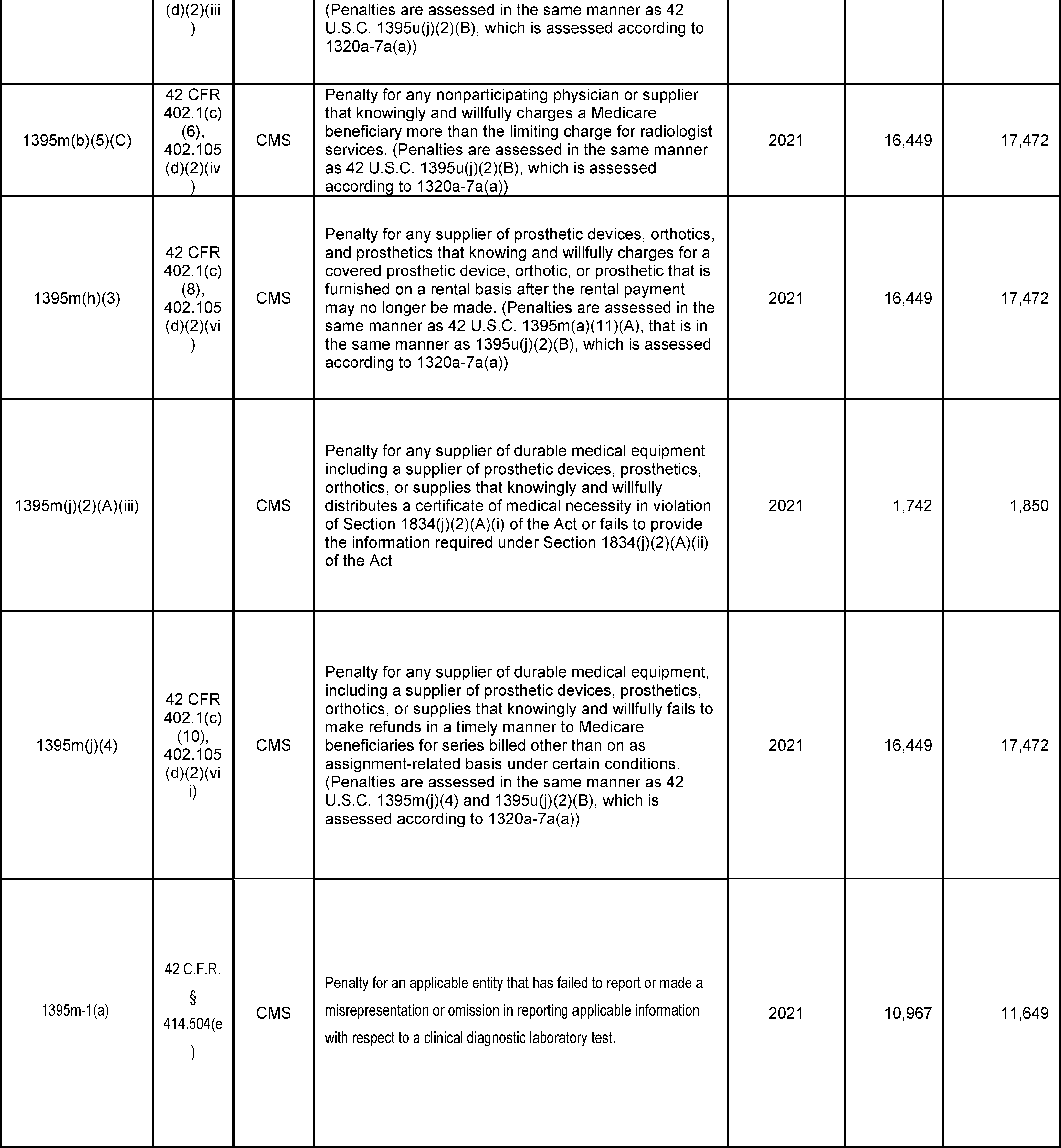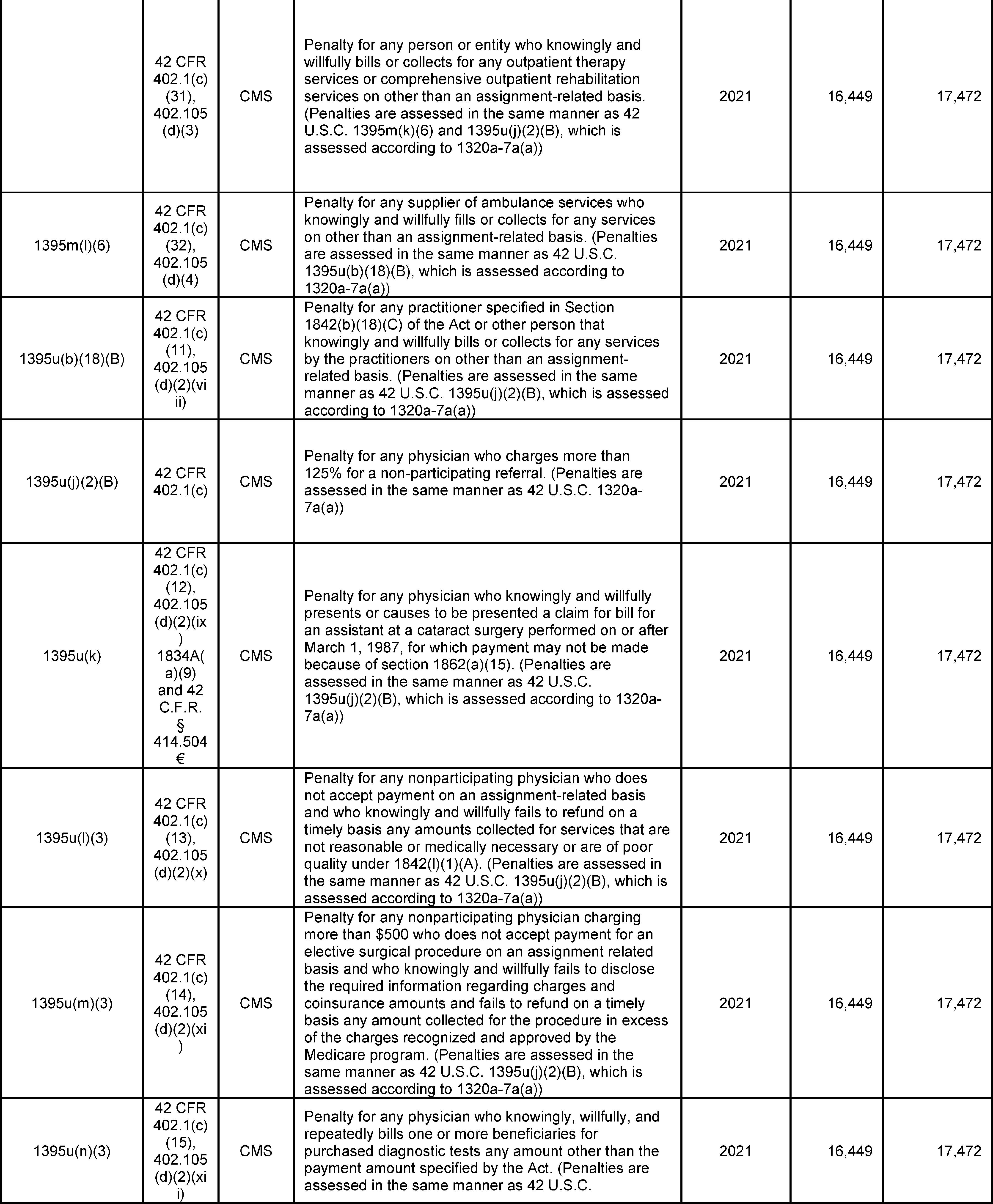 which was inadvertently omitted from the regulation is added. Additionally, the amount for this CMP was not included in the 2021 inflation adjustment rule. 86 FR 62928, 62943 (Nov. 15, 2021). Thus, we are updating the inflation amount at this time.