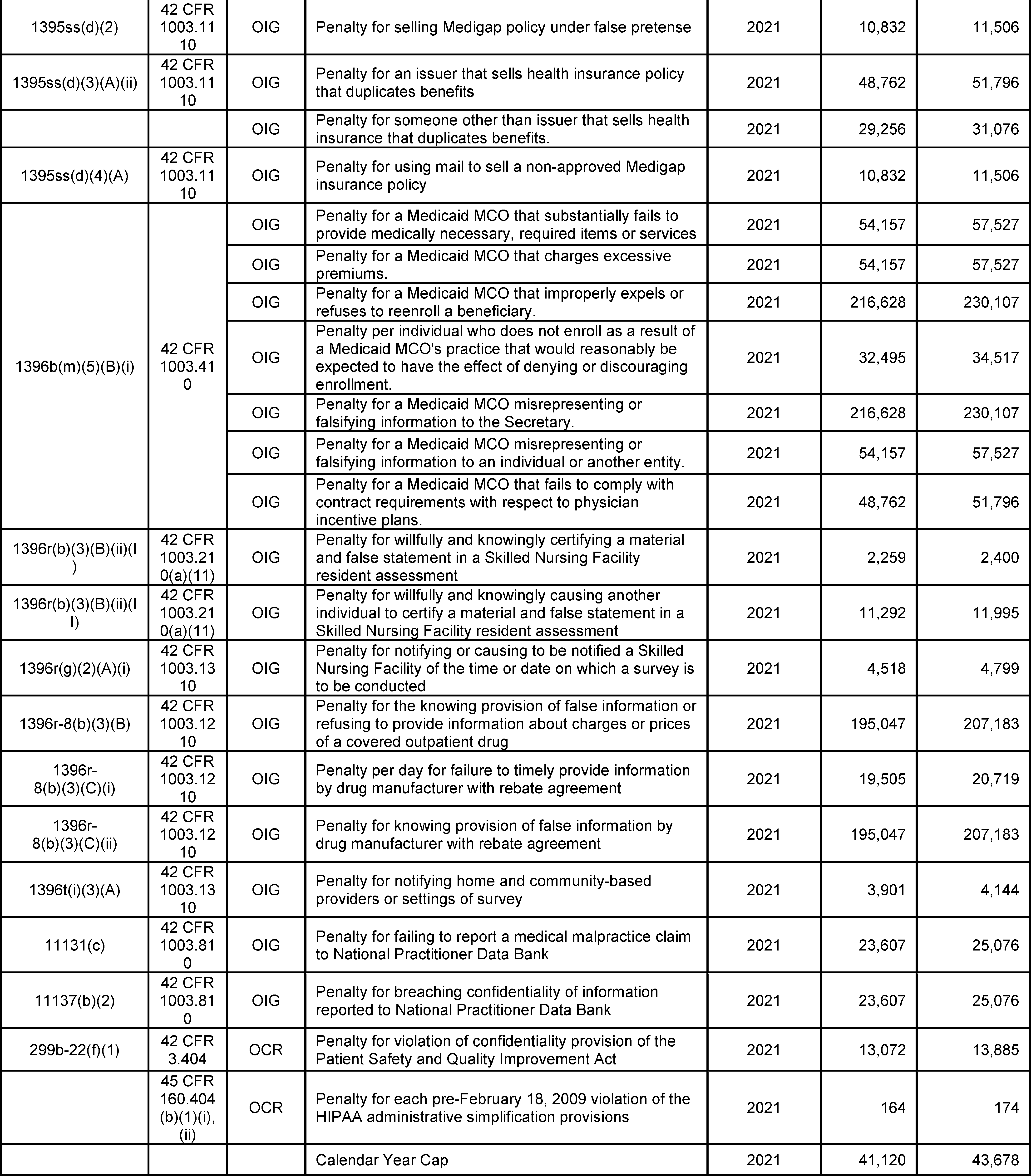 The Department of Health and Human Services (HHS) lists the CMP authorities and the amounts administered by all of its agencies in tabular form in 45 CFR 102.3, which was issued in an interim final rule published in the September 6, 2016,