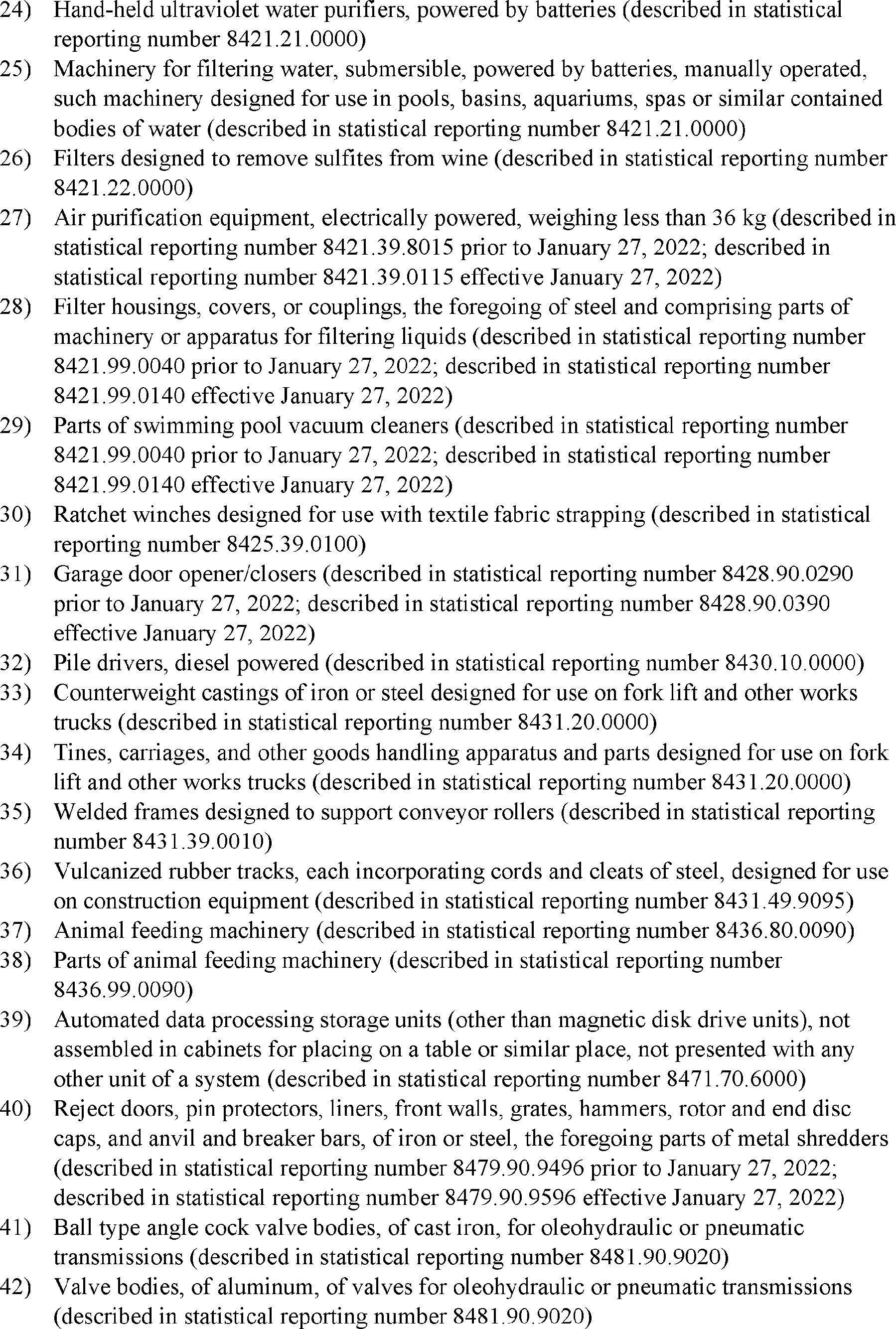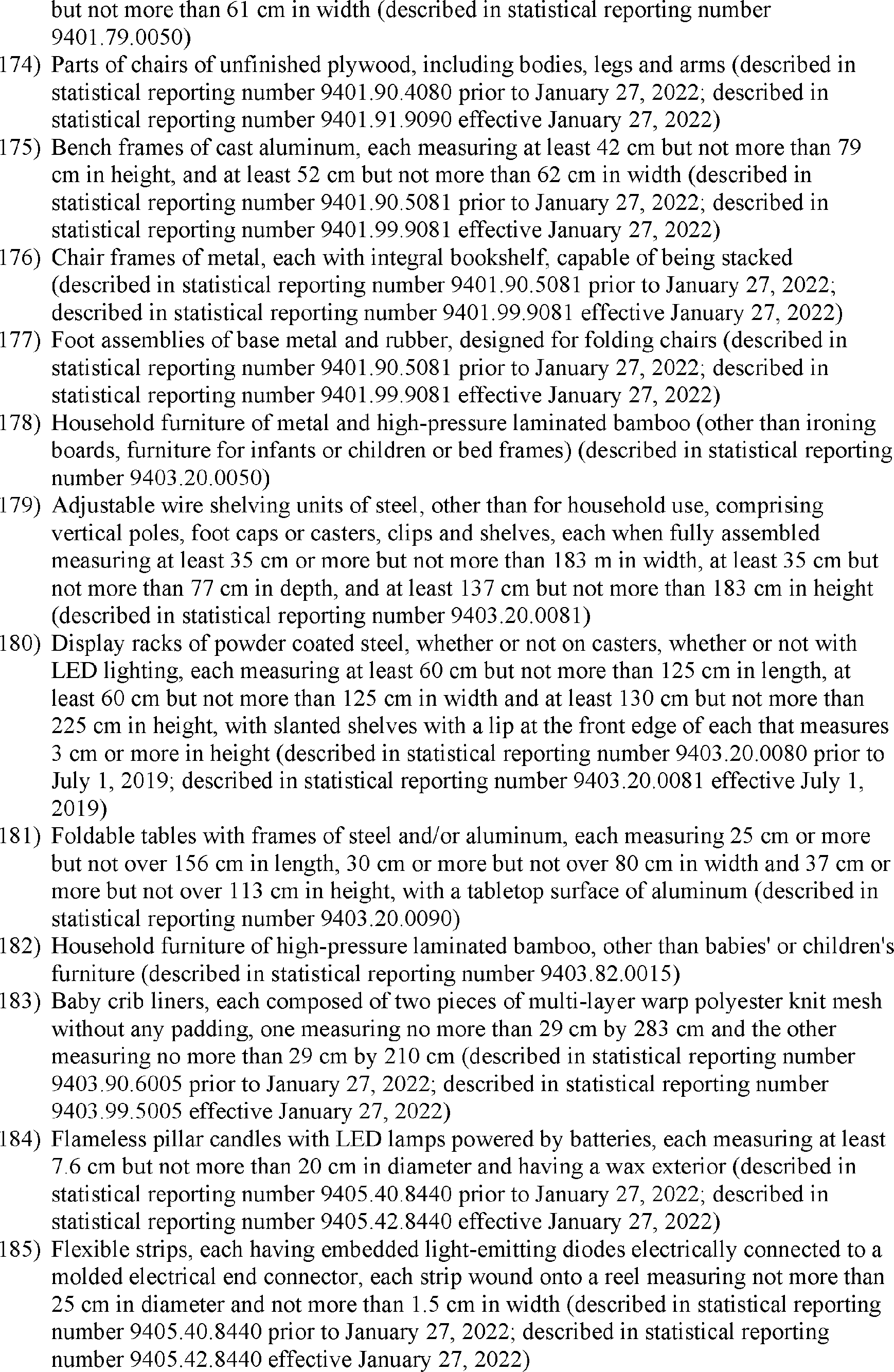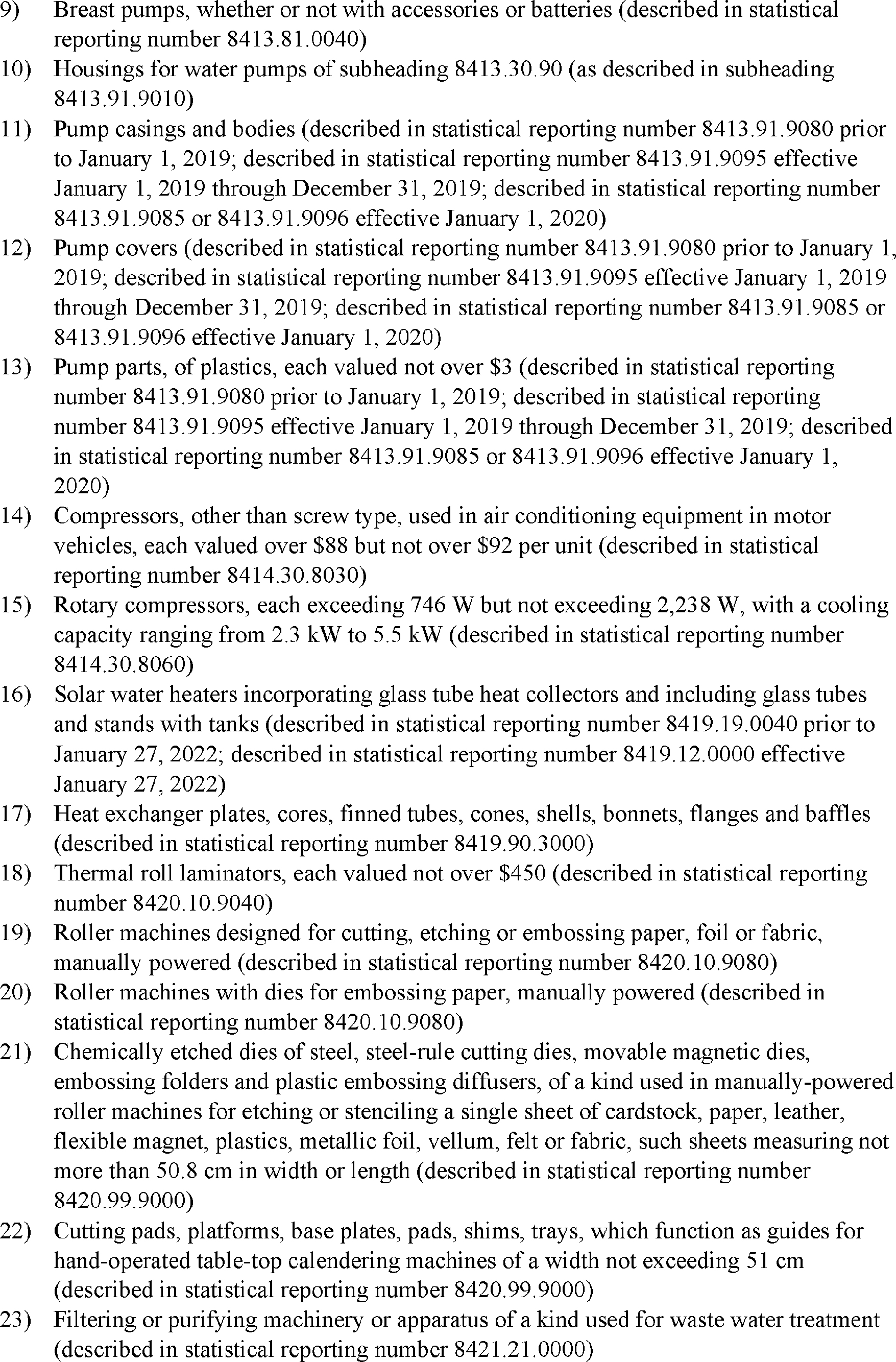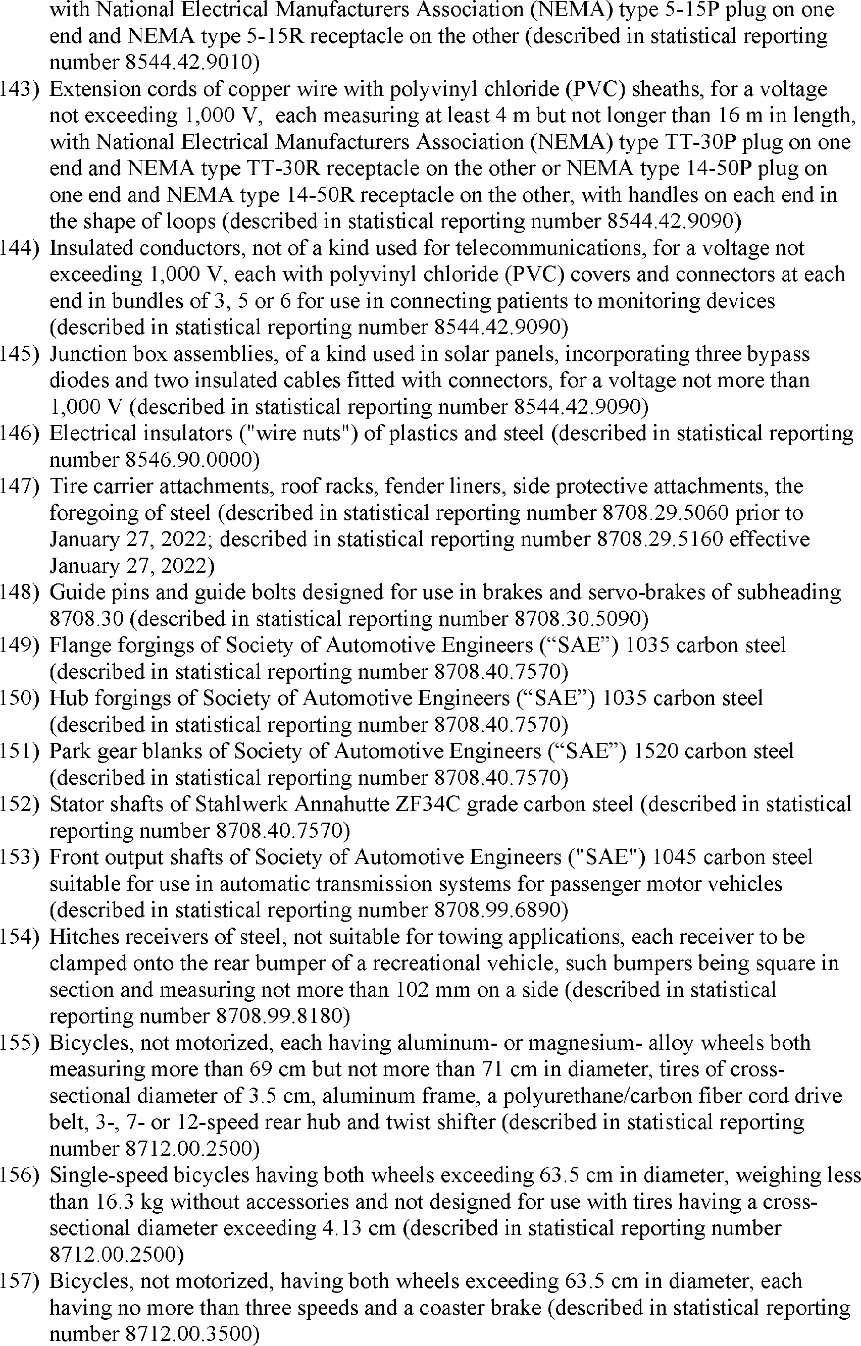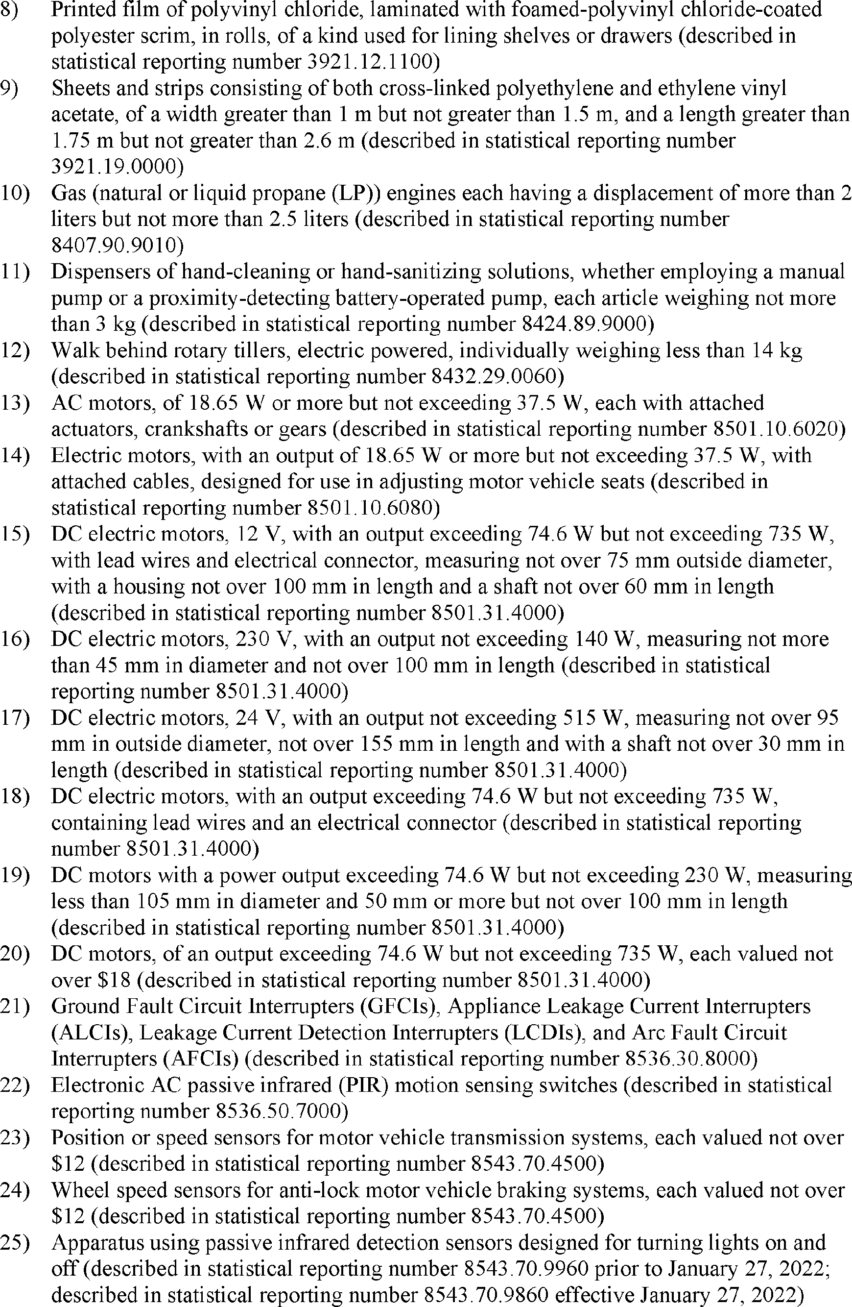 As stated in the October 8 notice, the reinstated exclusions are retroactive to October 12, 2021. In particular, the reinstated exclusions will apply to goods entered for consumption, or withdrawn from warehouse for consumption, on or after 12:01 a.m. eastern daylight time on October 12, 2021, that are not liquidated or to entries that are liquidated, but within the period for protest described in section 514 of the Tariff Act of 1930, as amended. The U.S. Trade Representative has determined to extend the reinstated exclusions through December 31, 2022, and may consider further extensions as appropriate.