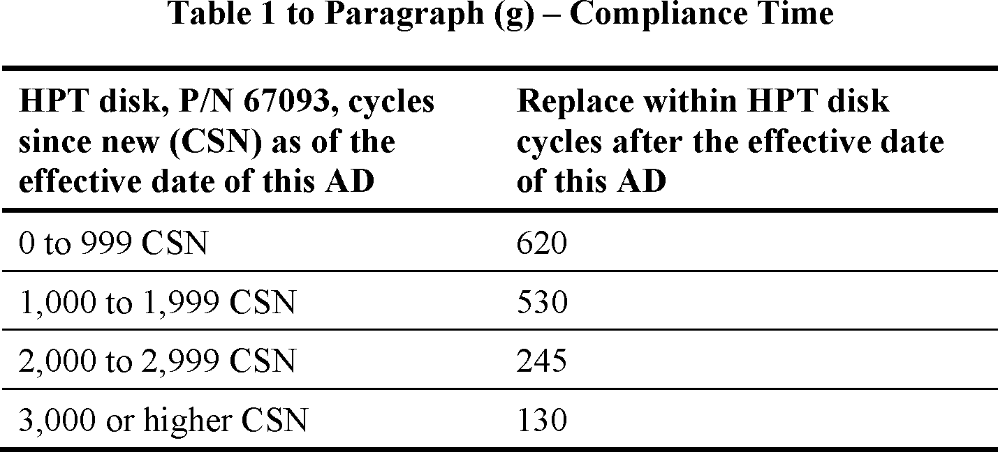 This proposed AD would require removing the HPT disk, P/N 67093, from service before reaching defined cycle limits and replacing it with a part eligible for installation.