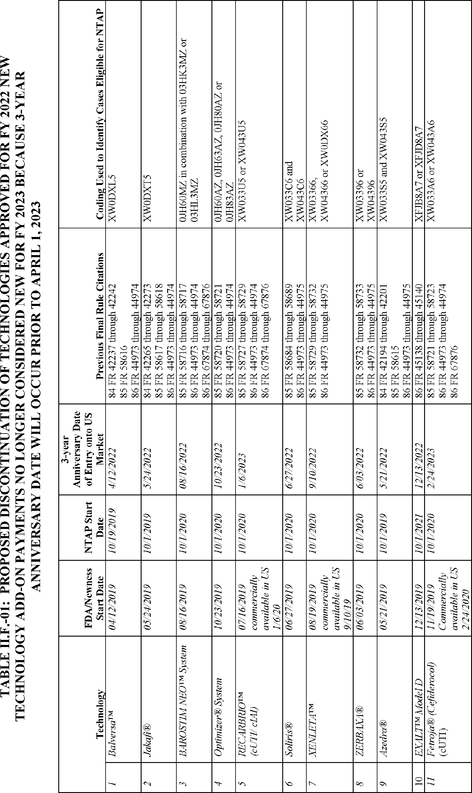 F. Add-On Payments for New Services and Technologies for FY 2023