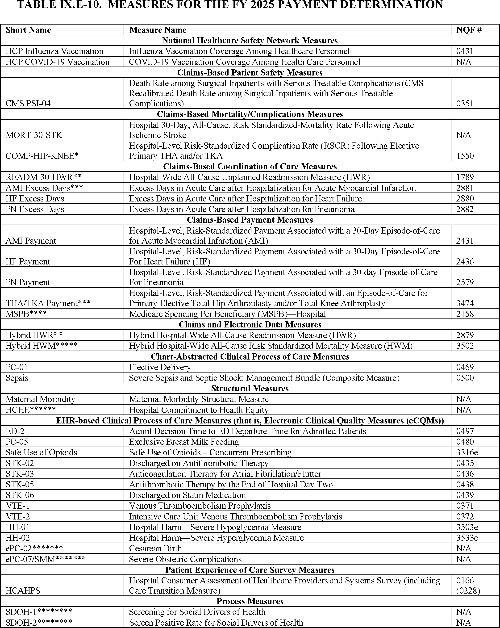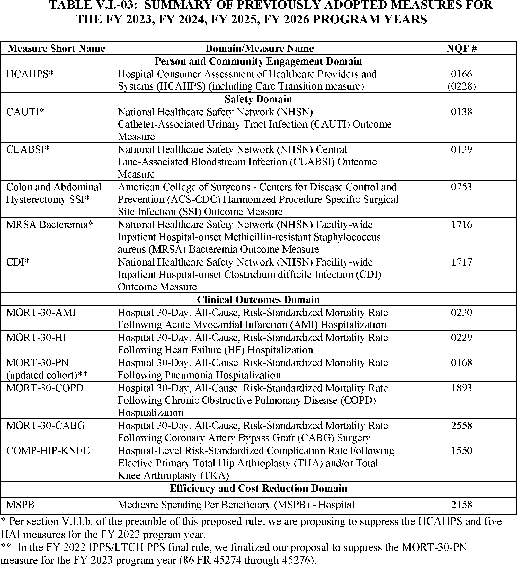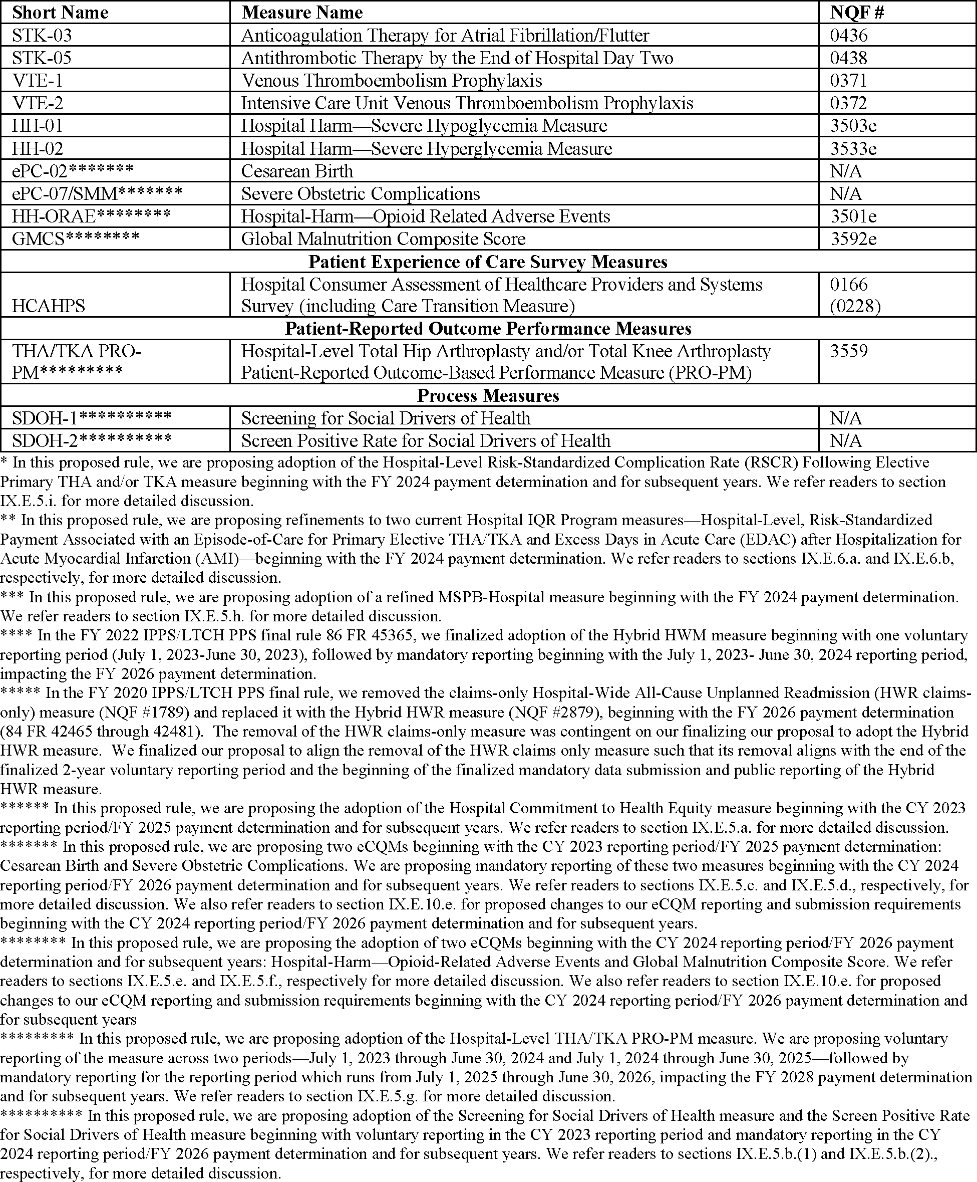 Hospital Inpatient Quality Reporting and Hospital Value-Based Purchasing Programs—Measures Issues Except Hospital Consumer Assessment of Healthcare Providers and Systems Issues.