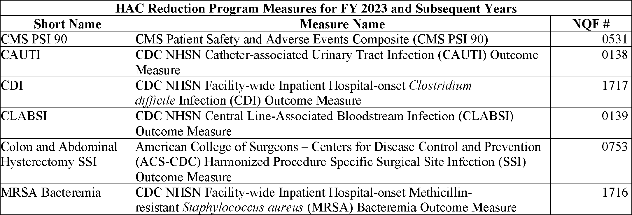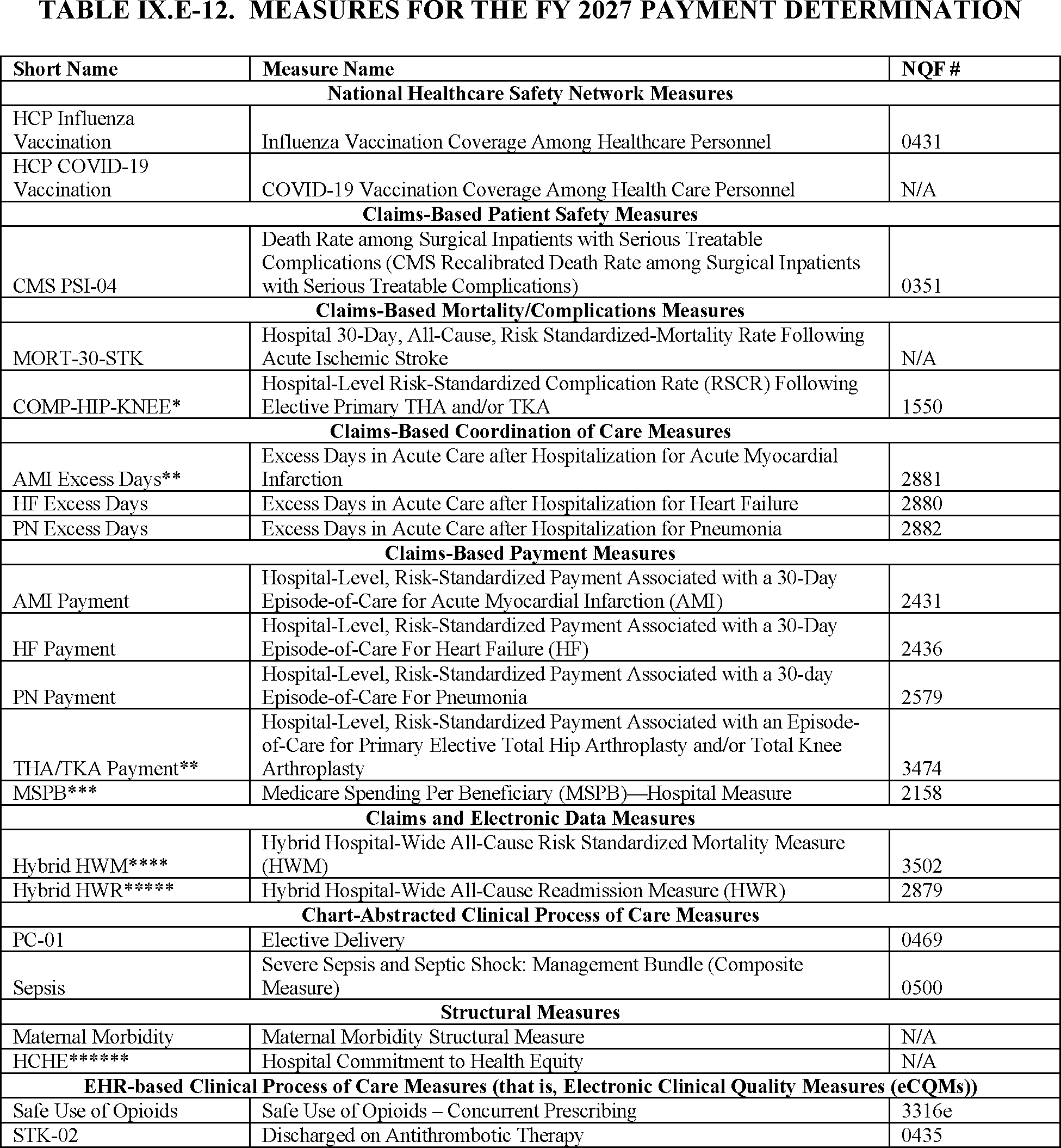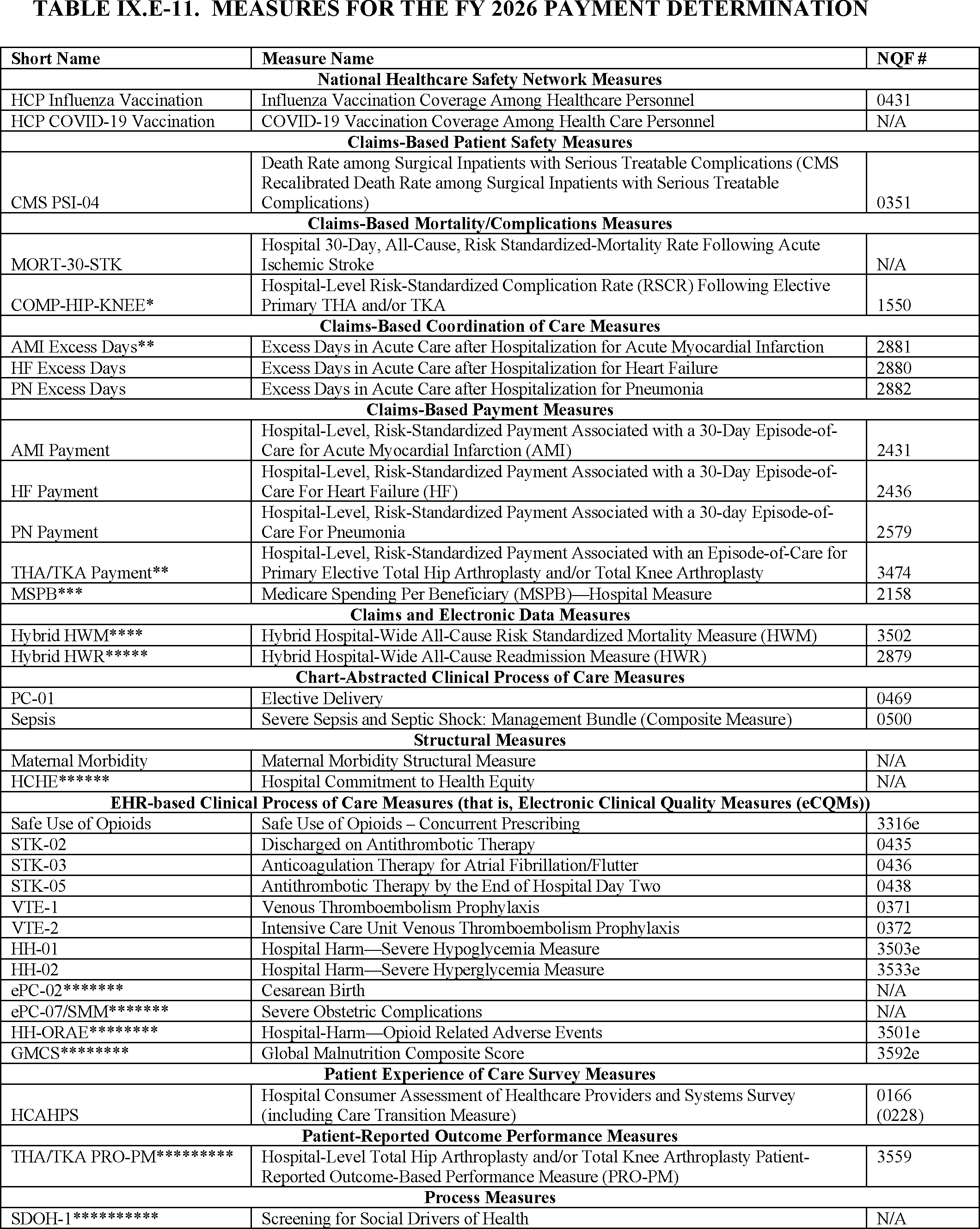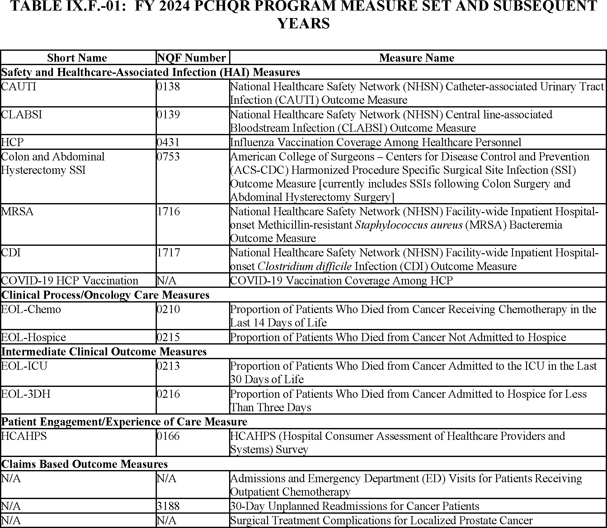 Hospital Inpatient Quality Reporting and Hospital Value-Based Purchasing Programs—Measures Issues Except Hospital Consumer Assessment of Healthcare Providers and Systems Issues.