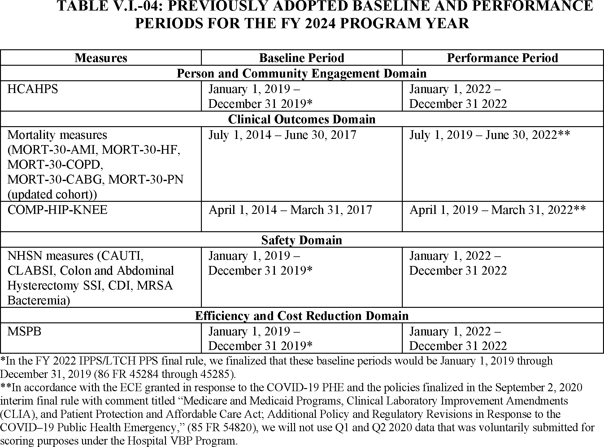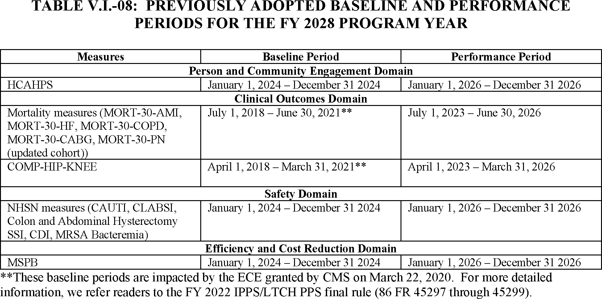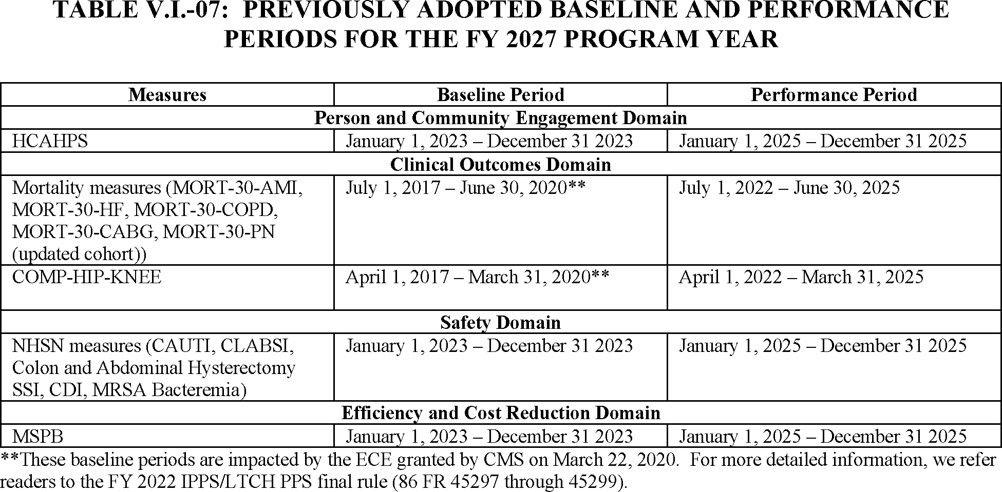 Although the FY 2022 performance period is July 1, 2017, through June 30, 2020, we note that first and second quarter data from CY 2020 is excluded from program calculations due to the nationwide ECE that was granted in response to the COVID-19 PHE. Taking into consideration the 30-day window to identify readmissions, the period for calculating DRG payments will be adjusted to July 1, 2017, through December 1, 2019.