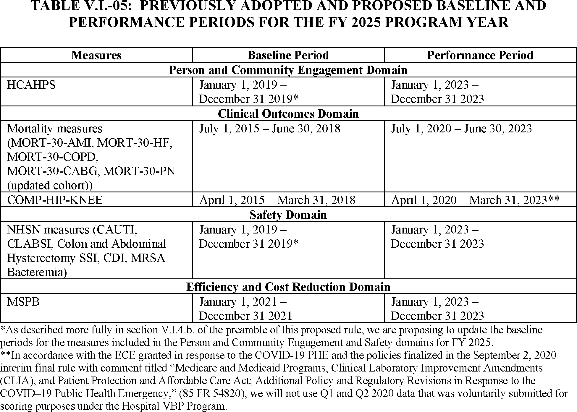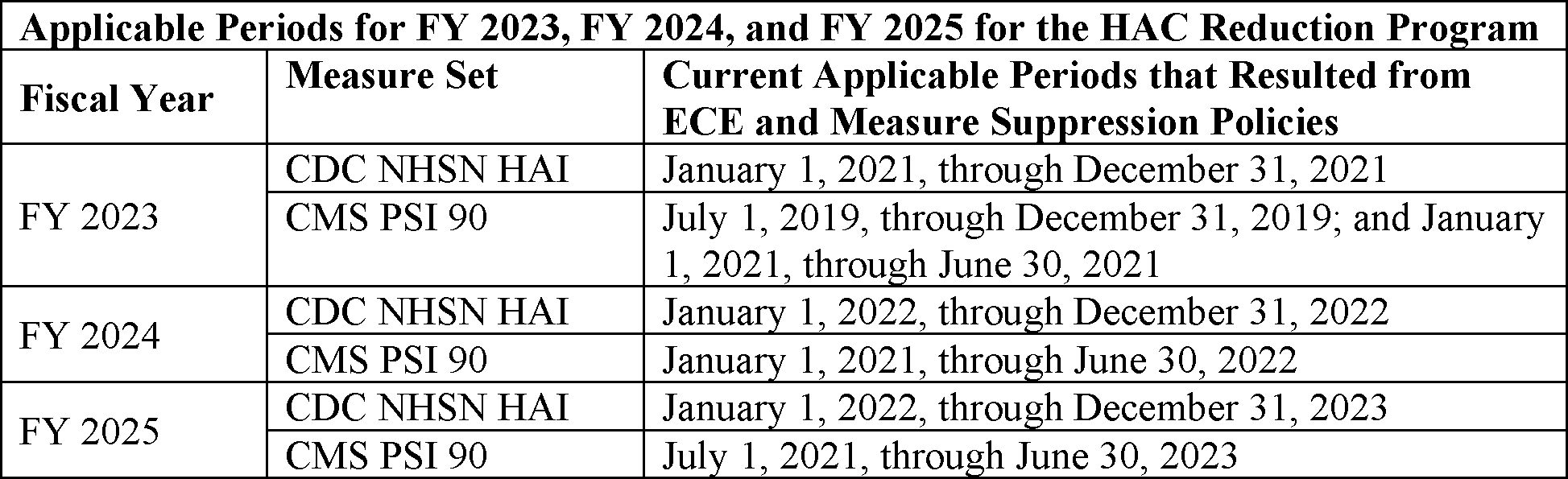 Although the FY 2023 performance period is July 1, 2018, through June 30, 2021, we note that first and second quarter data from CY 2020 is excluded from program calculations due to the nationwide ECE that was granted in response to the COVID-19 PHE. Taking into consideration the 30-day window to identify readmissions, the period for calculating DRG payments will be adjusted to July 1, 2018, through December 1, 2019, and then July 1, 2020, through June 30, 2021.