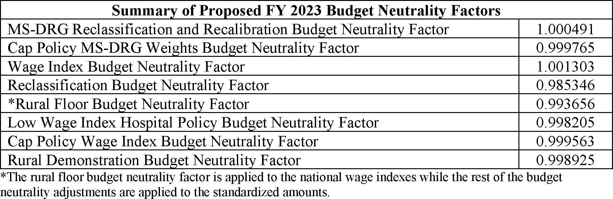 G. Application of the Rural Floor, Application of the State Frontier Floor, and Continuation of the Low Wage Index Hospital Policy, and Proposed Budget Neutrality Adjustment
