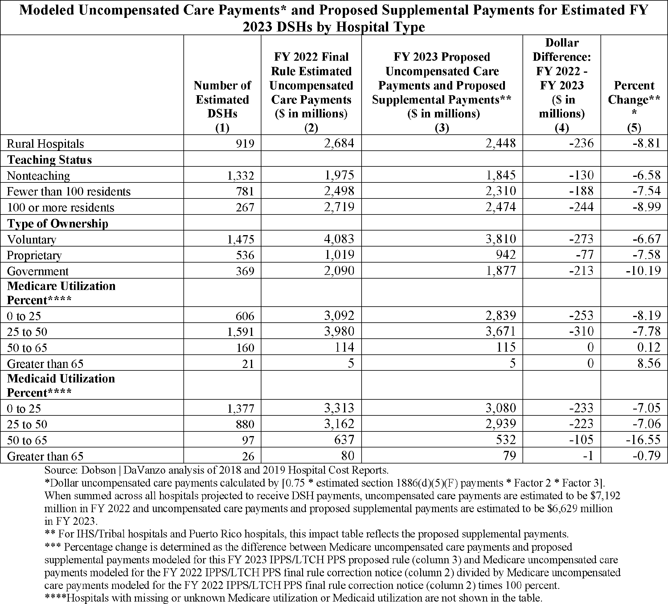 IV. Proposed Payment Adjustment for Medicare Disproportionate Share Hospitals (DSHs) for FY 2023 (§ 412.106)