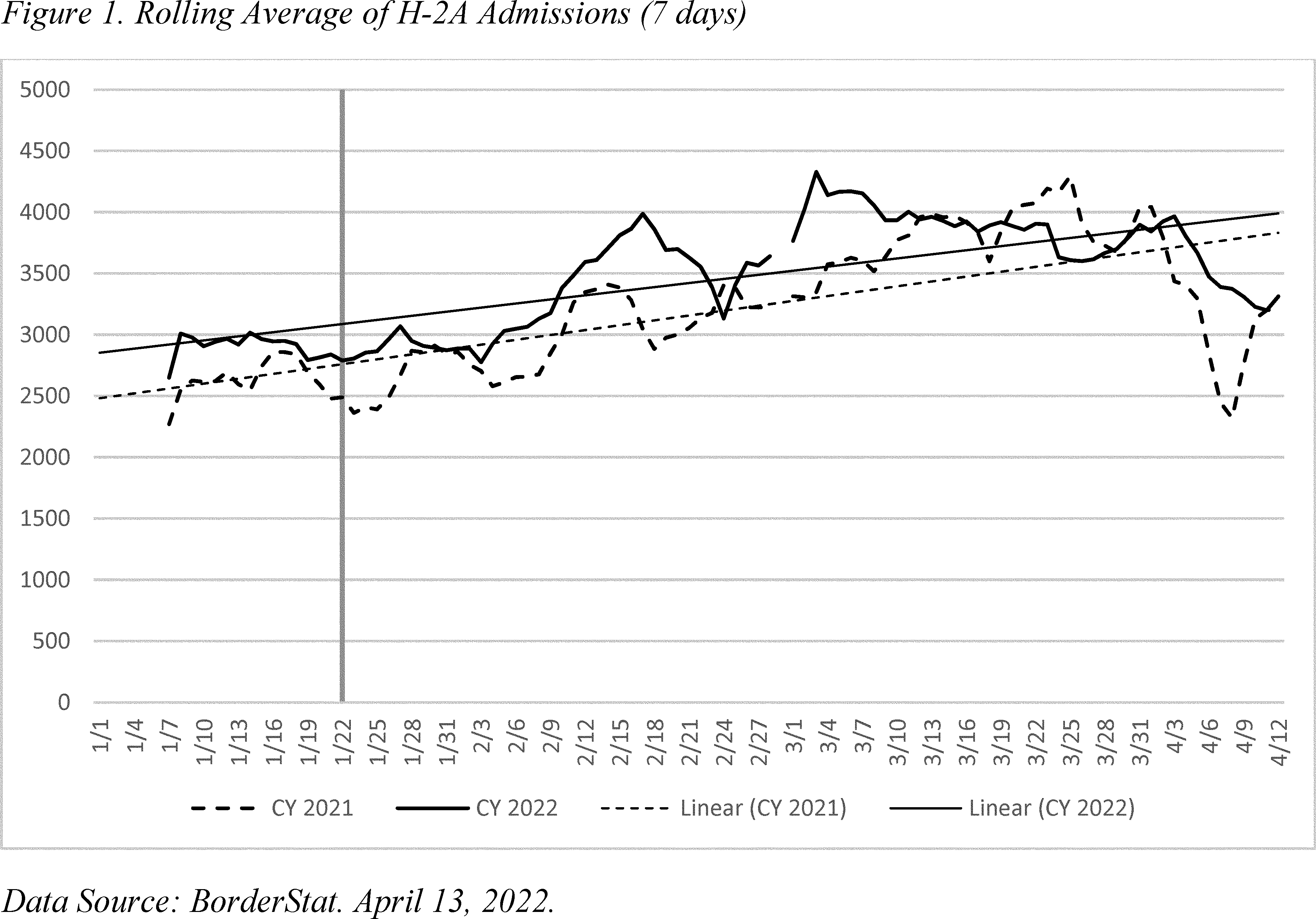 In fact, as stated above, H-2A admissions were generally higher between January 22, 2022 and March 31, 2022 when the COVID-19 vaccination requirement has been in place, as compared to H-2A admission numbers for the same time in 2021.