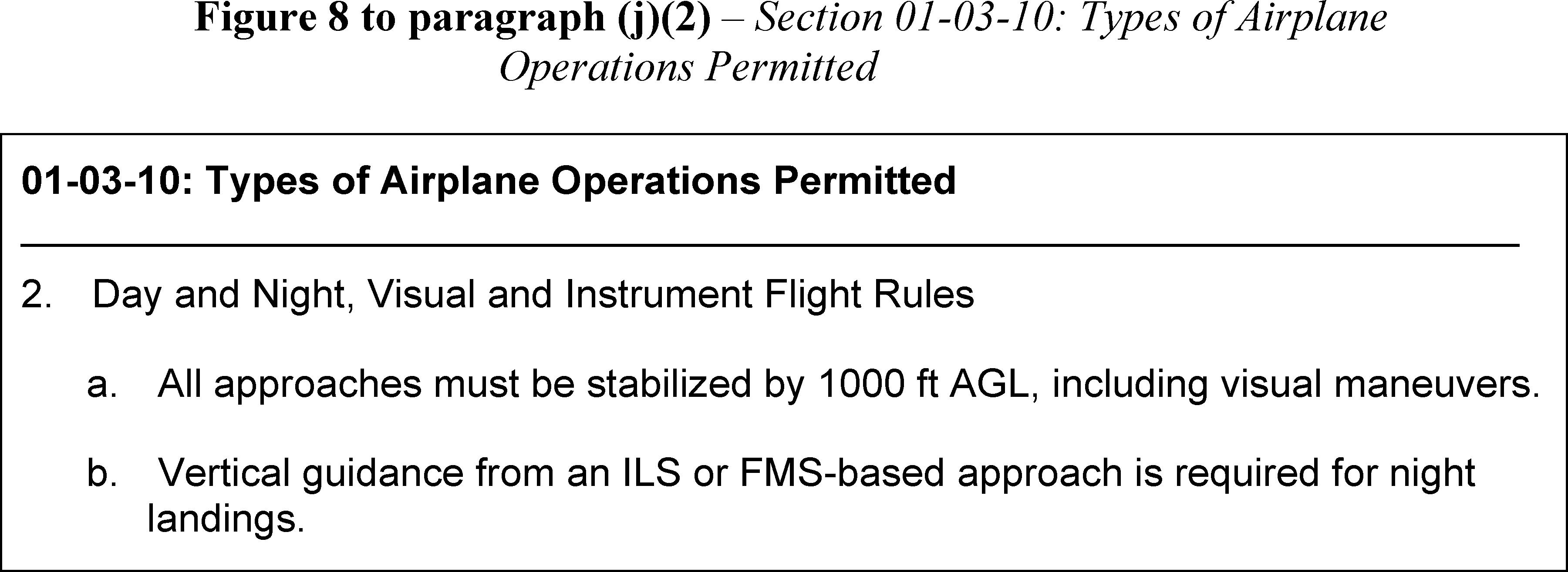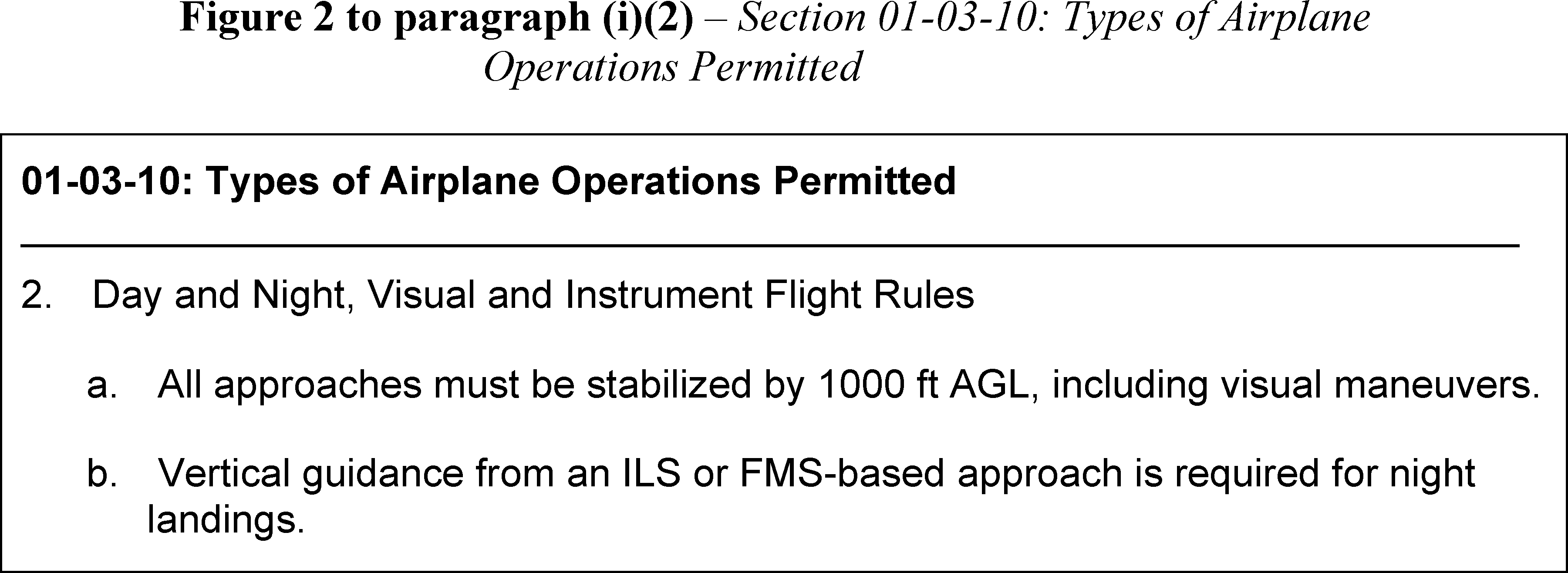 “Day and Night, Visual and Instrument Flight Rules” of Section 01-03-10: “Types of Airplane Operations Permitted,” of Chapter 01, “LIMITATIONS.”