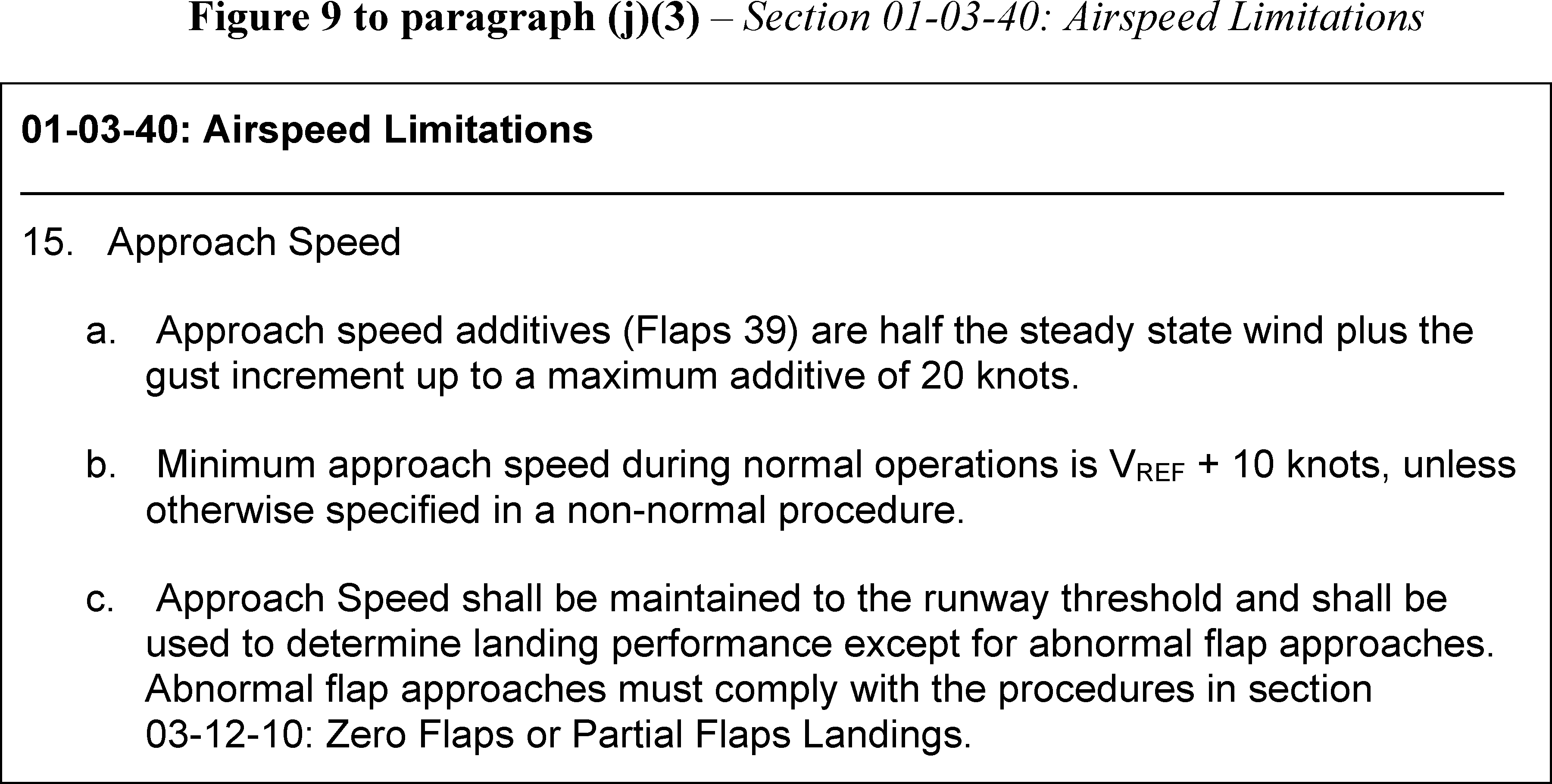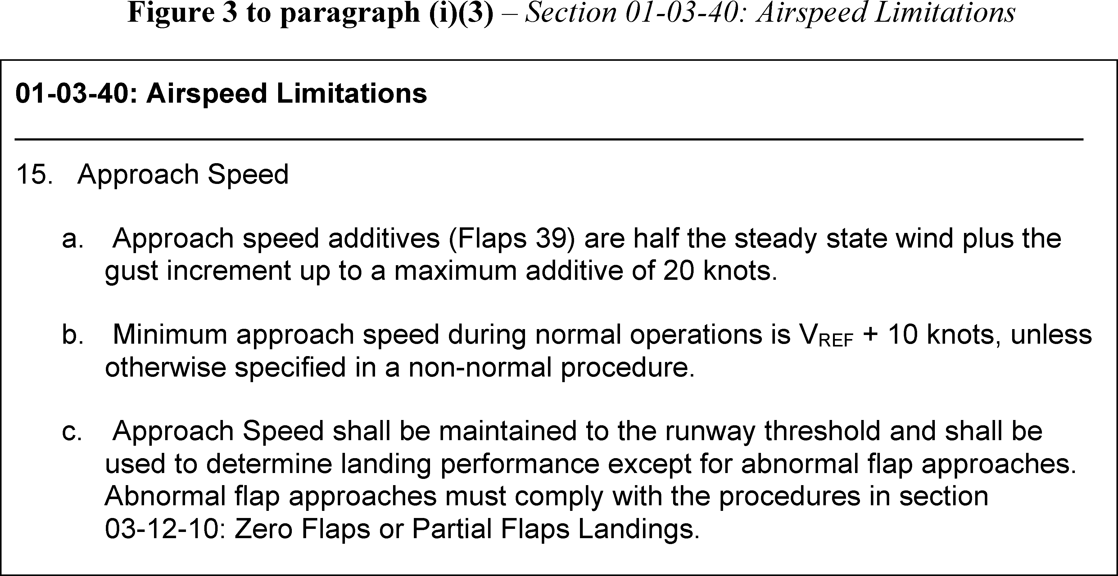 Step 15., “Approach Speed,” of Section 01-03-40, “Airspeed Limitations,” of Chapter 01, “LIMITATIONS.”