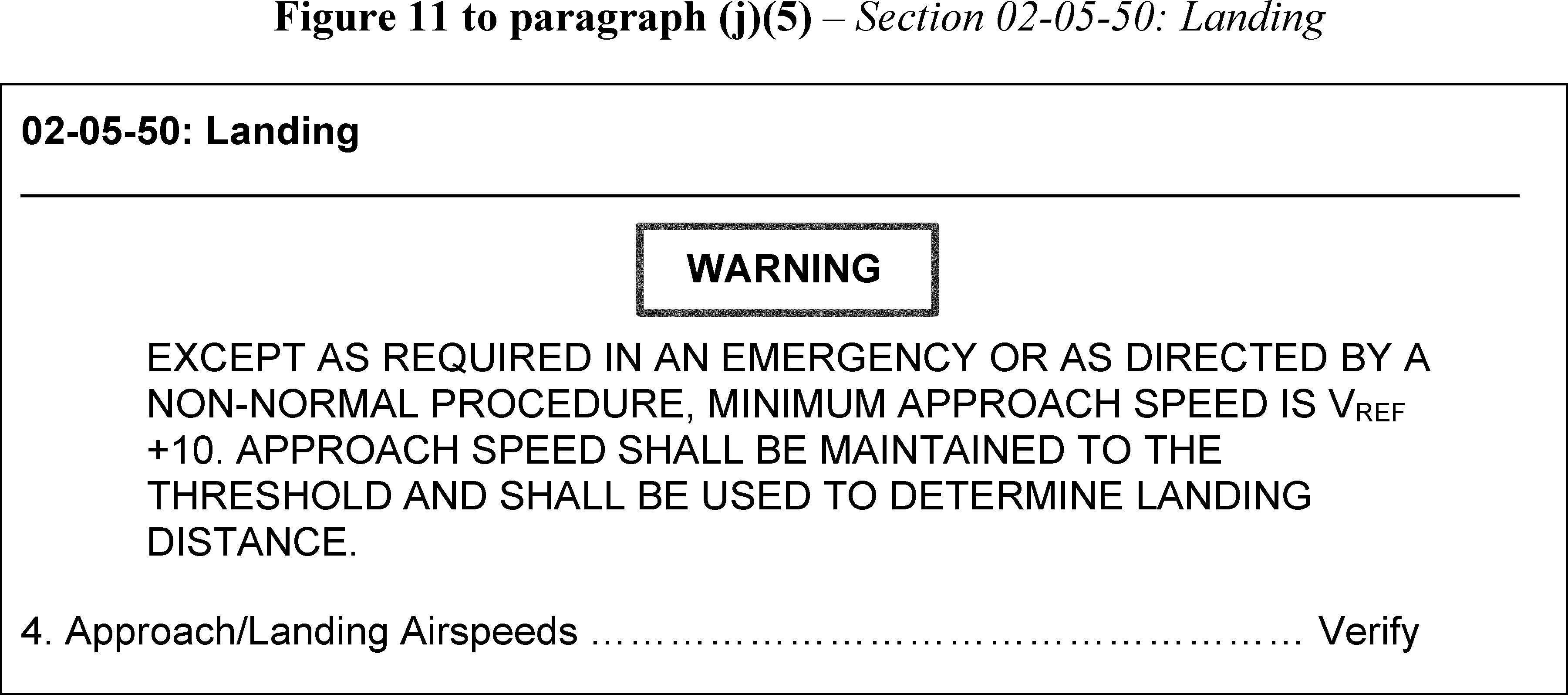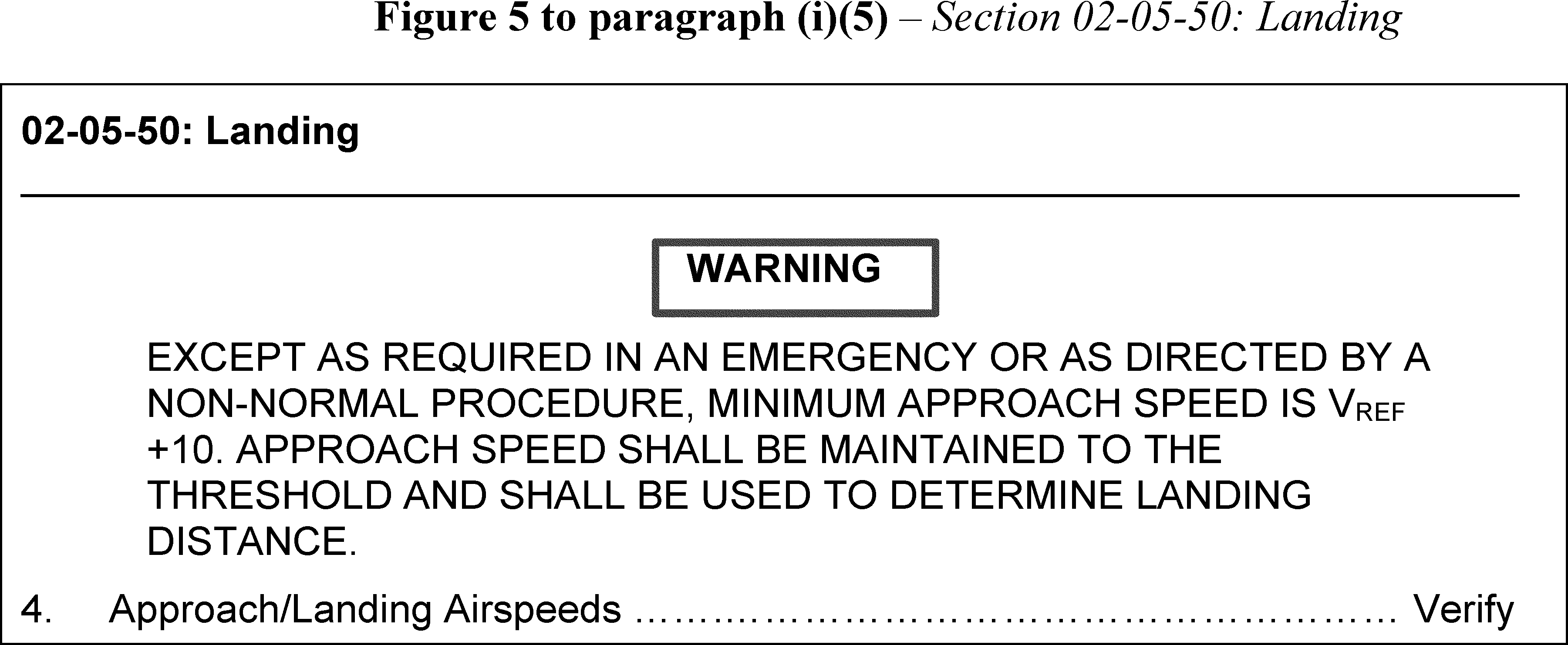 “WARNING” information preceding “Approach/Landing Airspeeds” of Section 02-05-50: “Landing,” of Chapter 02, “NORMAL OPERATIONS.”