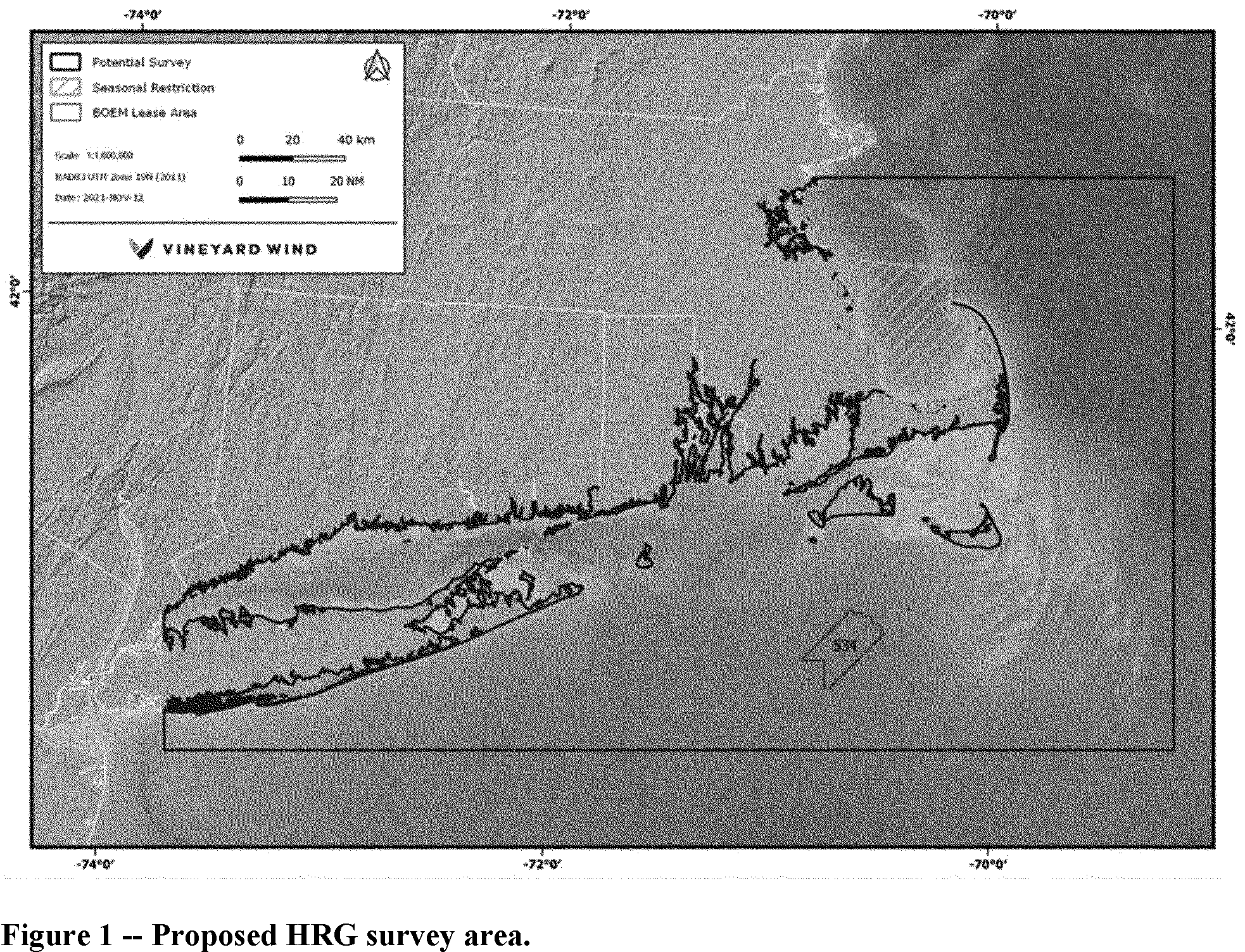 OECC route—One or more potential OECC routes through Federal and State waters located within the Potential Survey Area from northern Massachusetts to Long Island as shown in Figure 1.