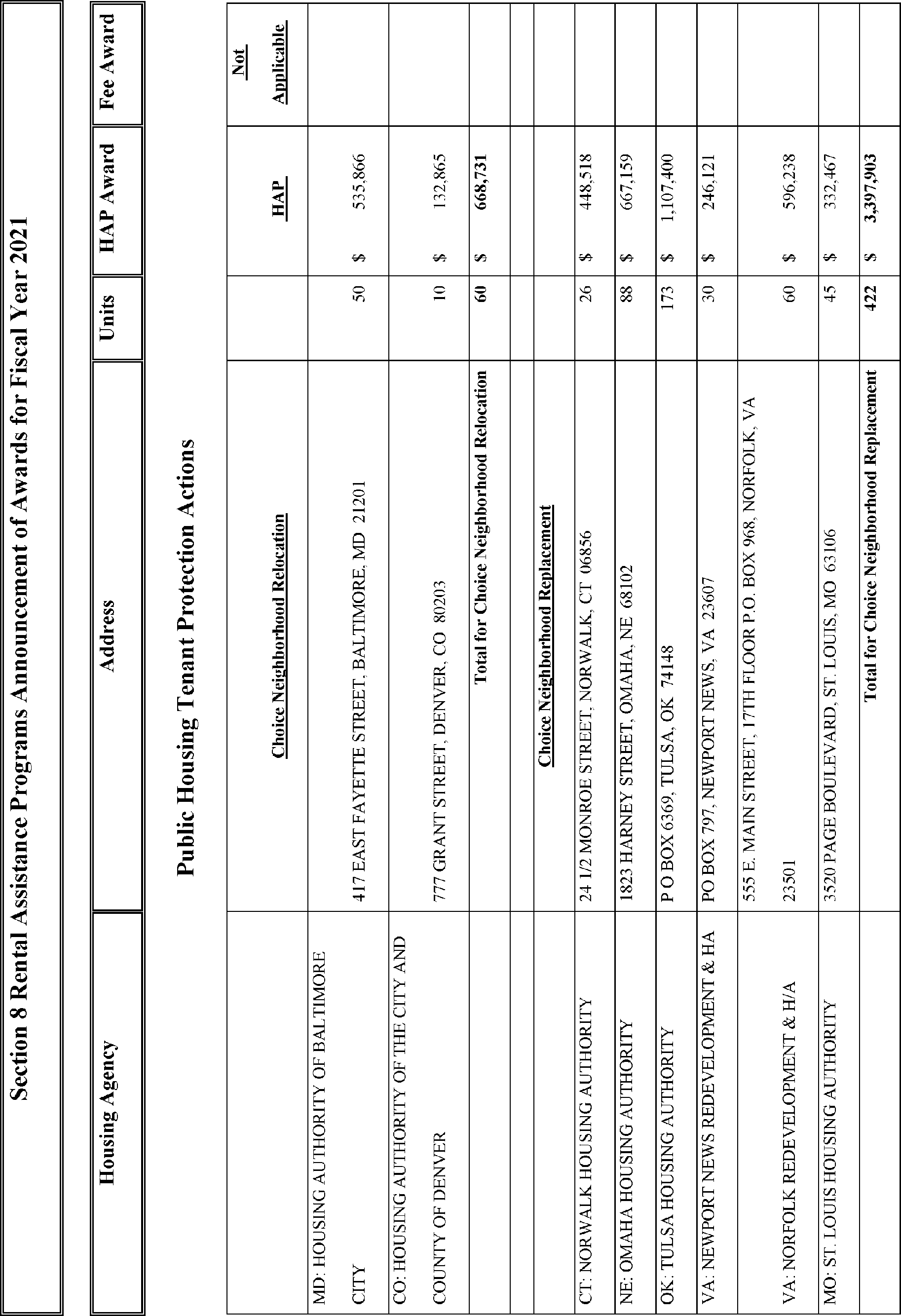 “Announcement of Tenant Protection Voucher Funding Awards for Fiscal Year 2021 for the Housing Choice Voucher Program,” thefederalregister.org (June 3, 2022), https://thefederalregister.org/documents/2022-11893/announcement-of-tenant-protection-voucher-funding-awards-for-fiscal-year-2021-for-the-housing-choice-voucher-program.