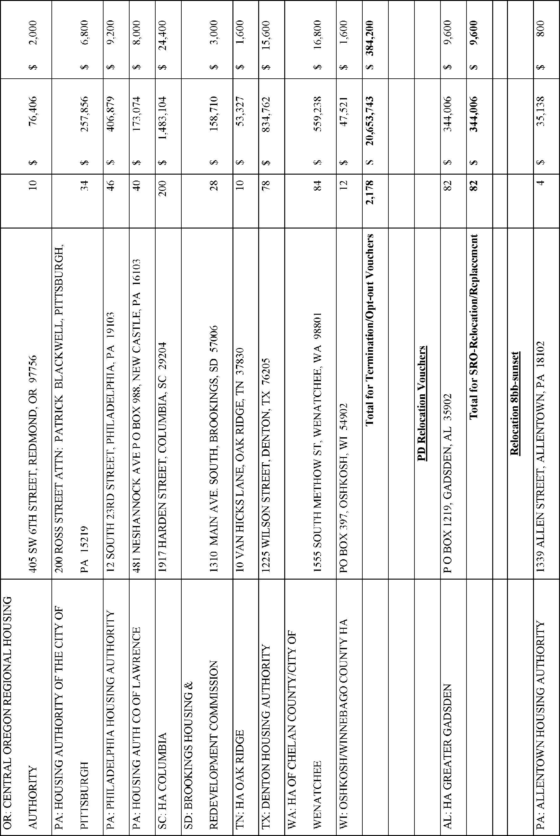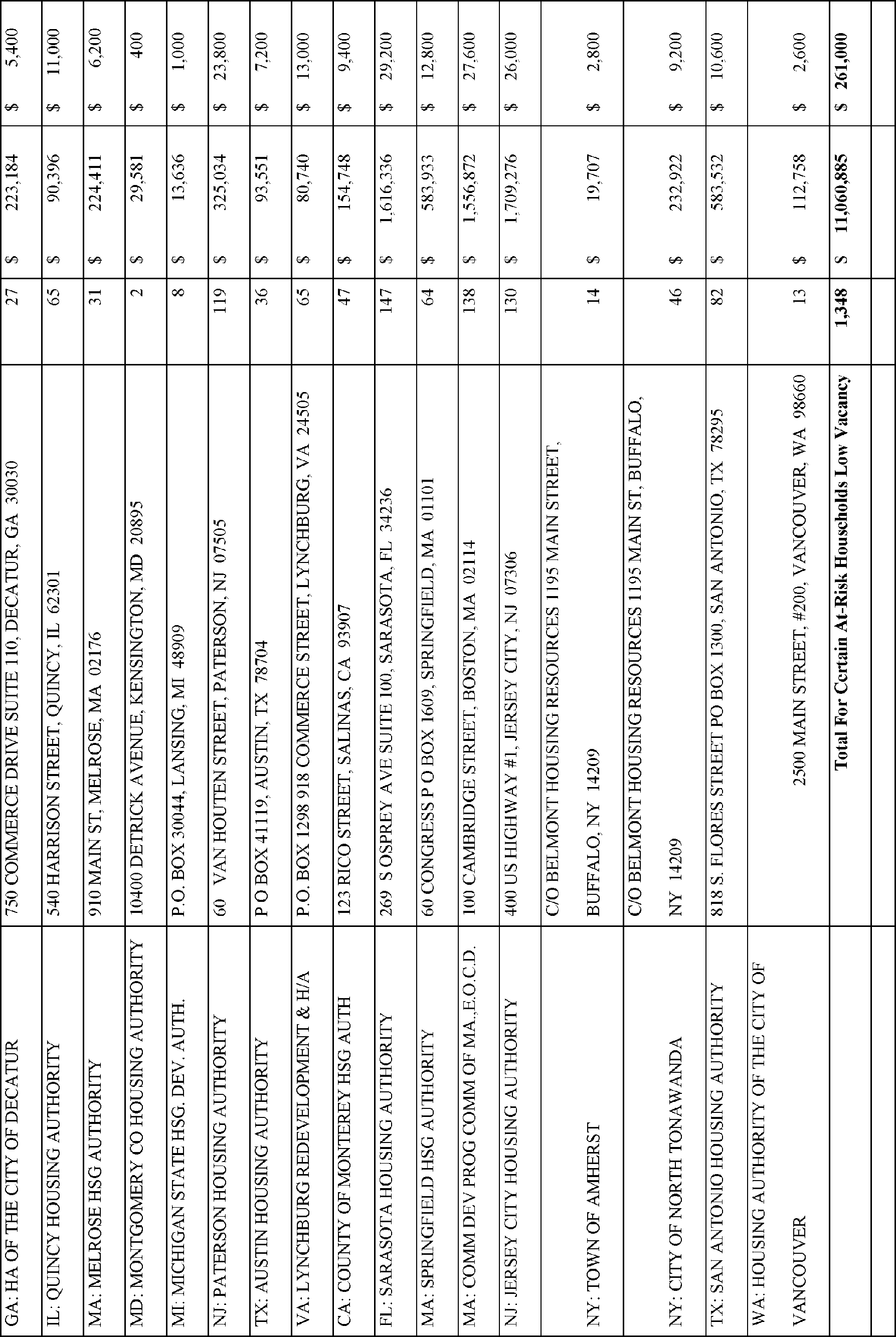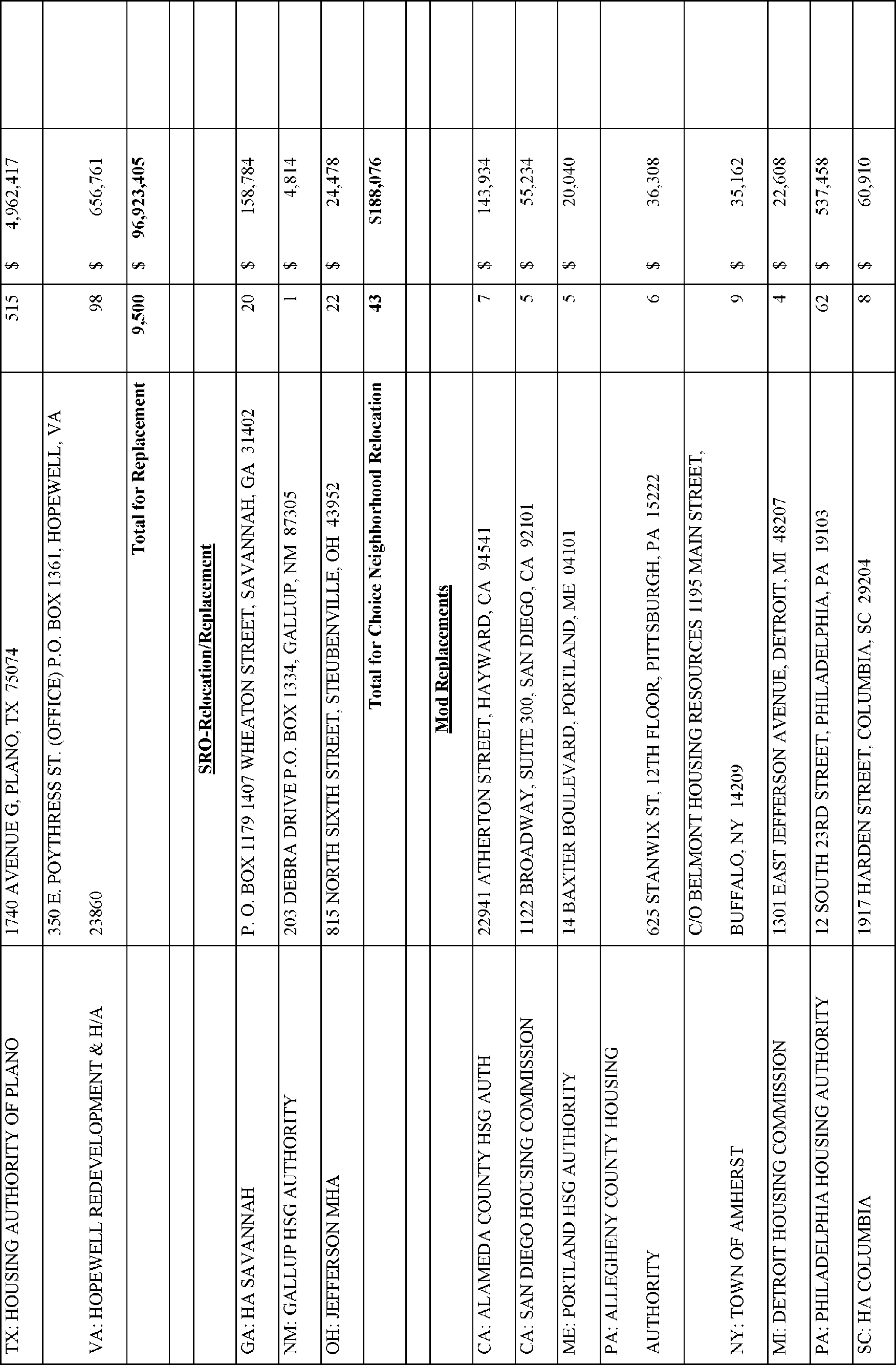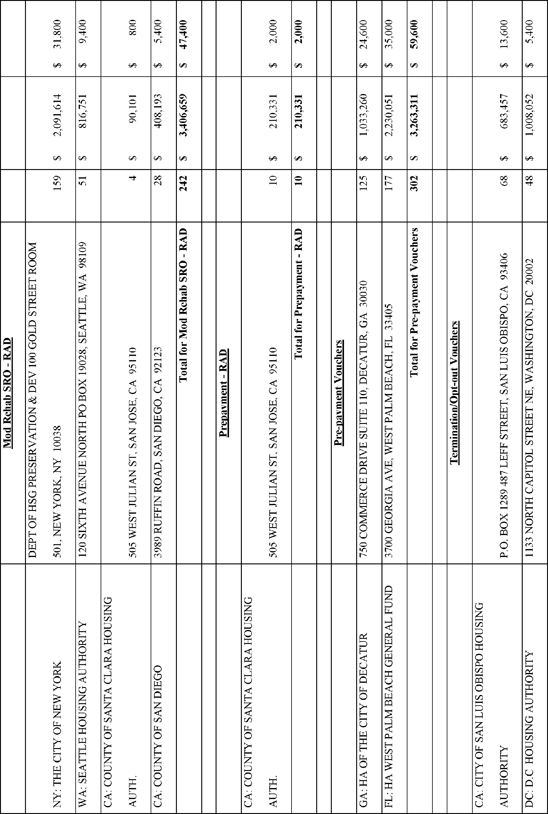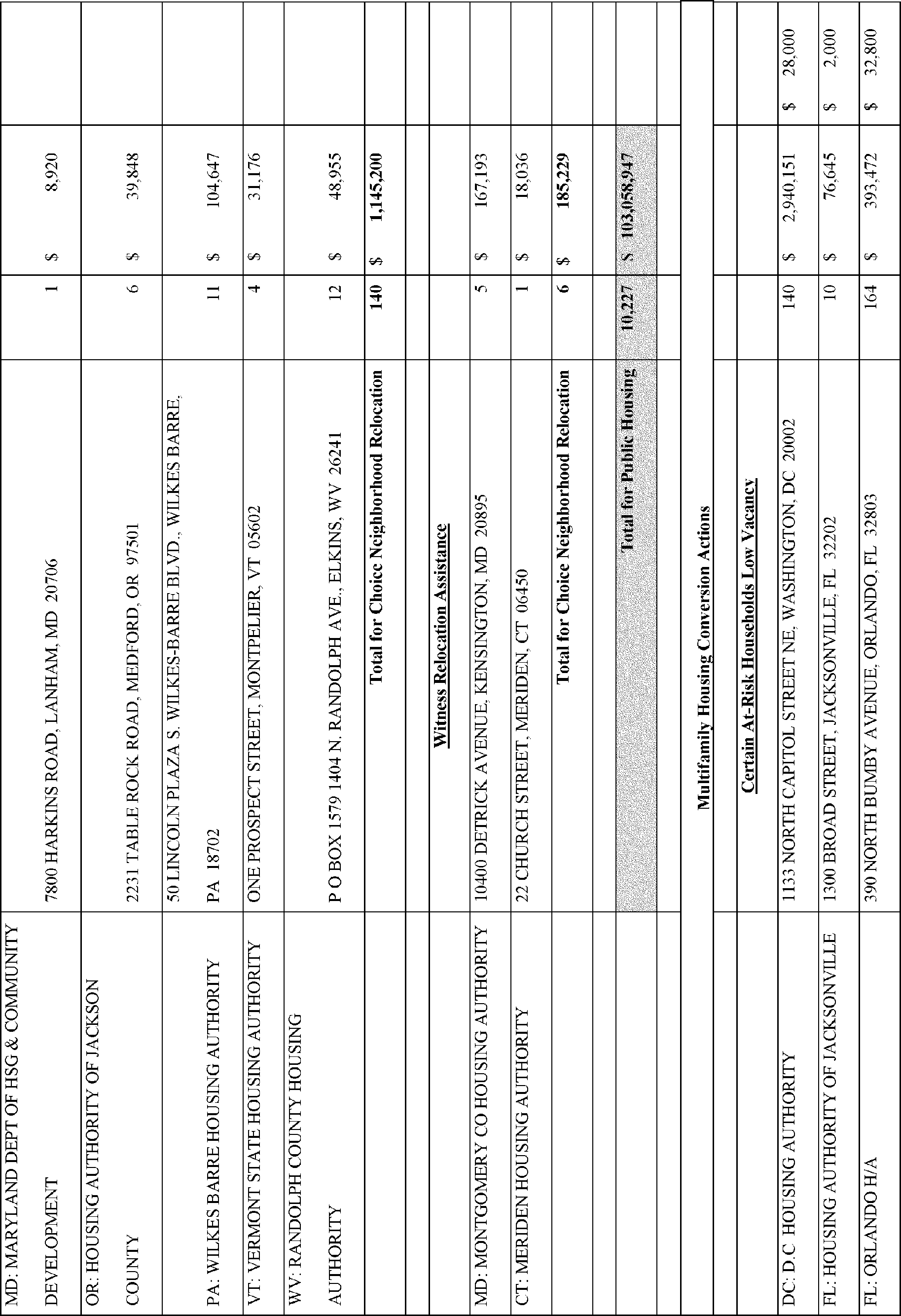 In accordance with Section 102(a)(4)(C) of the Department of Housing and Urban Development Reform Act of 1989 (103 Stat. 1987, 42 U.S.C. 3545), the Department is publishing the names, addresses of awardees, and their award amounts in Appendix A. The awardees are listed alphabetically by State for each type of TPV award.