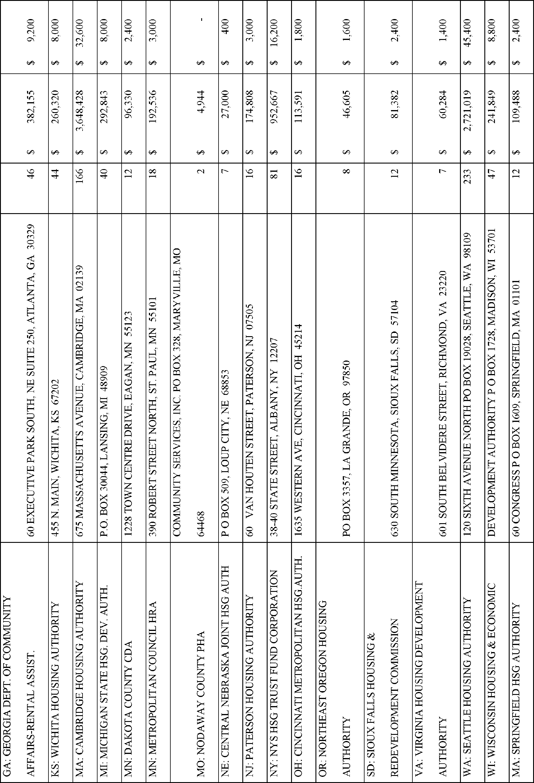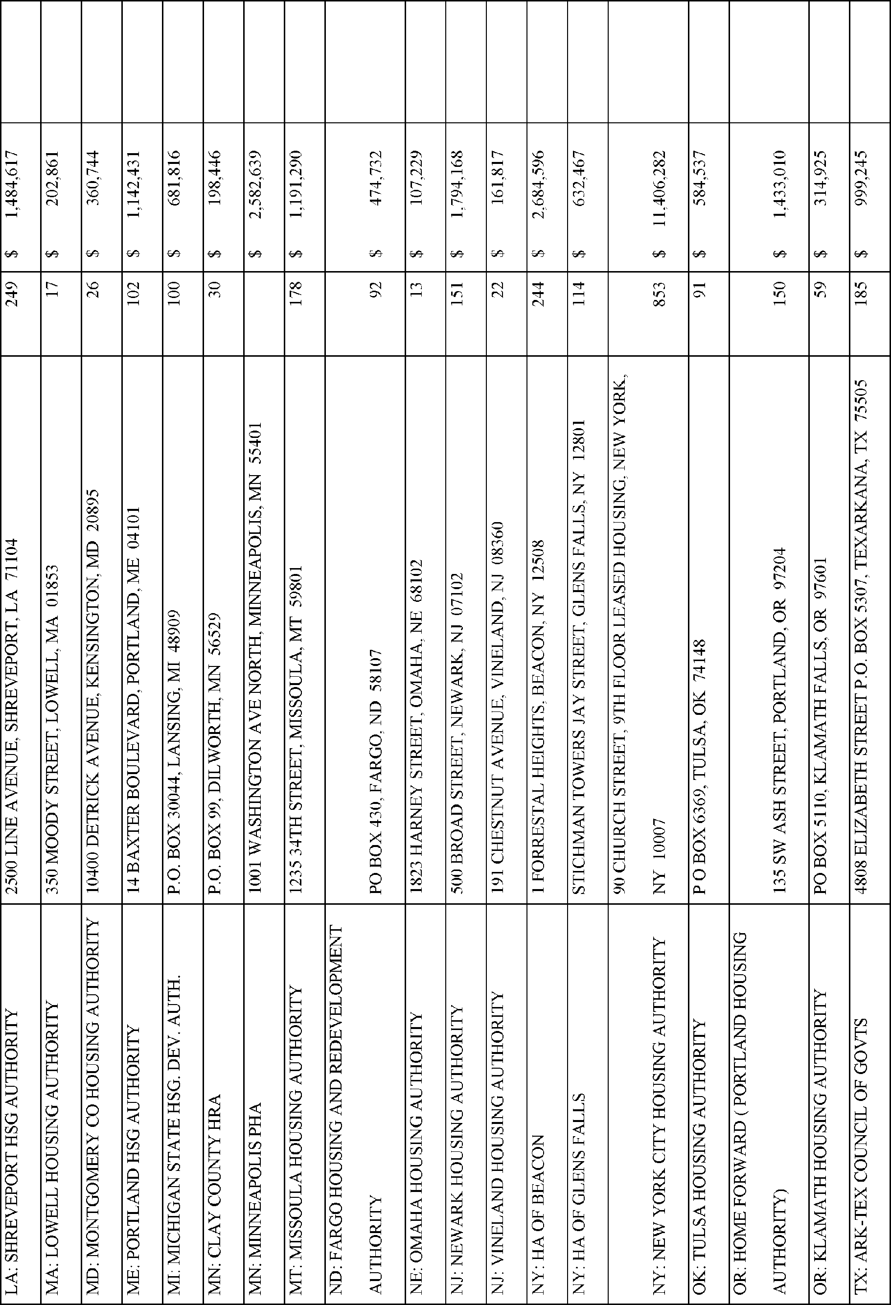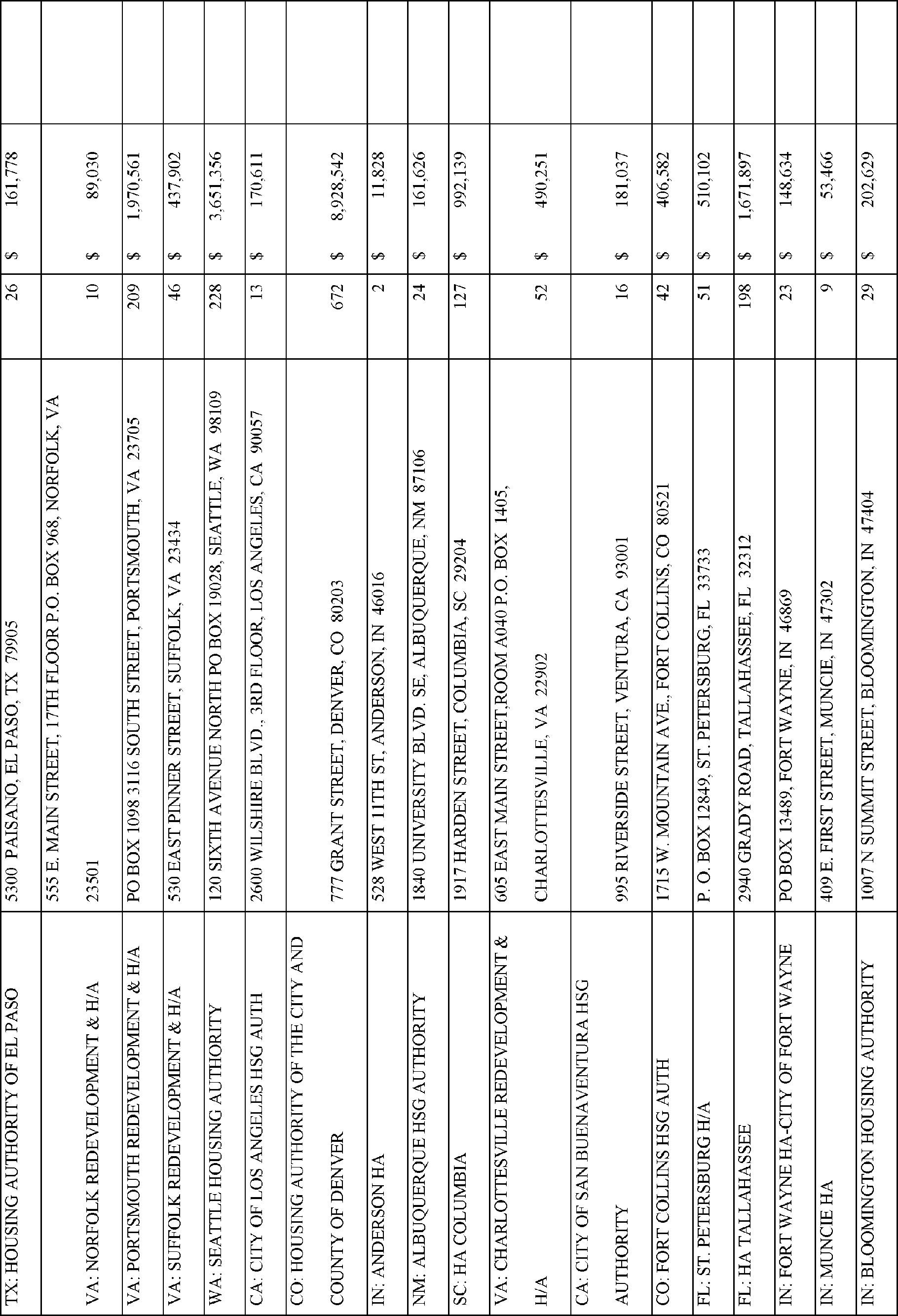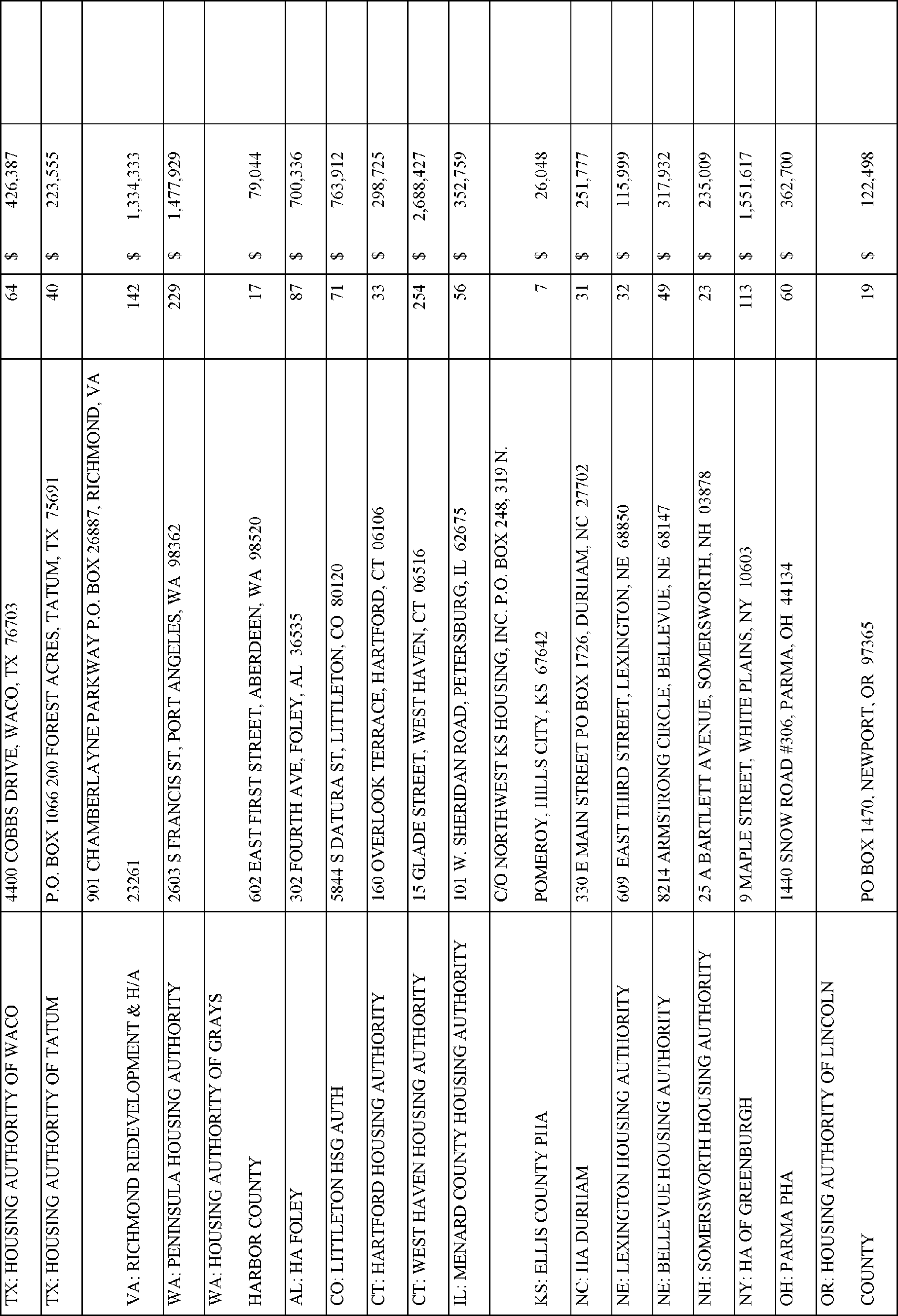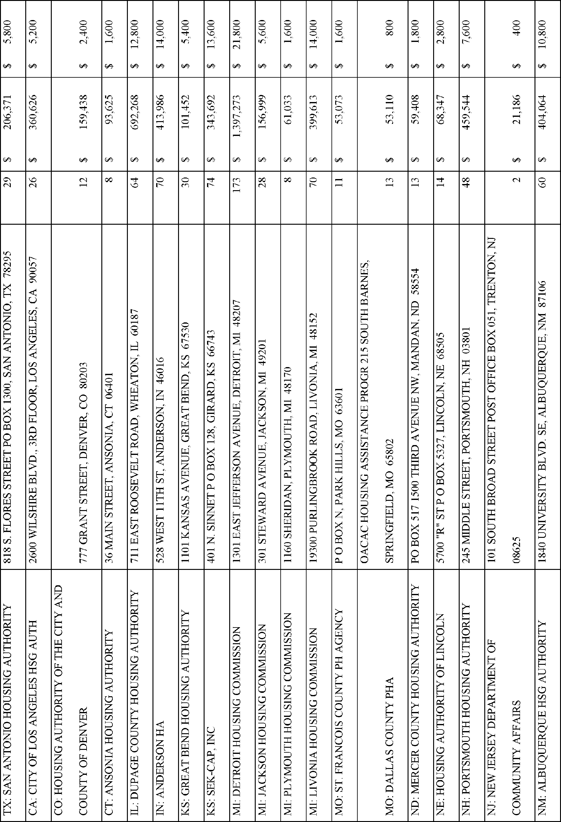 In accordance with Section 102(a)(4)(C) of the Department of Housing and Urban Development Reform Act of 1989 (103 Stat. 1987, 42 U.S.C. 3545), the Department is publishing the names, addresses of awardees, and their award amounts in Appendix A. The awardees are listed alphabetically by State for each type of TPV award.