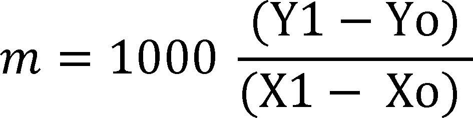 ii) This slope (m) will be negative in value. The tire's wear rate is defined as the slope (m) expressed in mils per 1,000 miles.