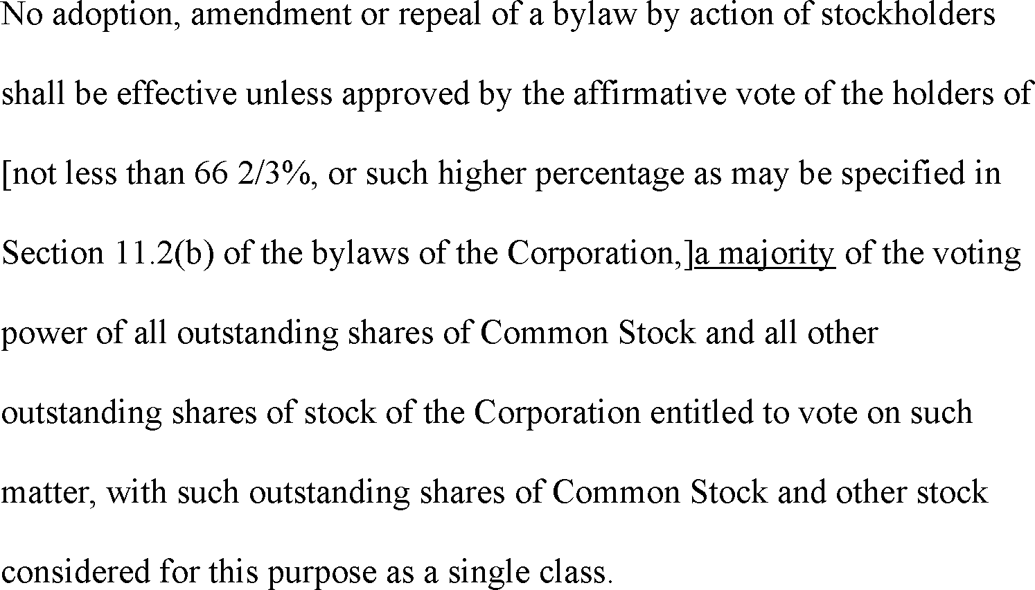 - Clause (A) would be deleted from the second sentence of Article X. The last sentence of the provision also would be deleted, since a vote of stockholders would no longer be required under the article as a result of the removal of Clause (A). The amended article would read as follows (proposed deletion bracketed):