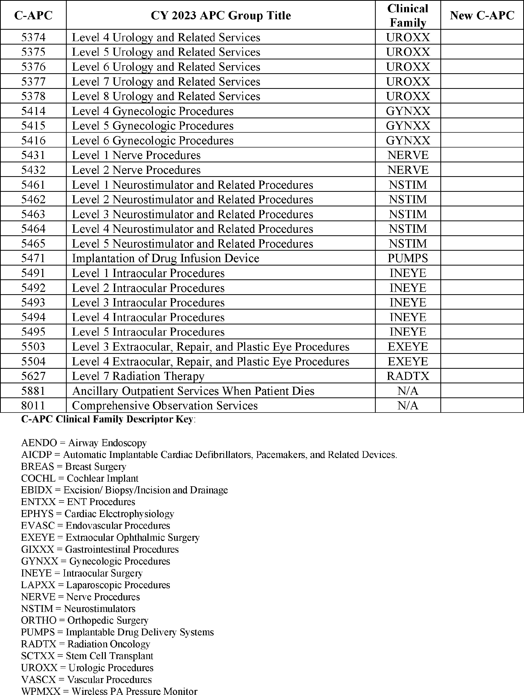 E. OPPS APC-Specific Policies