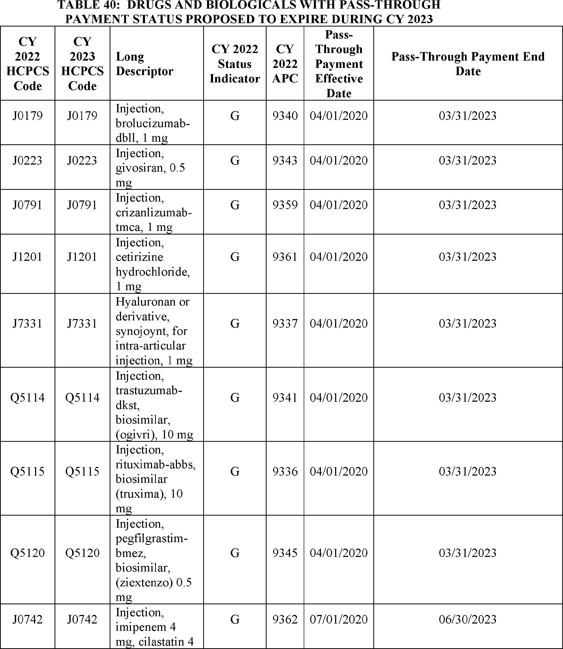 B. Proposed Estimate of Pass-Through Spending for CY 2023