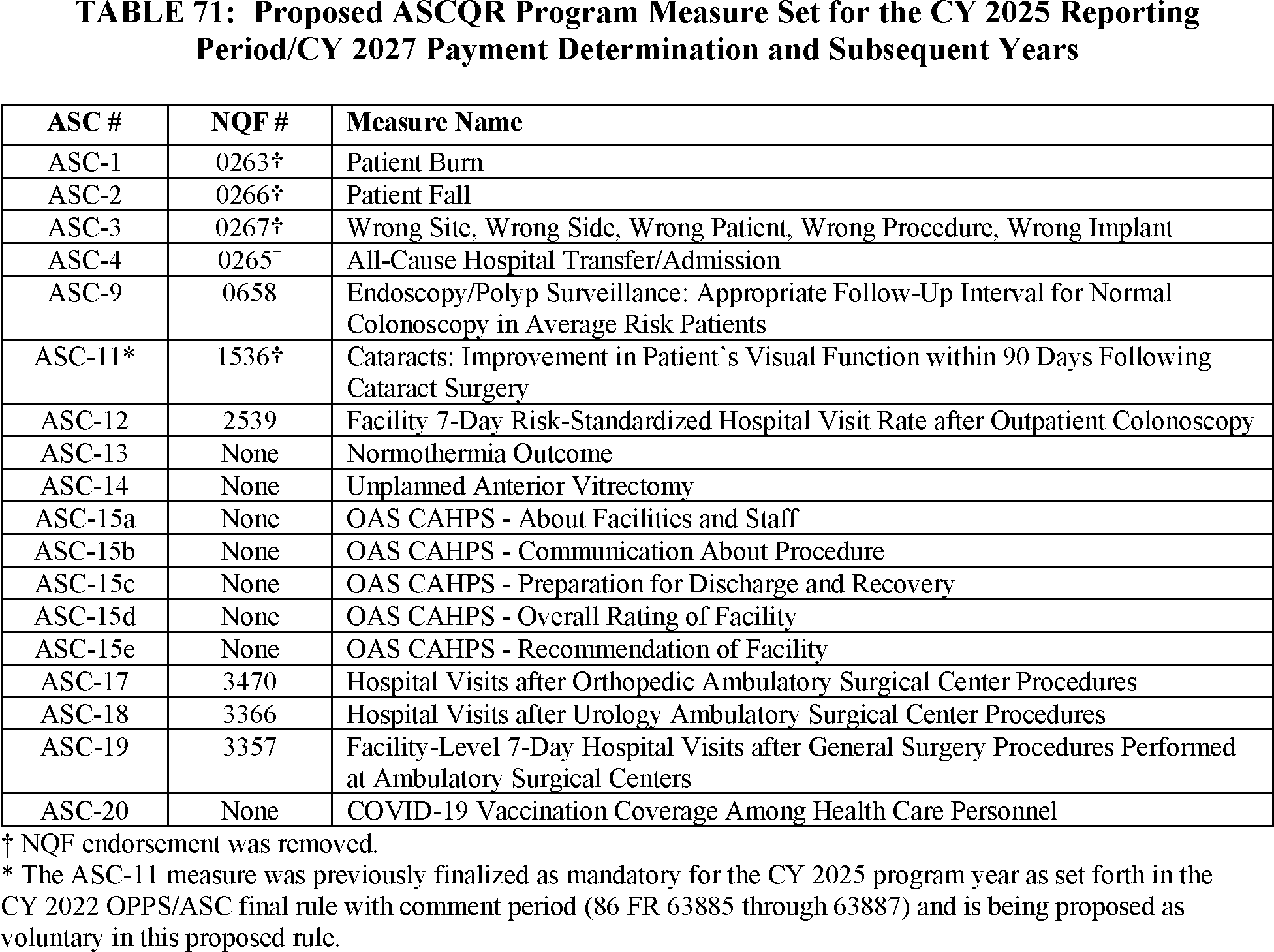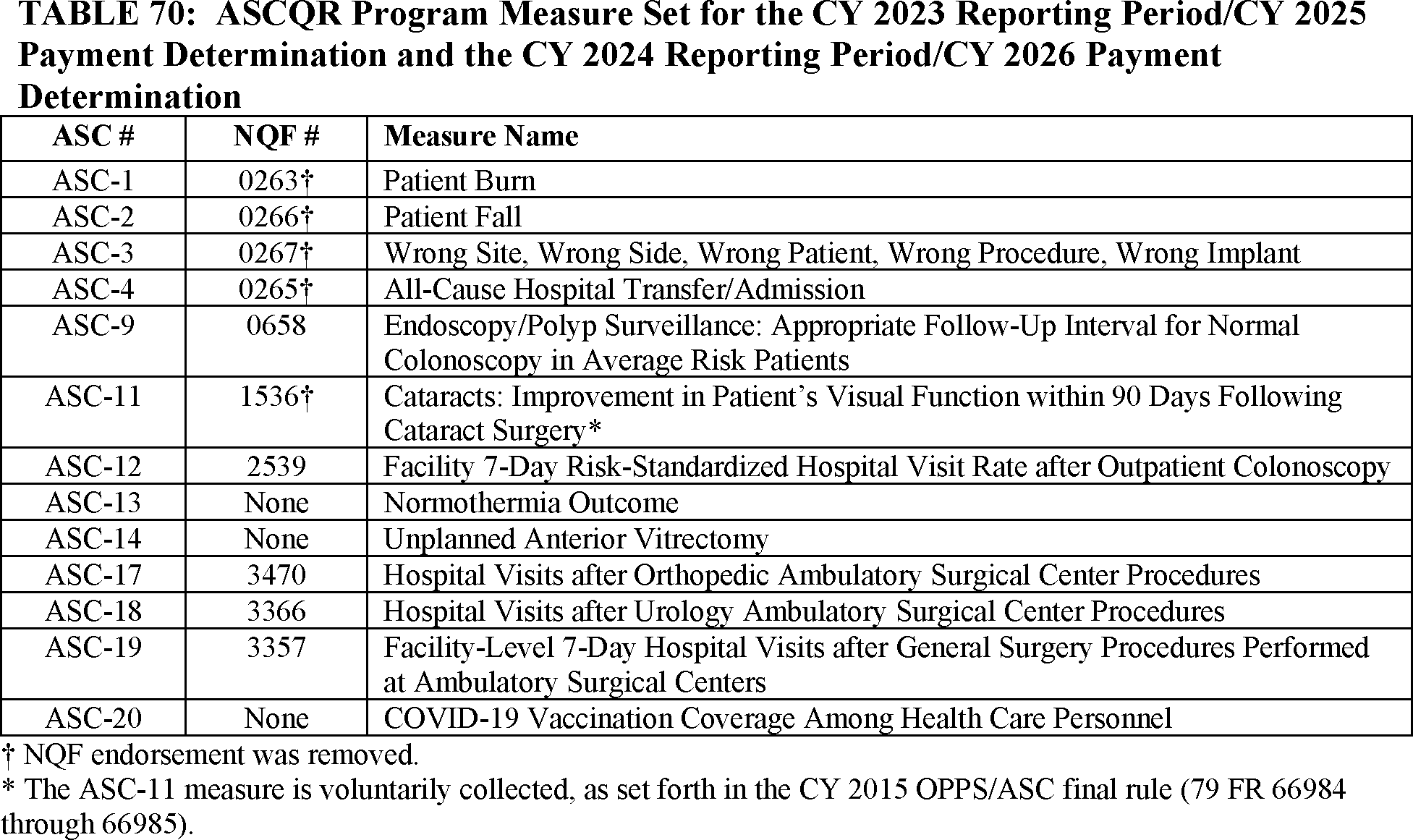 Ambulatory Surgical Center Quality Reporting (ASCQR) Program Measures, contact Cyra Duncan via email