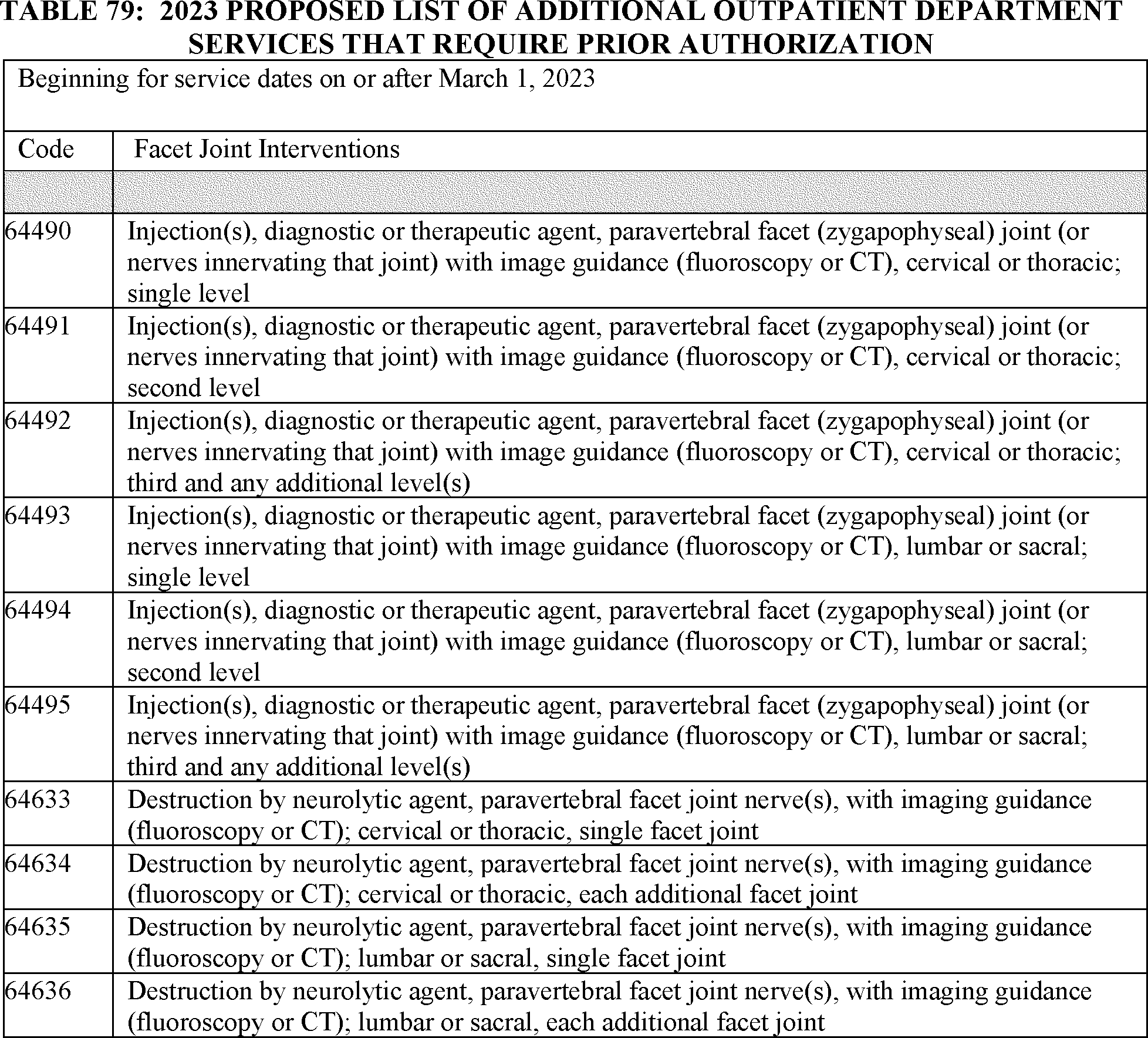 CPT codes 63685 (Insertion or replacement of spinal neurostimulator pulse generator or receiver) and 63688 (Revision or removal of implanted spinal neurostimulator pulse generator or receiver) were temporarily removed from the list of OPD services that require prior authorization, as finalized in the CY 2021 OPPS/ASC final rule with comment period.