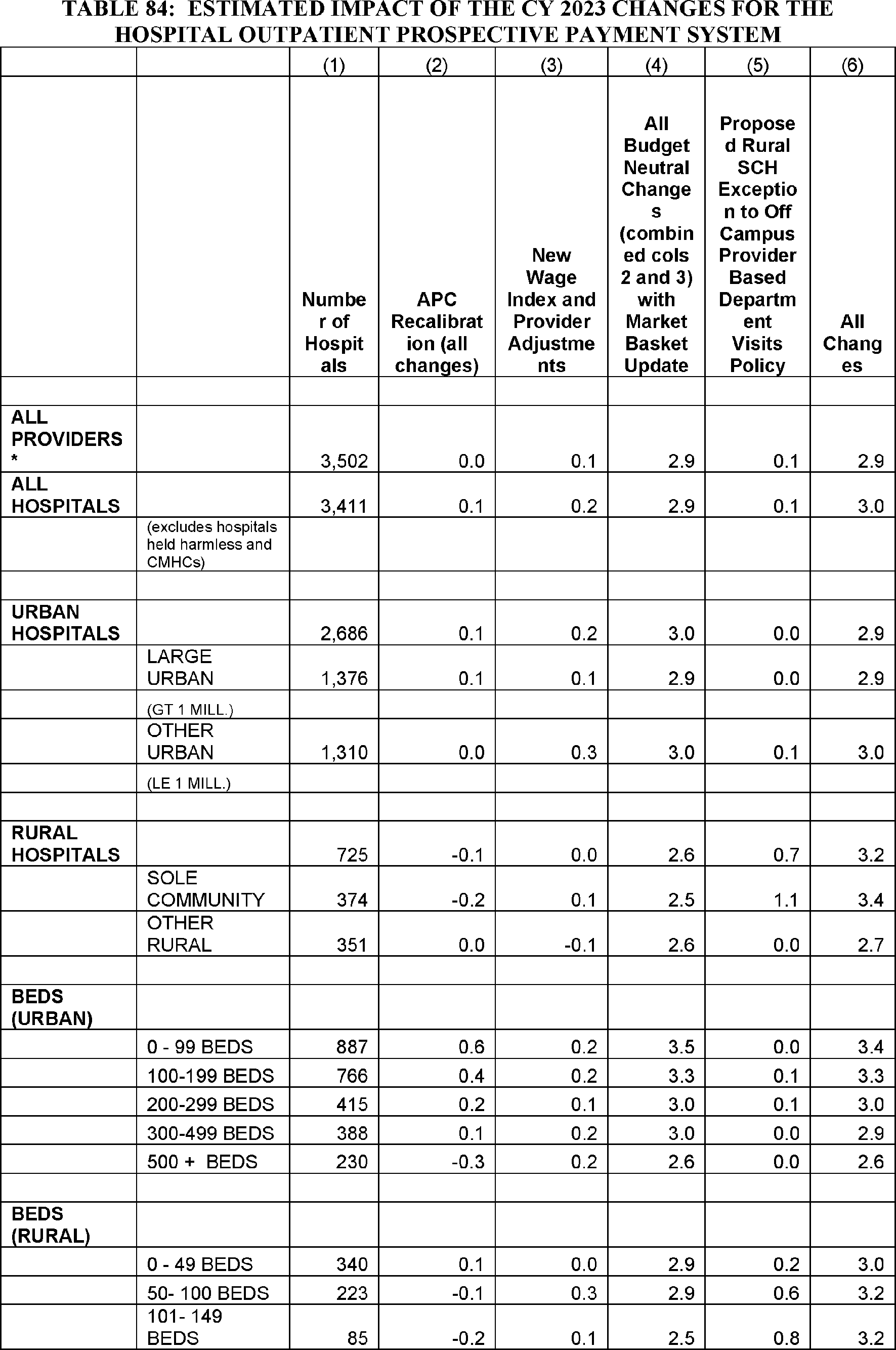 Estimated average facility payment, estimated outpatient fee schedule payment, estimated average skilled nursing facility payment rates by State, presence or loss of swing bed payments, and continuance or cessation of 340B eligibility.