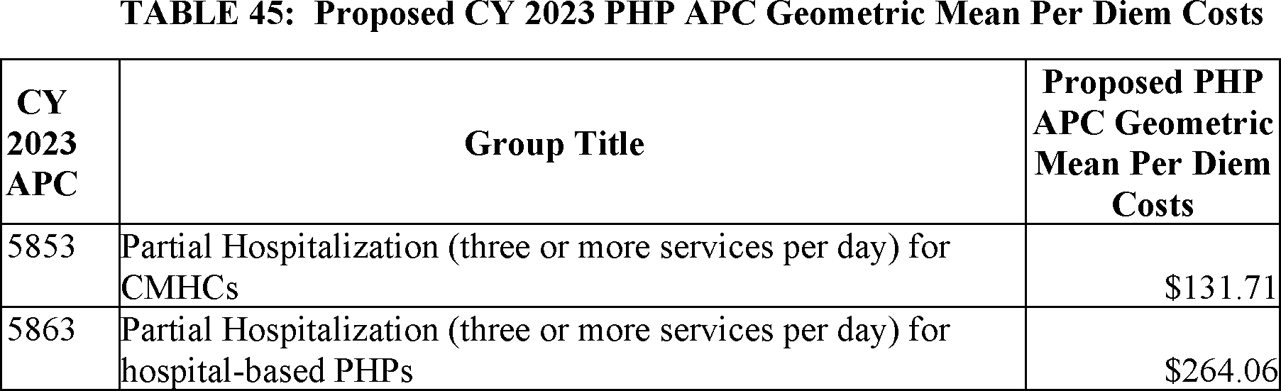 VIII. Proposed Payment for Partial Hospitalization Services