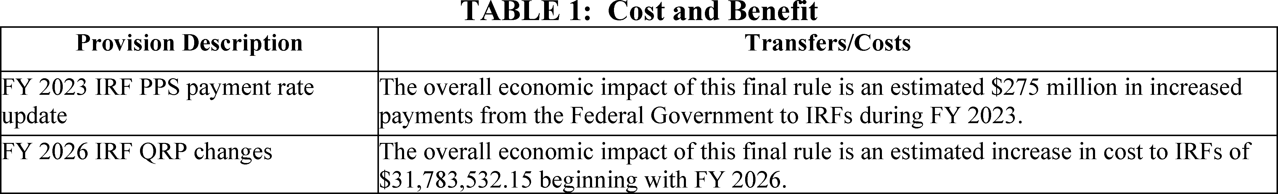 “Medicare Program; Inpatient Rehabilitation Facility Prospective Payment System for Federal Fiscal Year 2023 and Updates to the IRF Quality Reporting Program,” thefederalregister.org (August 1, 2022), https://thefederalregister.org/documents/2022-16225/medicare-program-inpatient-rehabilitation-facility-prospective-payment-system-for-federal-fiscal-year-2023-and-updates-t.