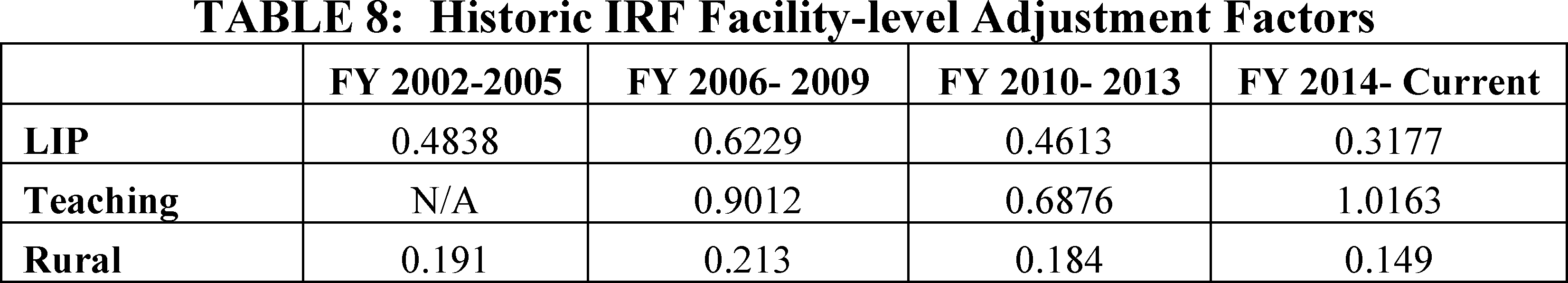 We applied the relative weighting factors to the standard payment conversion factor to compute the unadjusted prospective payment rates under the IRF PPS from FYs 2002 through 2005. Within the structure of the payment system, we then made adjustments to account for interrupted stays, transfers, short stays, and deaths. Finally, we applied the applicable adjustments to account for geographic variations in wages (wage index), the percentage of low-income patients, location in a rural area (if applicable), and outlier payments (if applicable) to the IRFs' unadjusted prospective payment rates.