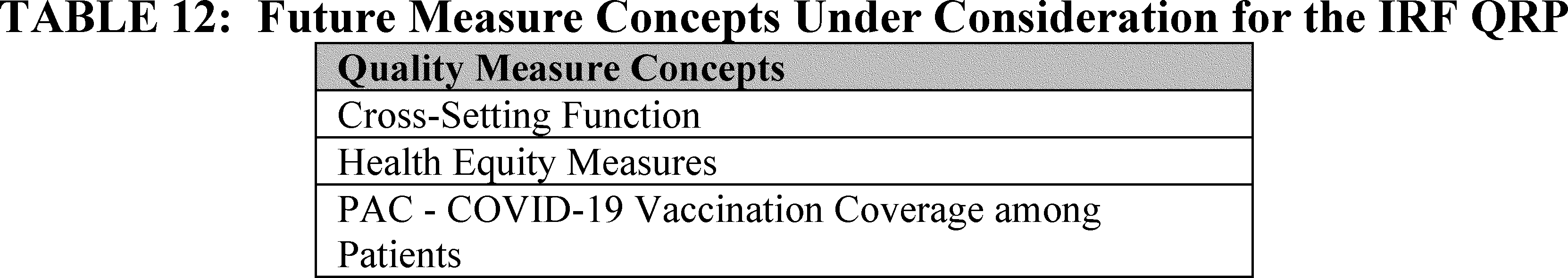 We also proposed updates to the IRF QRP and requested information in section VII. of the proposed rule as follows: