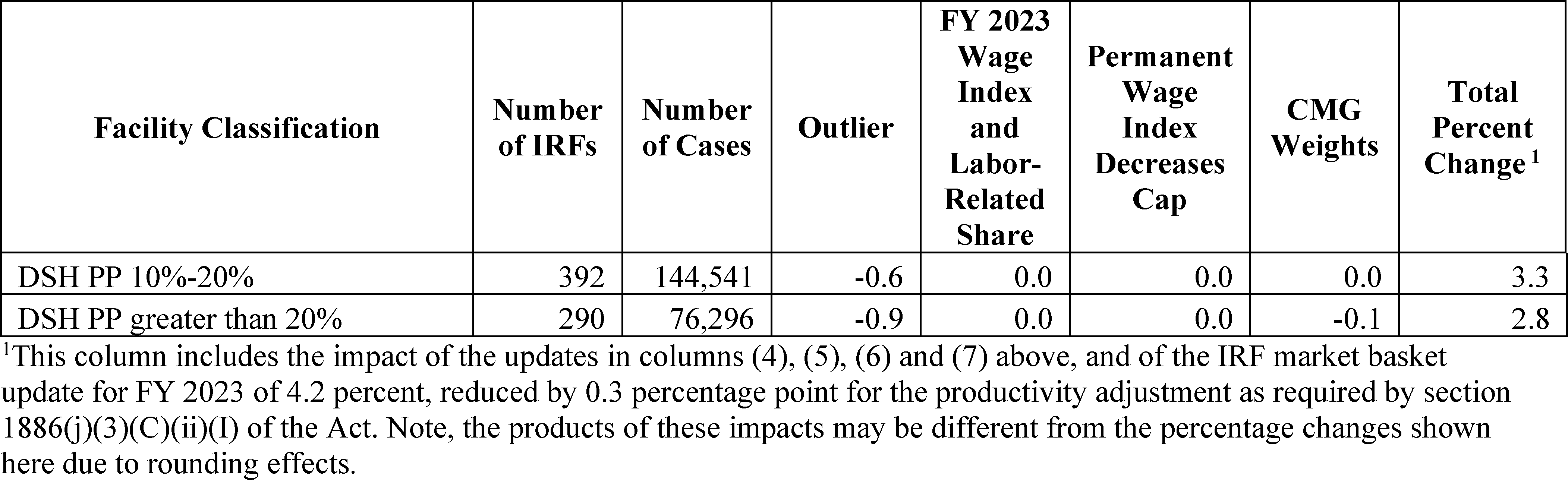 The proposed policy changes and updates to the IRF prospective payment rates for FY 2023 are as follows: