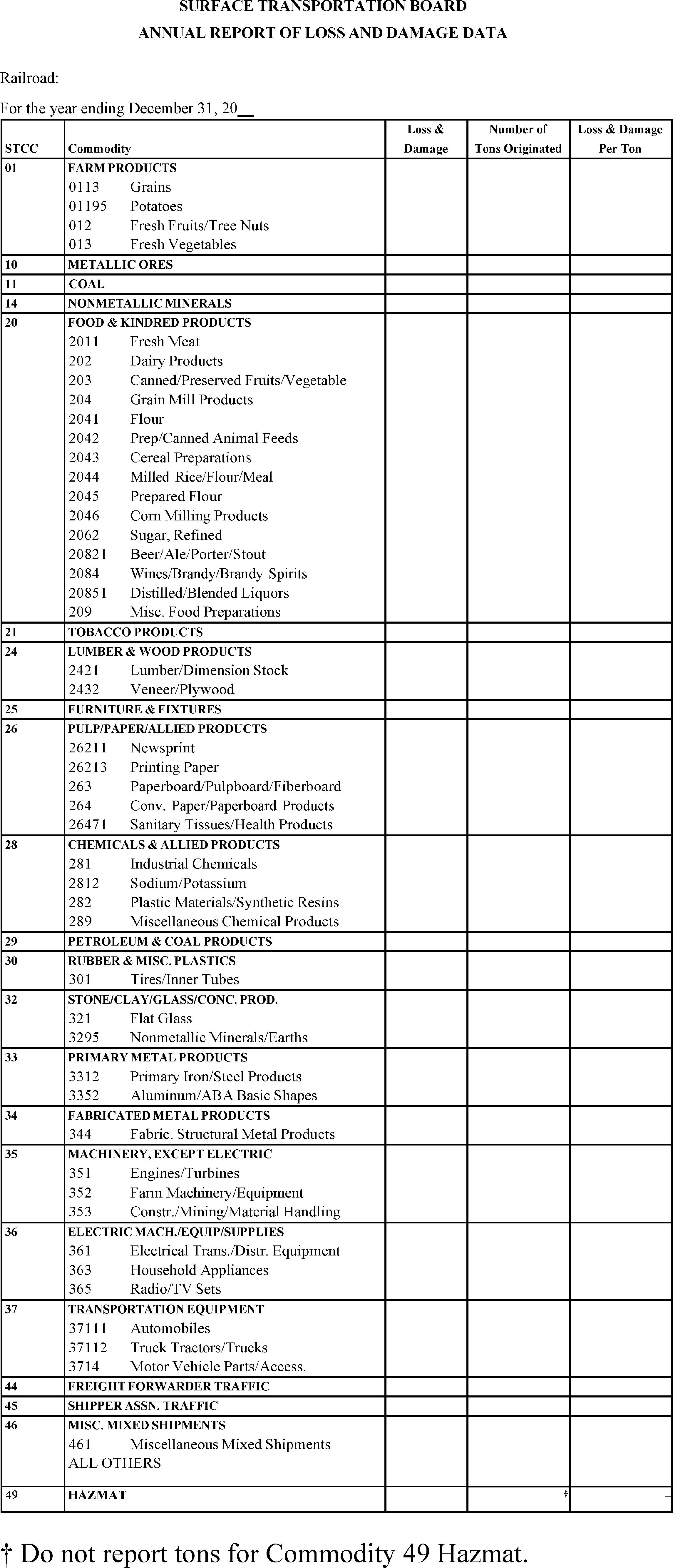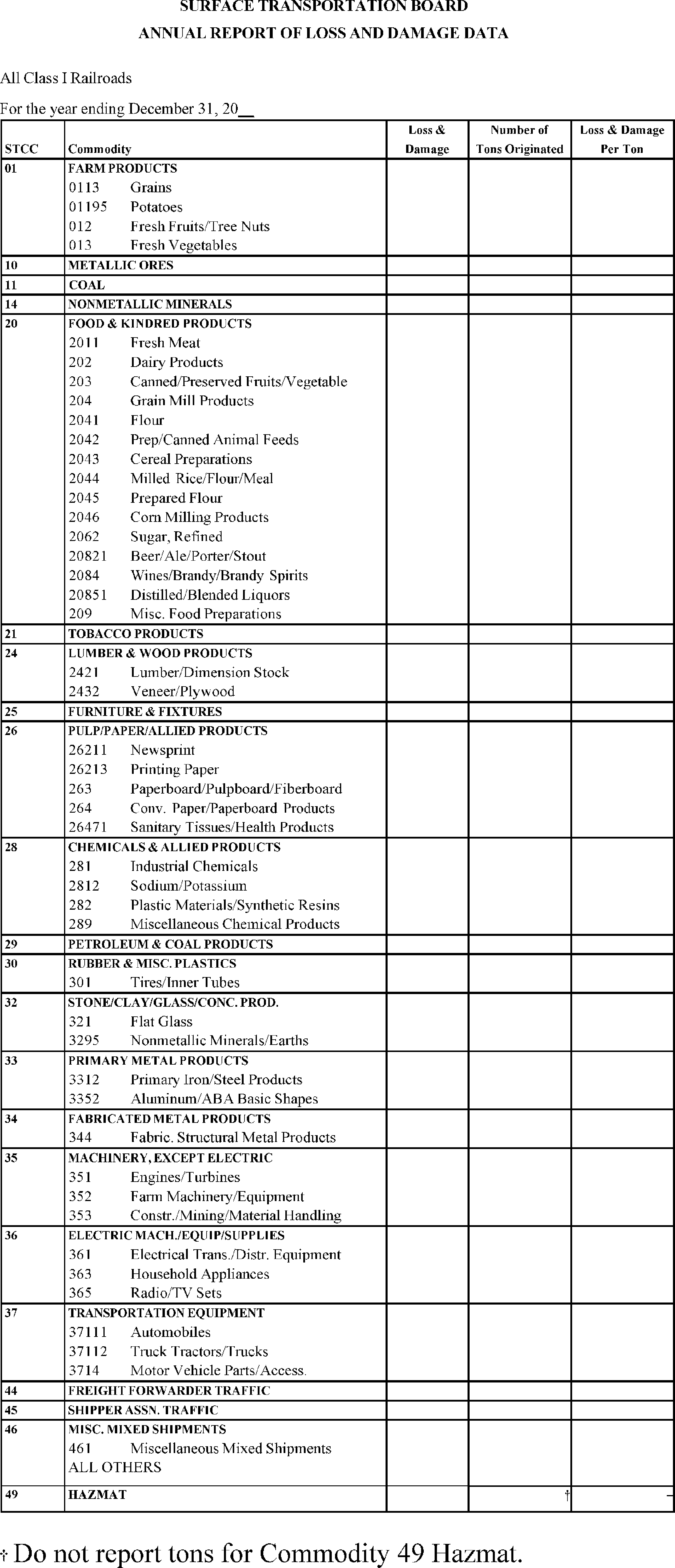 5. For Commodity 49 Hazmat, only report data in the loss and damage column.