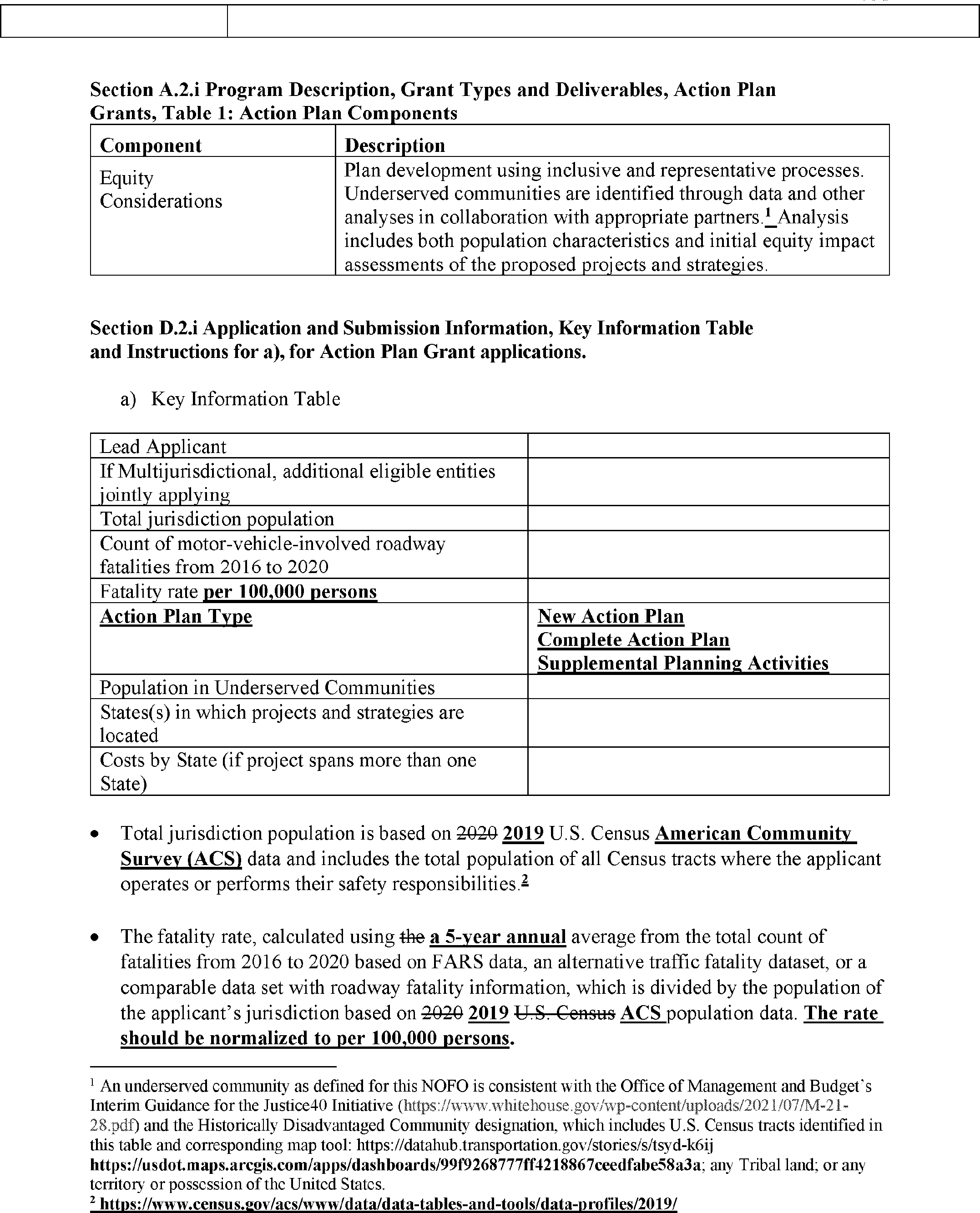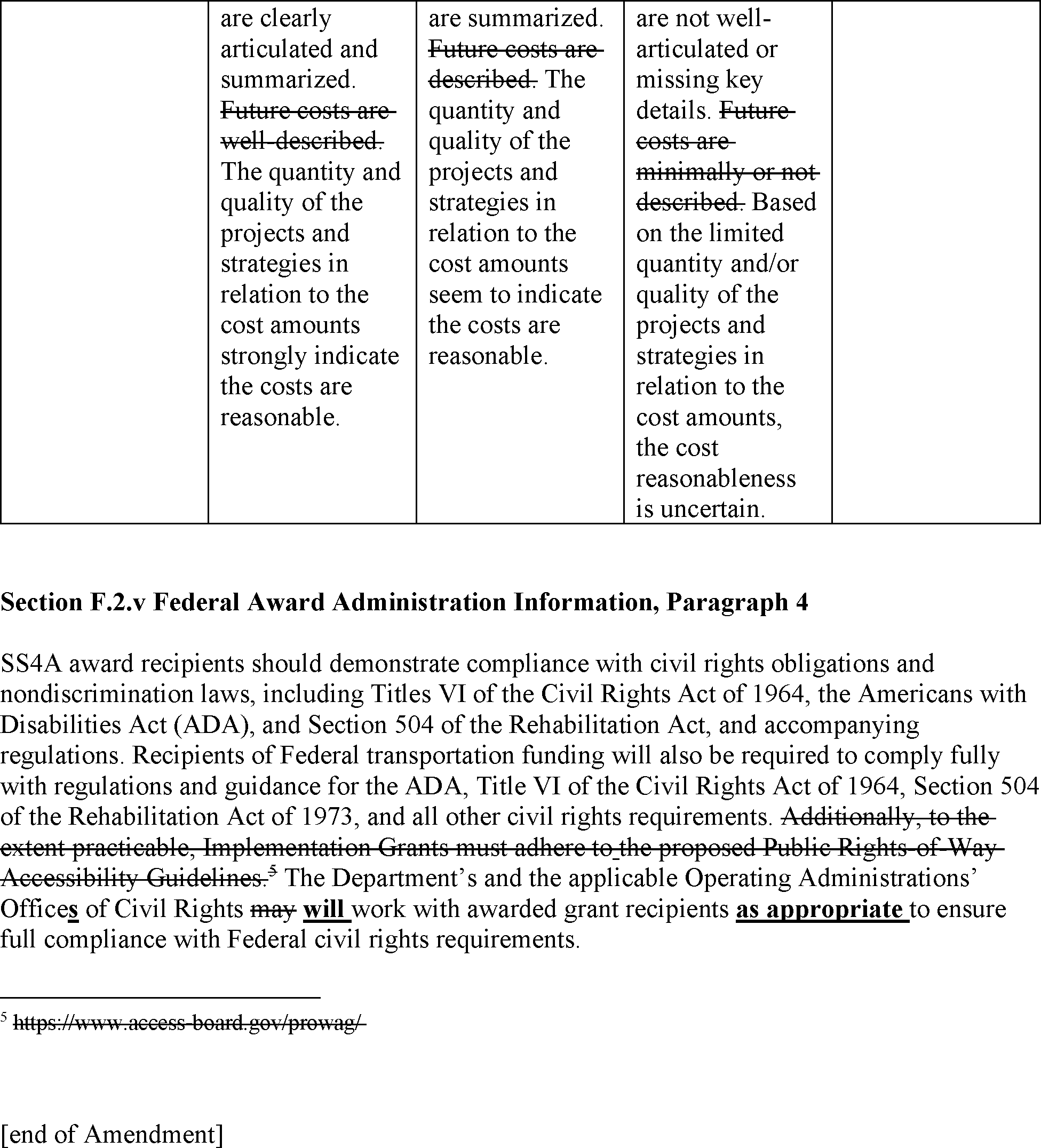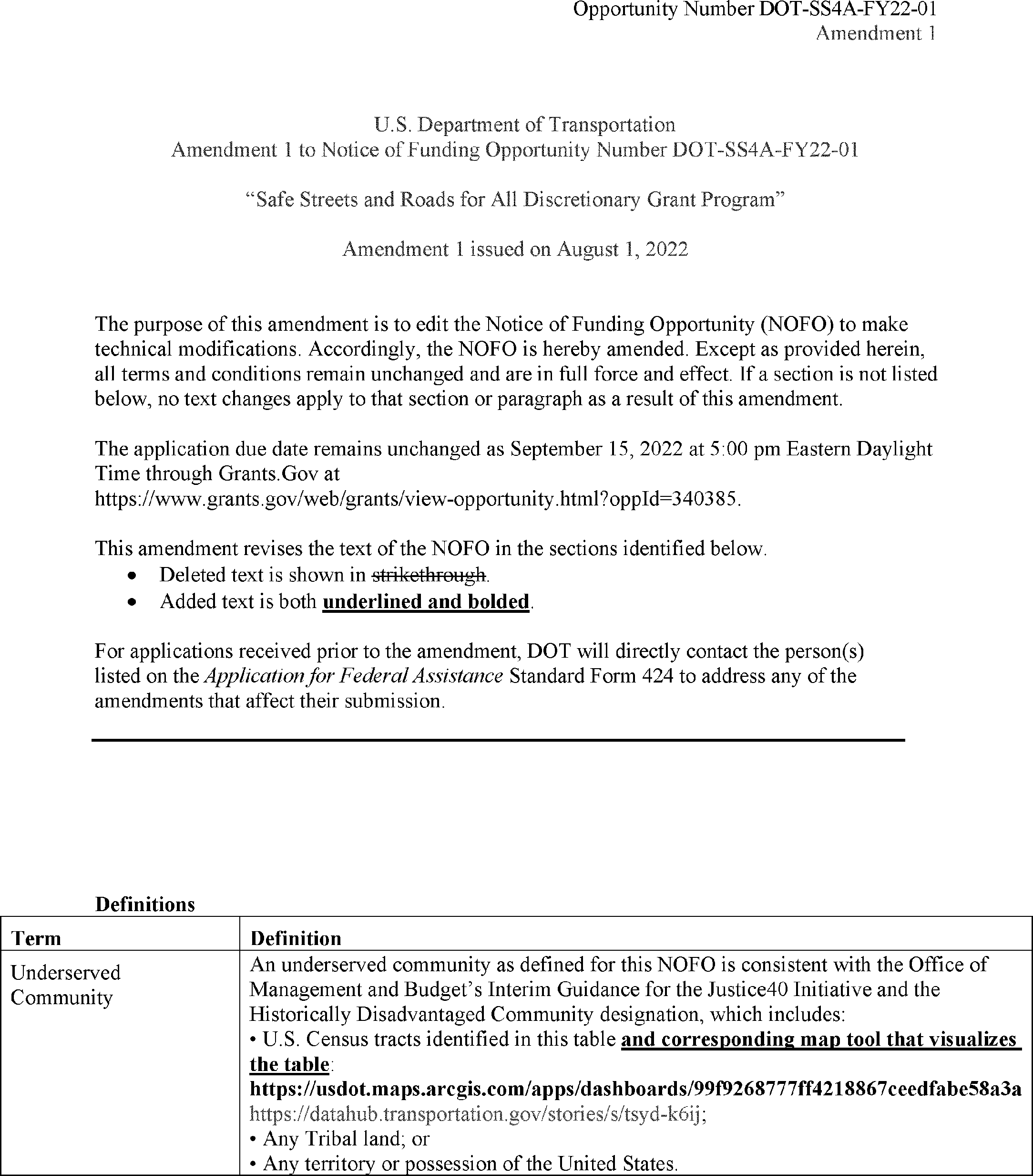 The purpose of this notice is to amend the Fiscal Year 2022 (FY22) NOFO for the Safe Streets and Roads for All (SS4A) discretionary grant program. Amendments are technical corrections as outlined in this Federal Register Notice.