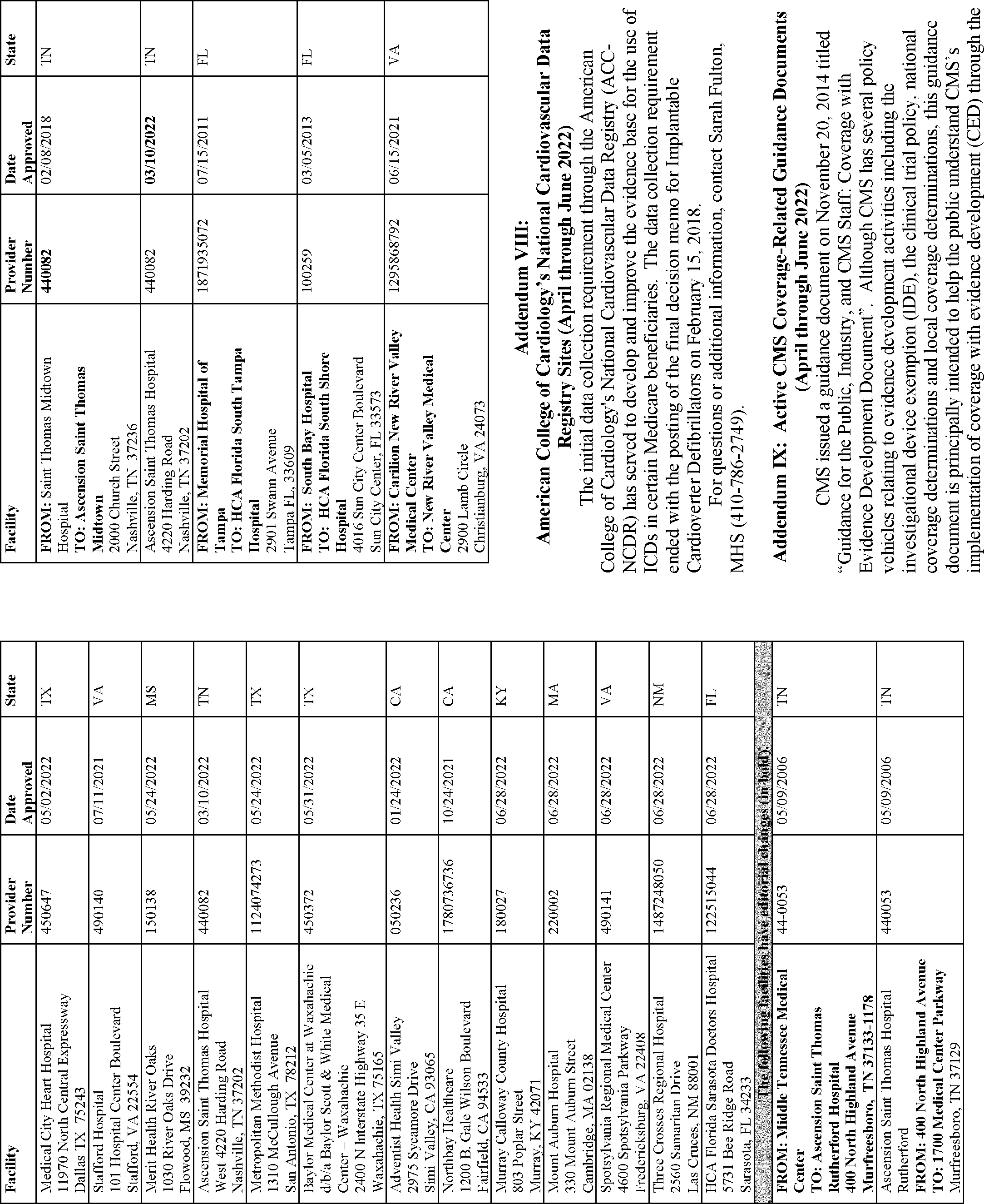| VII Medicare-Approved Carotid Stent Facilities | Sarah Fulton, MHS | (410) 786-2749 |