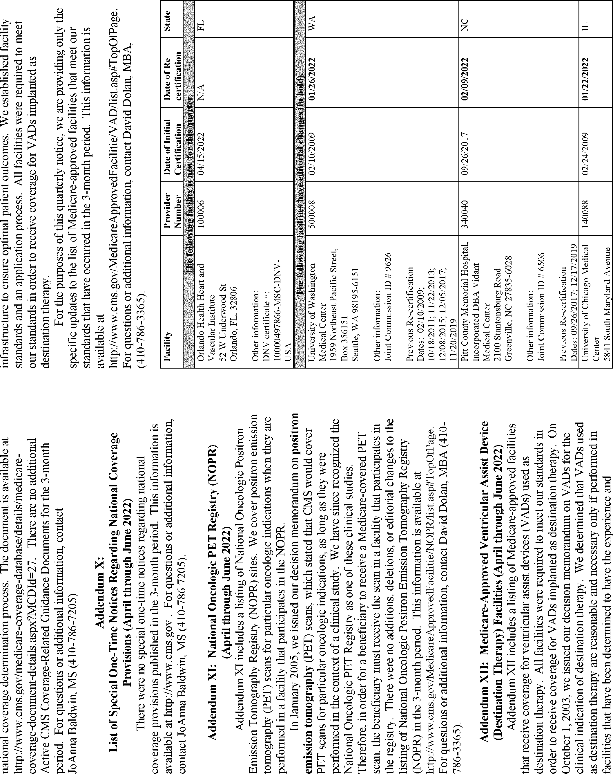 | XII Medicare-Approved Ventricular Assist Device (Destination Therapy) Facilities | David Dolan, MBA | (410) 786-3365 |
