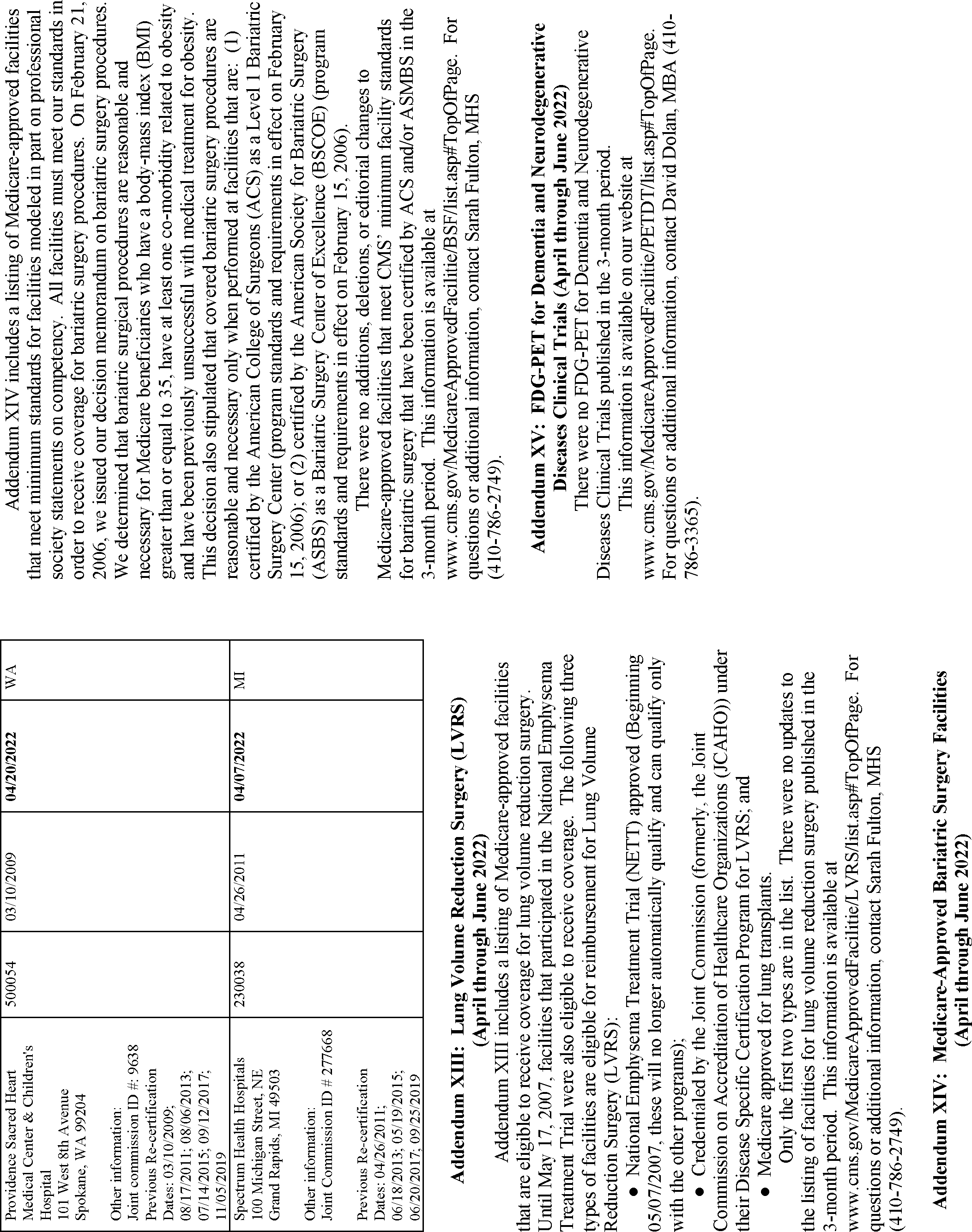 | XIII Medicare-Approved Lung Volume Reduction Surgery Facilities | Sarah Fulton, MHS | (410) 786-2749 |