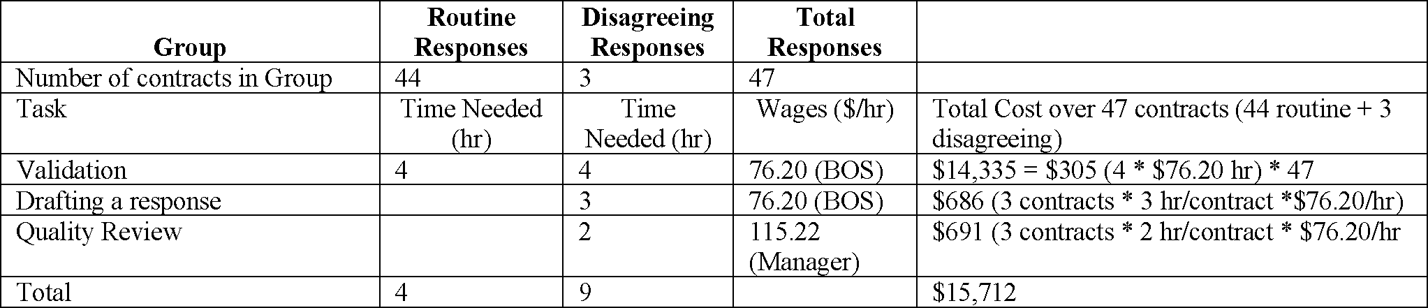 Based on the BLS wage information for business operations specialist (code 13-1199) whose wage we estimate at $76.20 per hour, including fringe benefits and overhead costs (