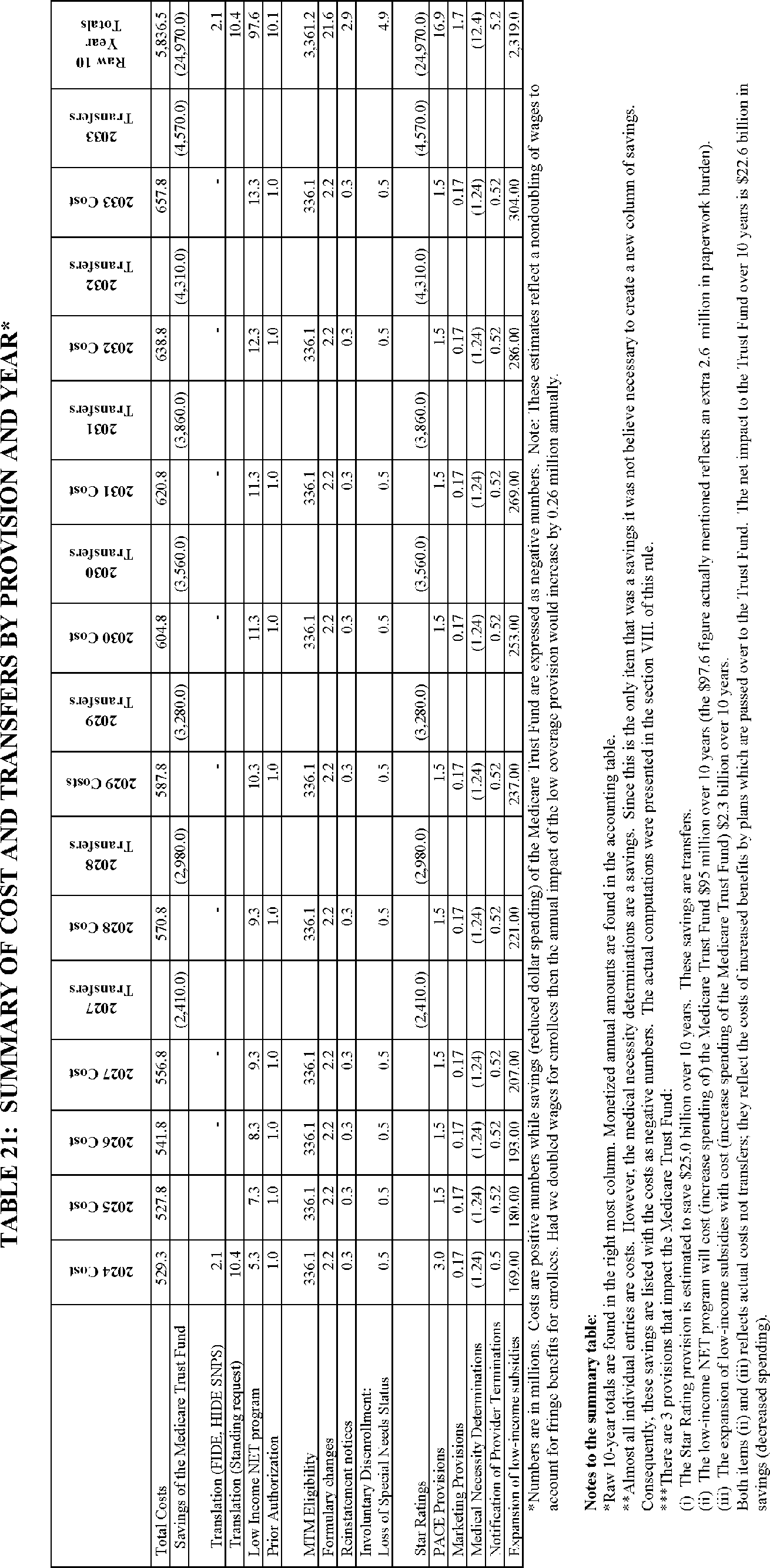C. Summary of Costs and Benefits