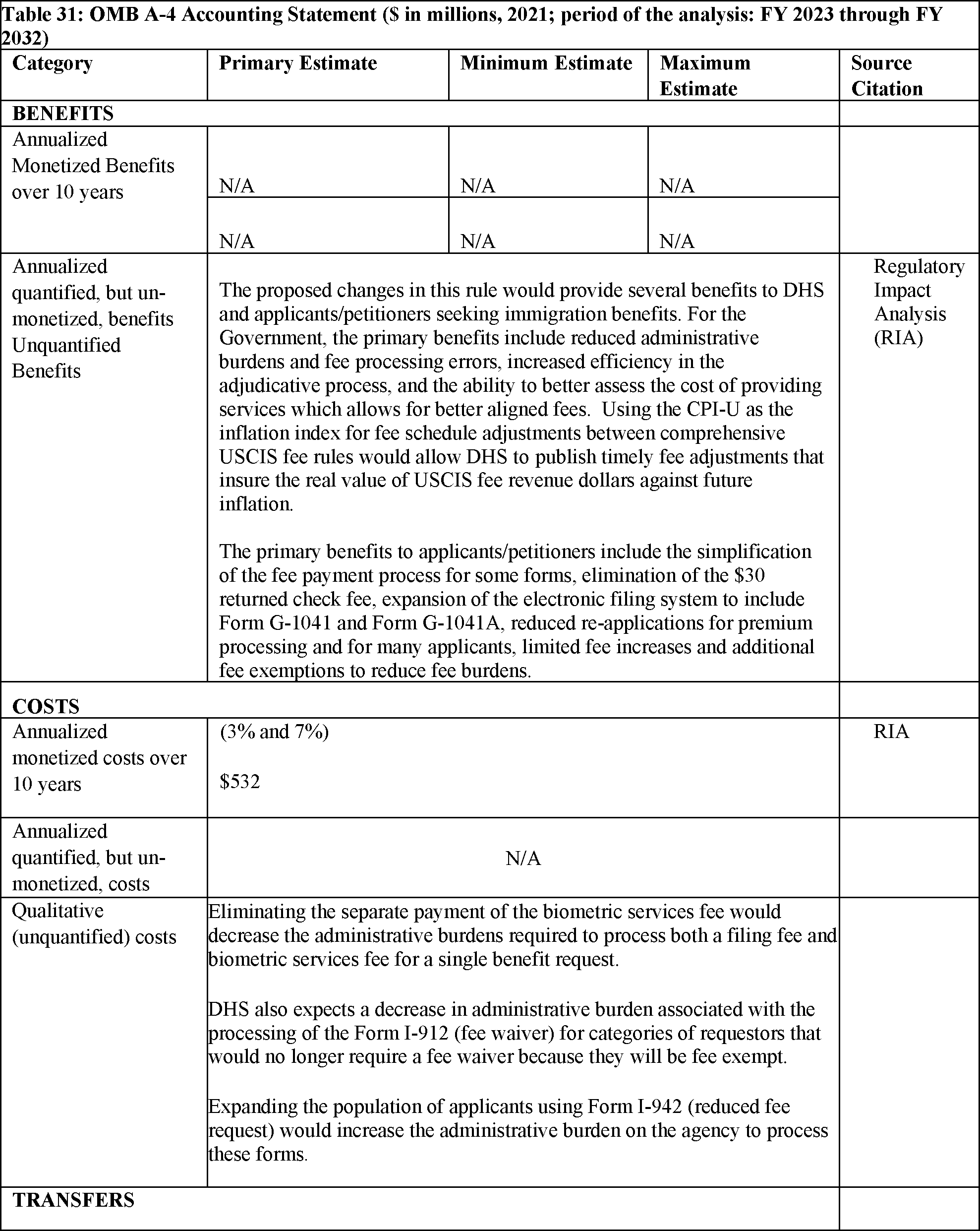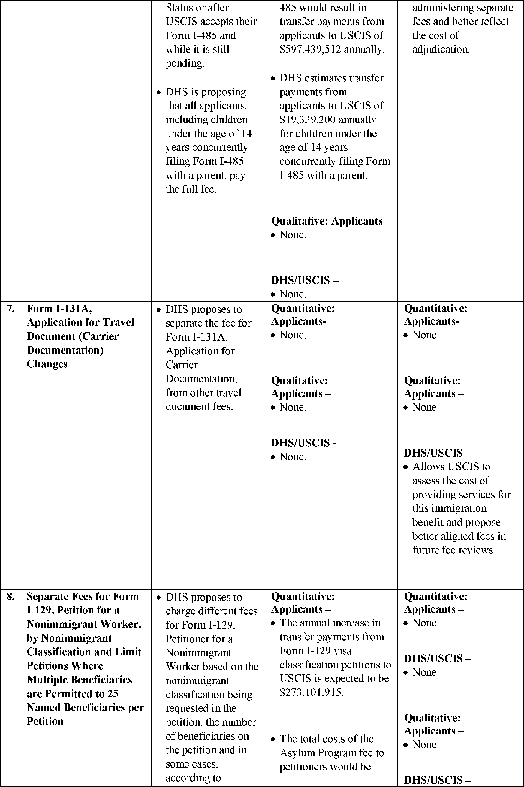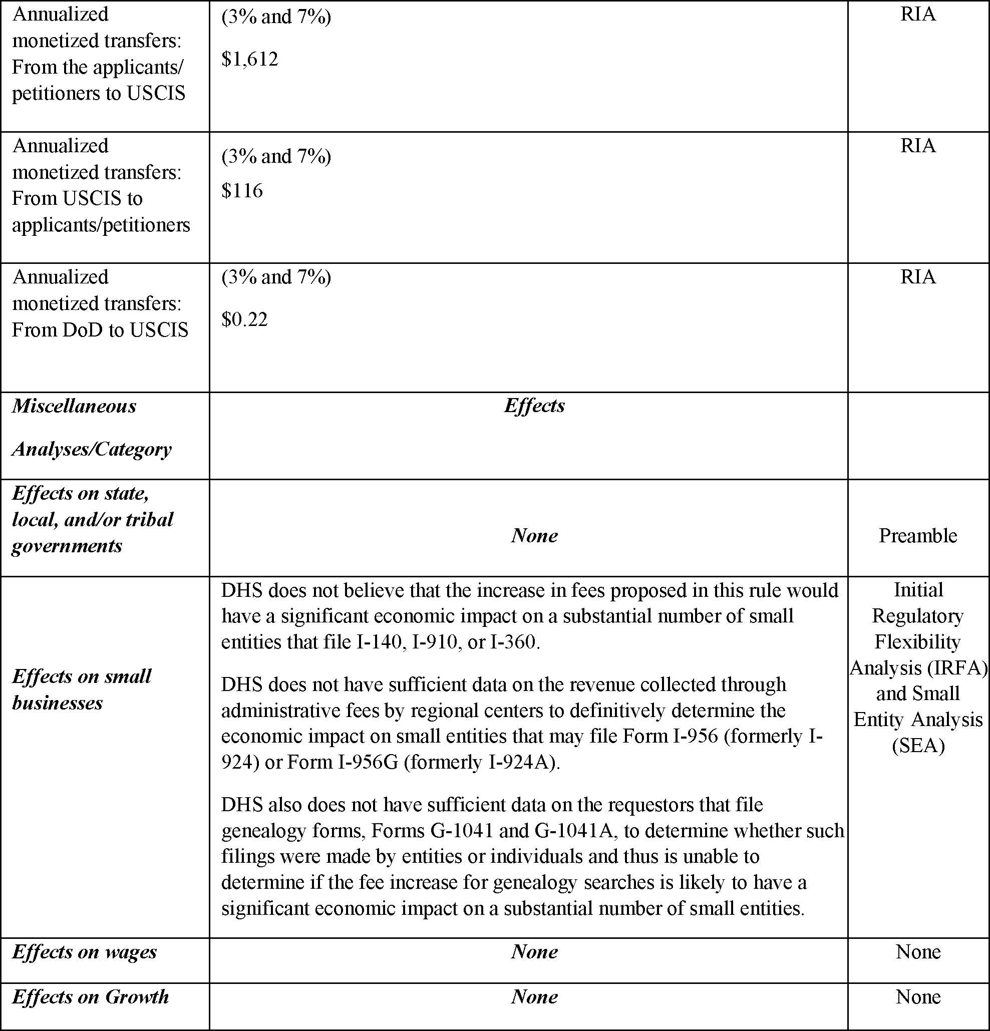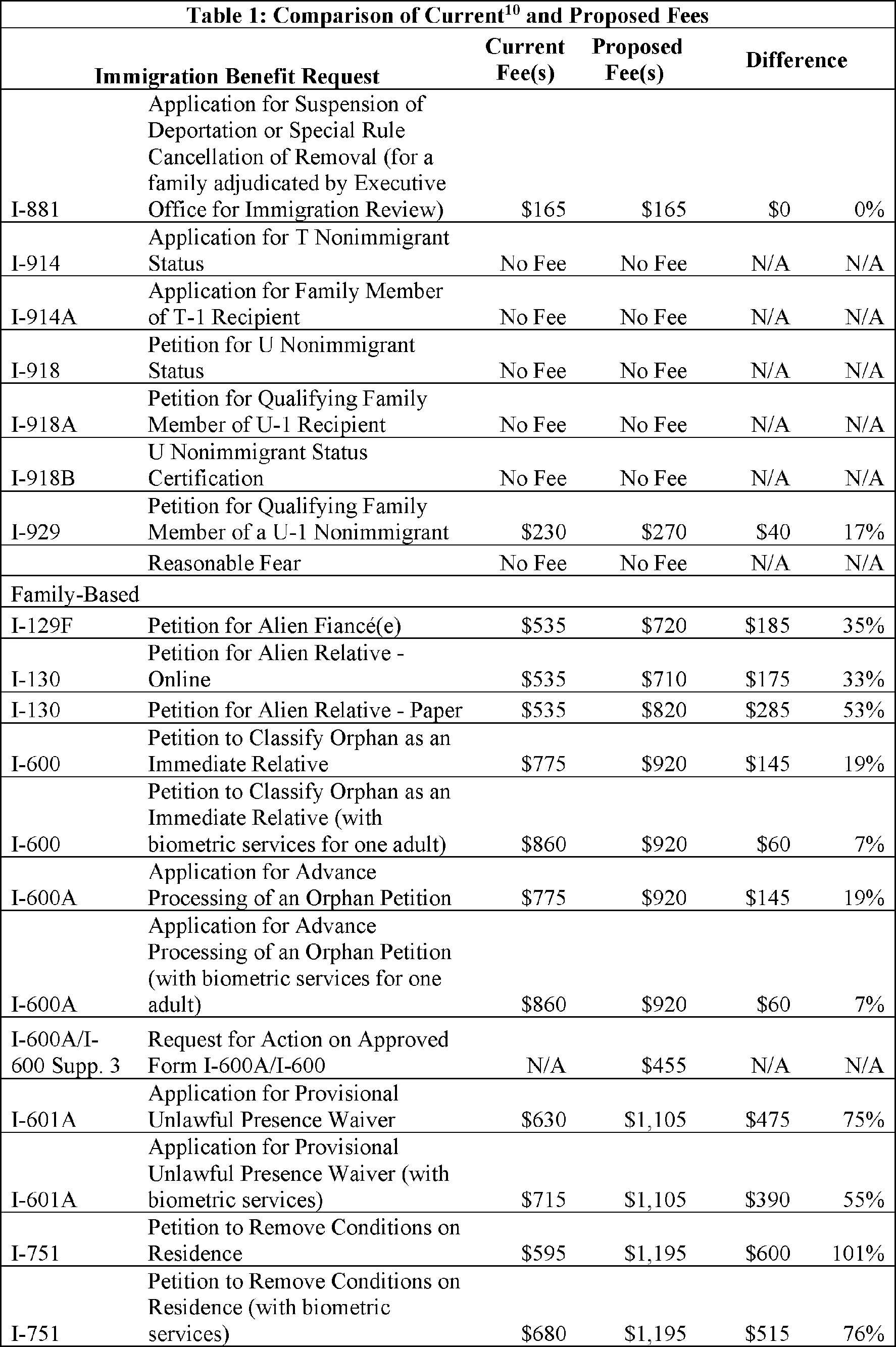 U.S. Citizenship and Immigration Services Fee Schedule and Changes to Certain Other Immigration Benefit Request Requirements