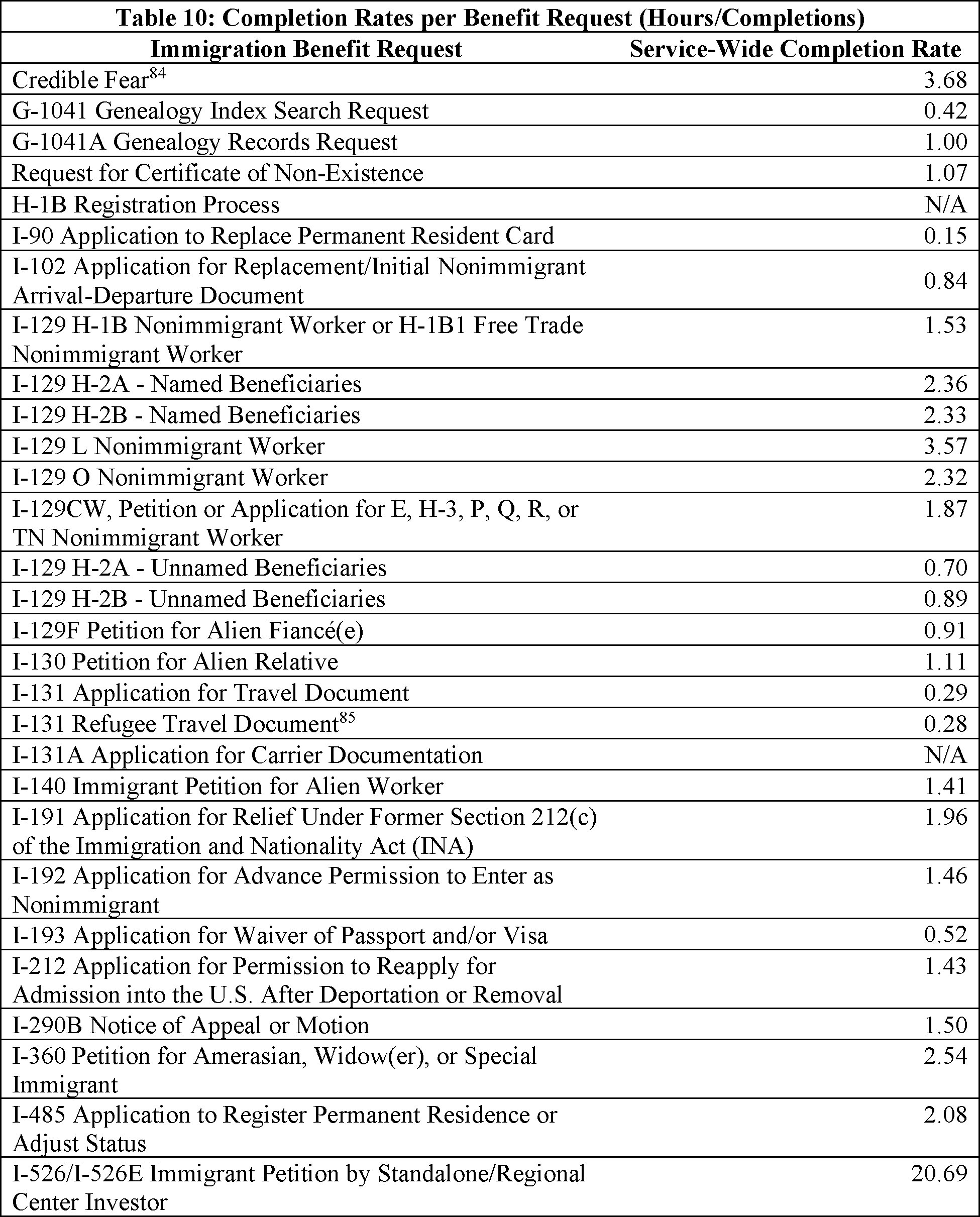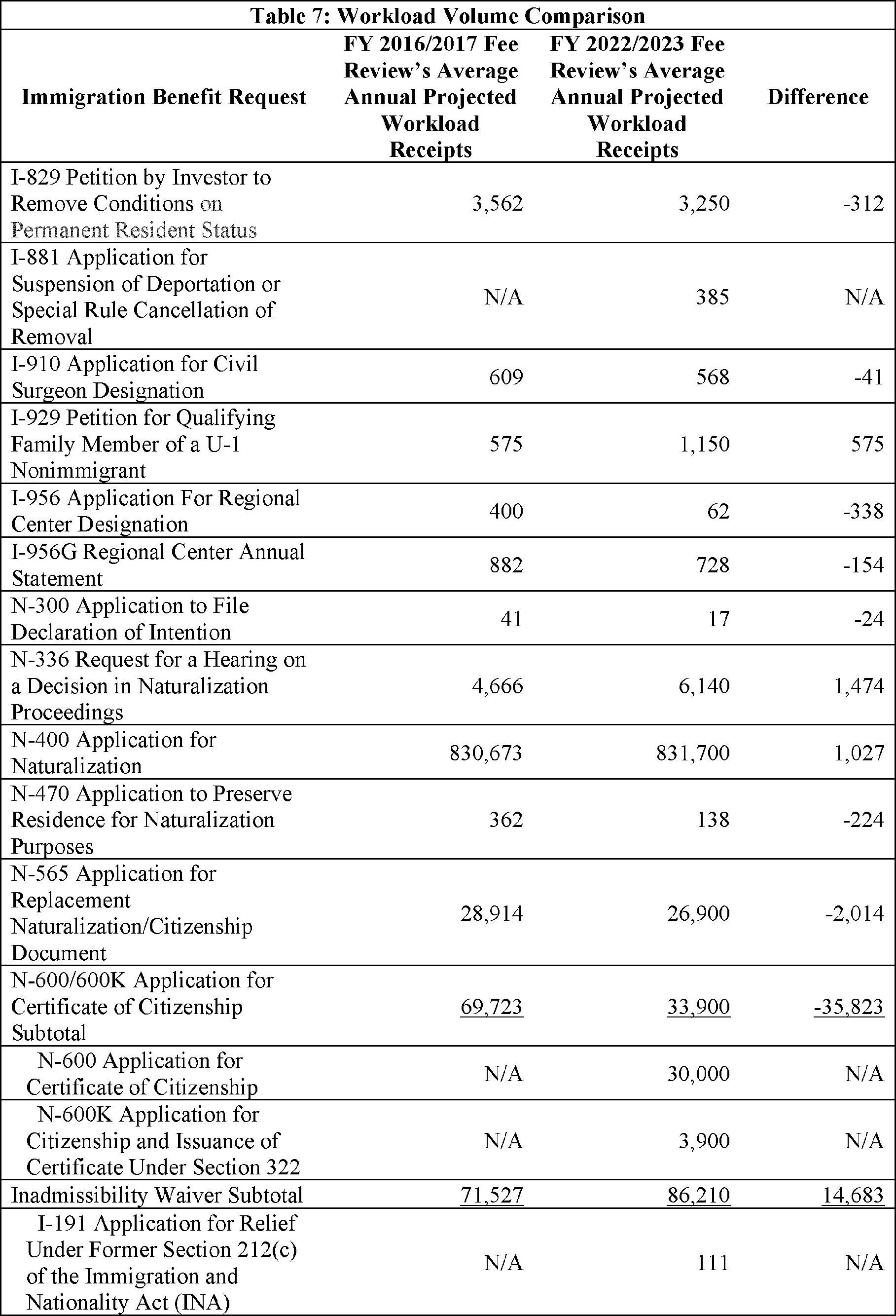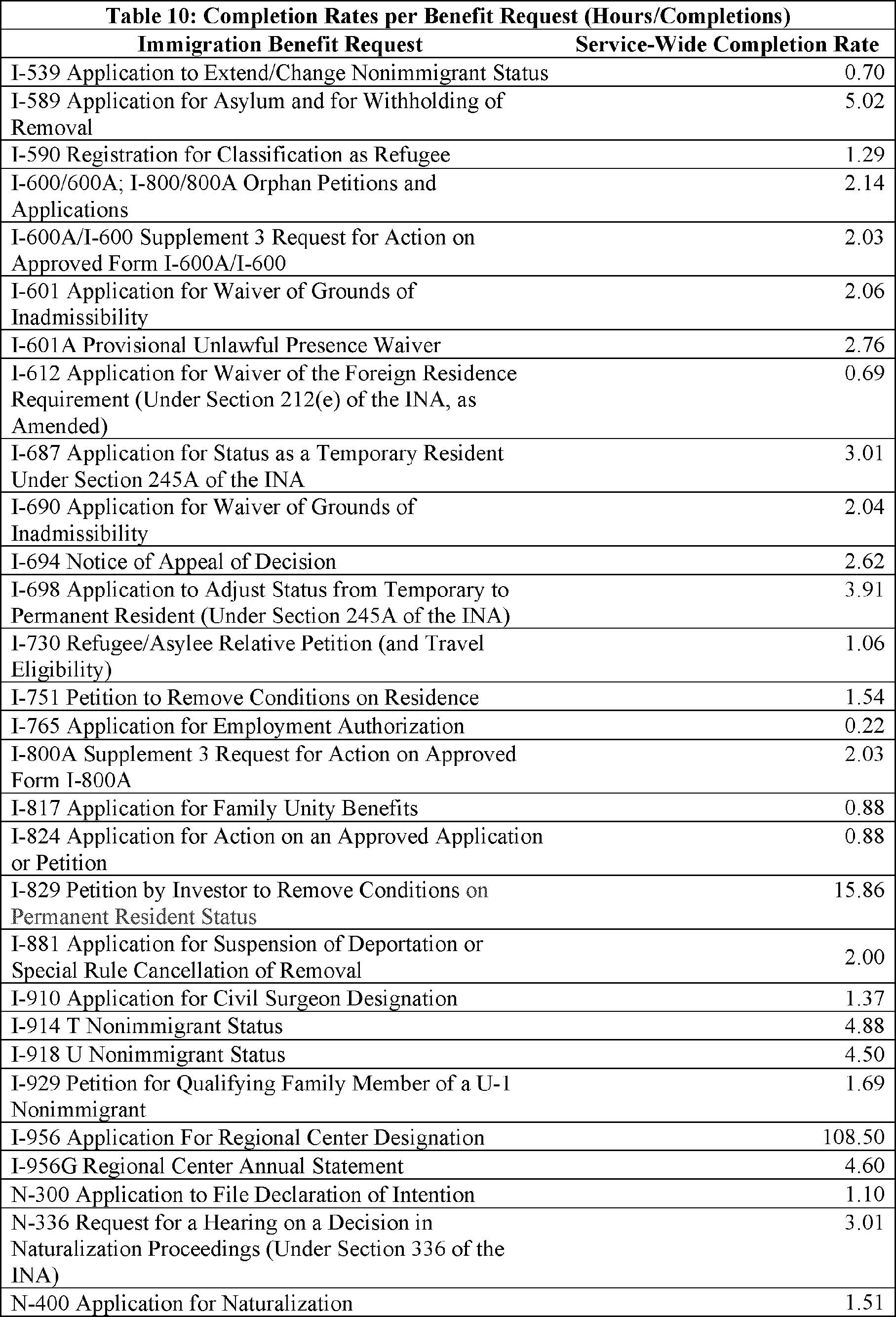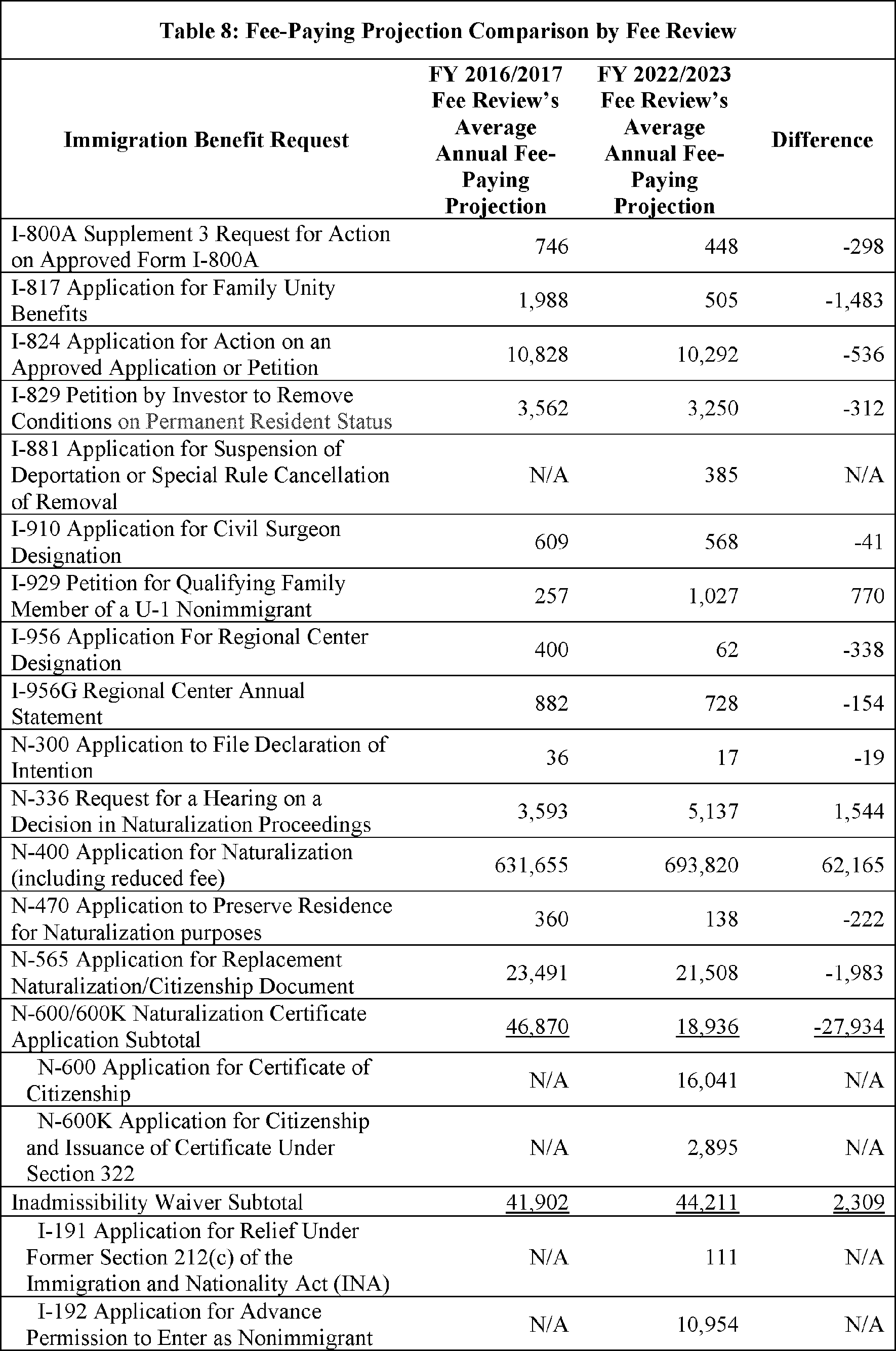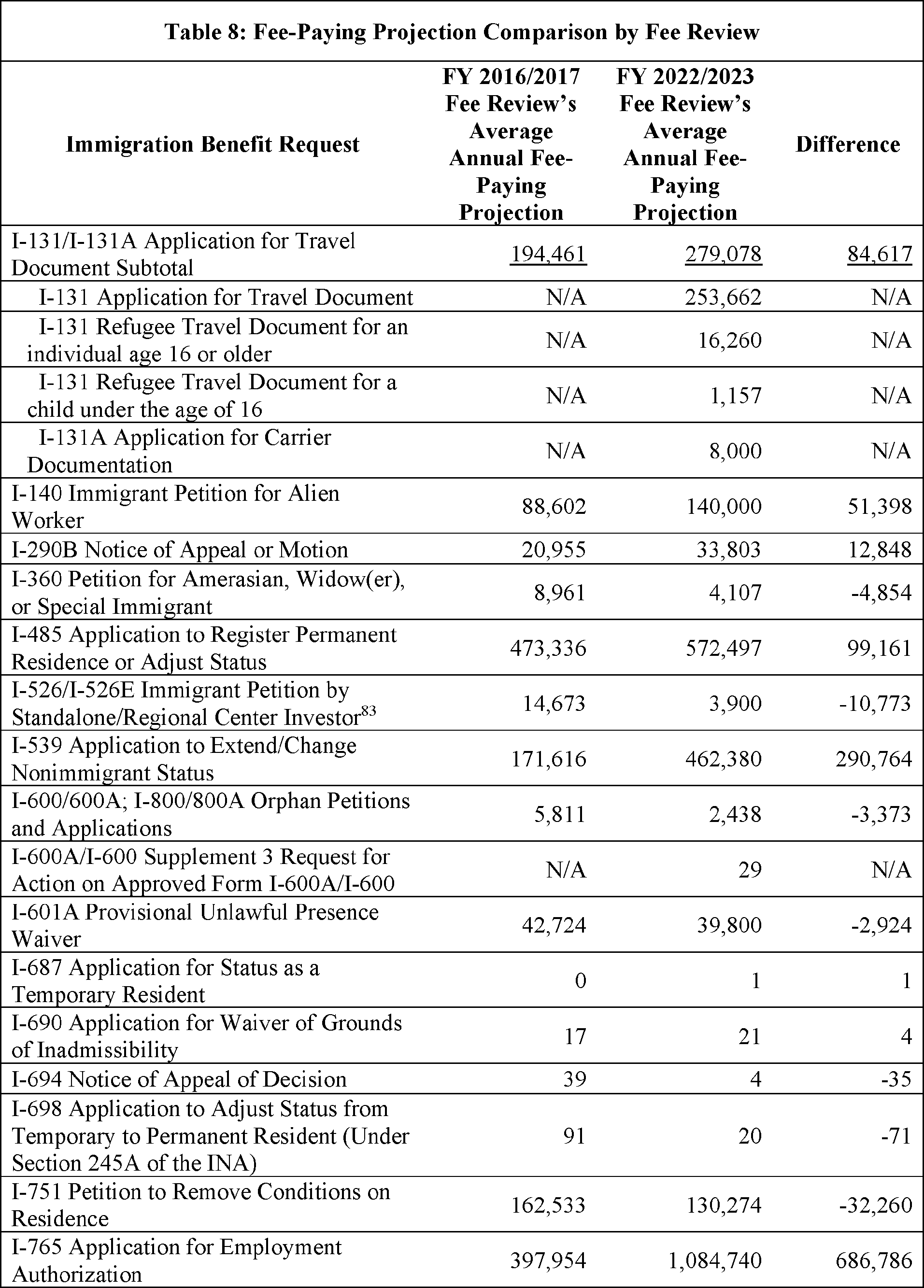 Model output from Appendix Table 4 in the FY 2022/2023 Immigration Examinations Fee Account Fee Review Supporting Documentation (supporting documentation) in the docket.