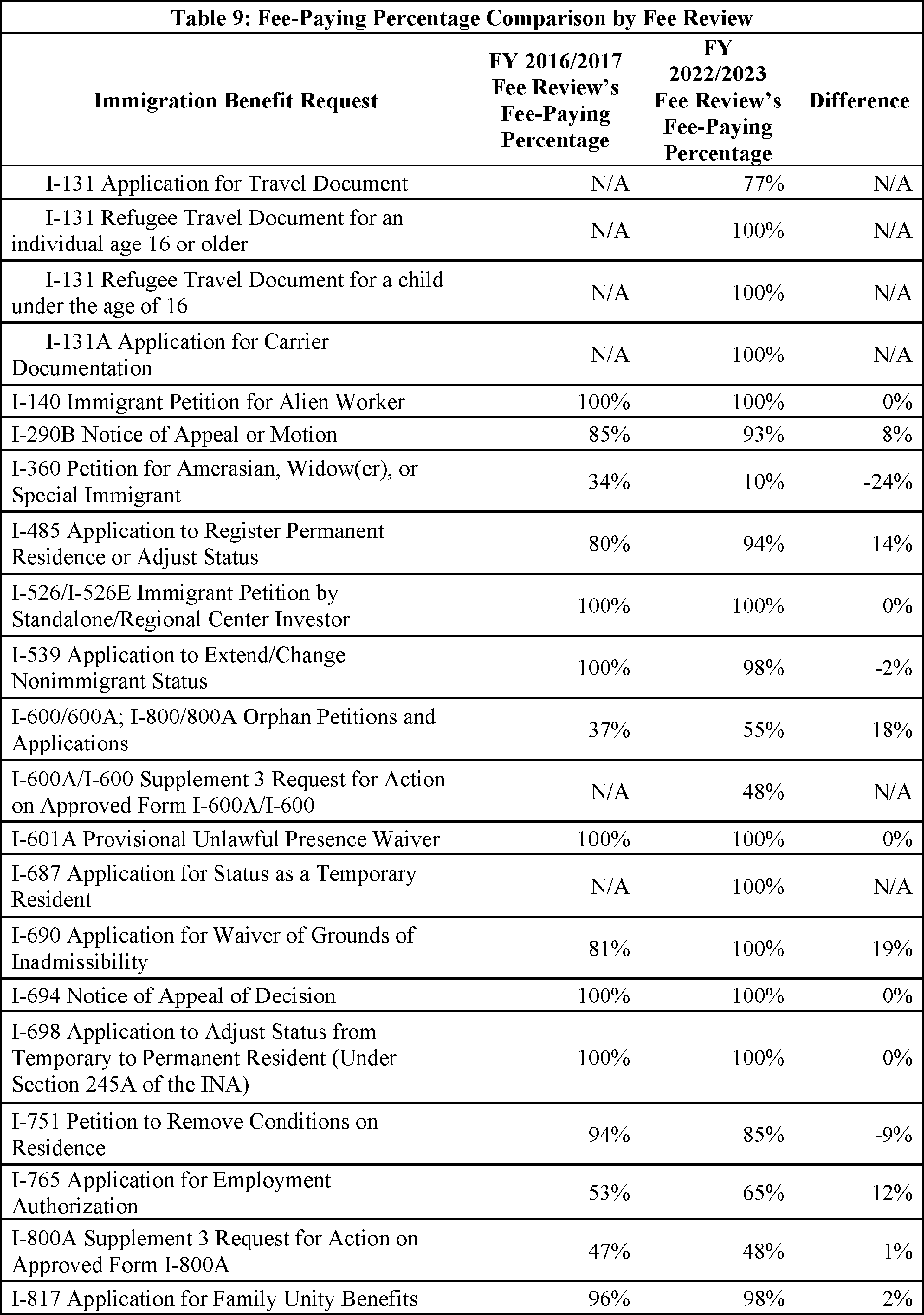 V. FY 2022/2023 Immigration Examinations Fee Account Fee Review